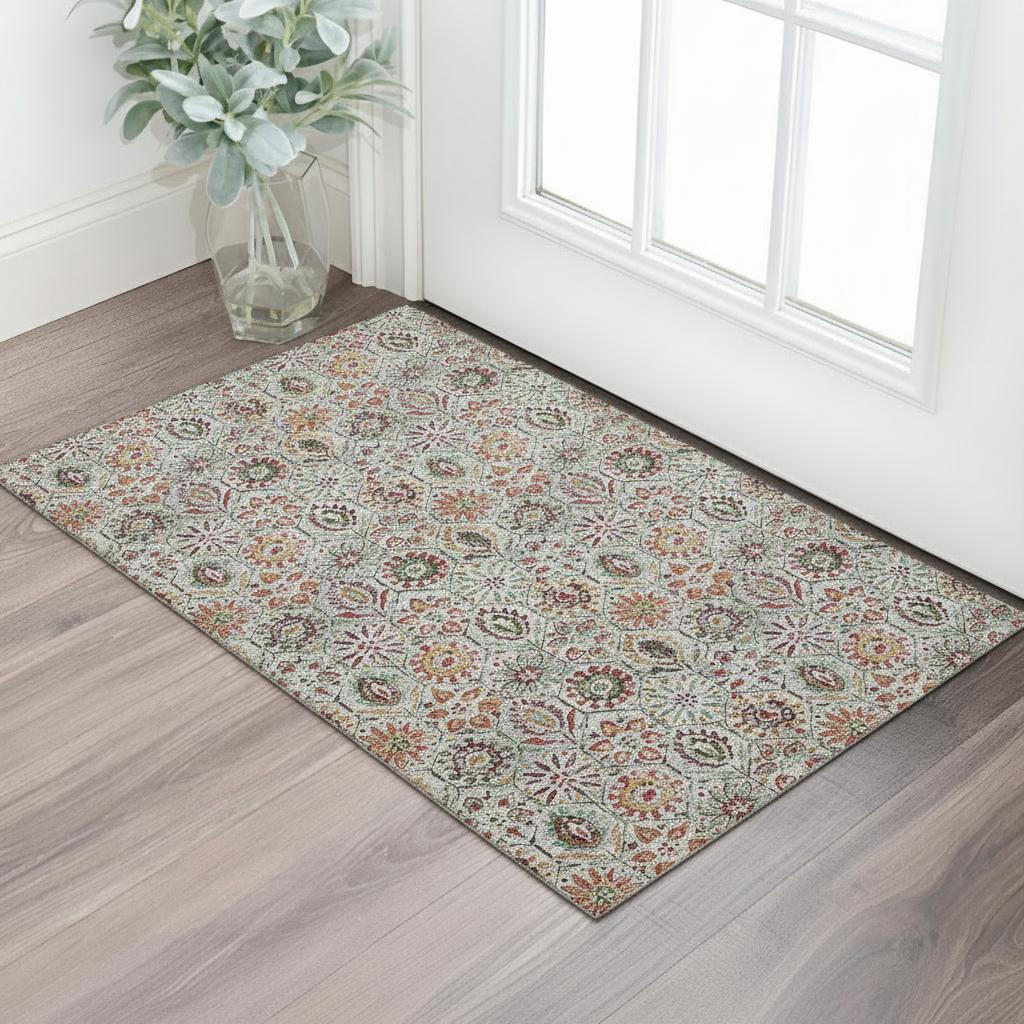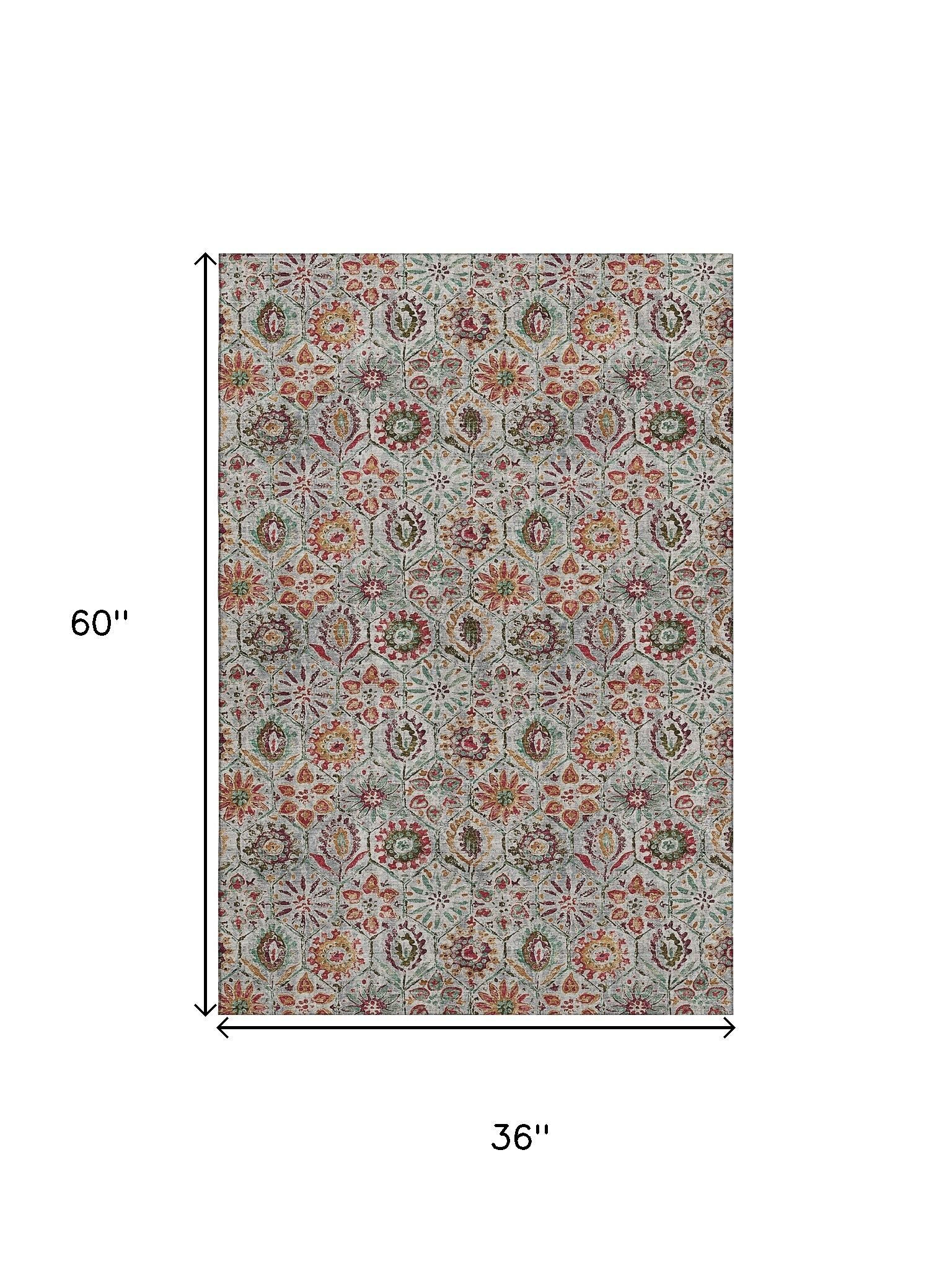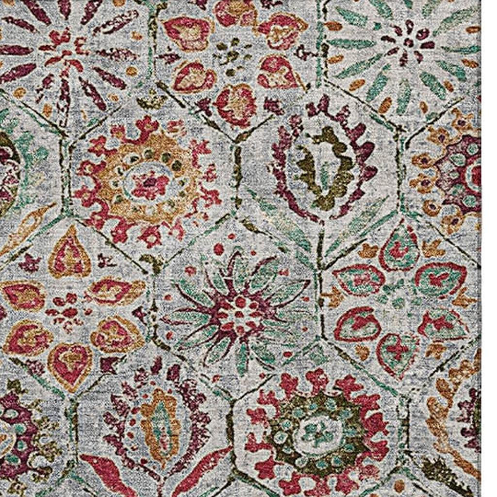 Add great coloration and comfortable texture to your space with this 3-foot x 5-foot rust gray and silver floral washable area rug with uv protection. Ideal for spaces with kids and pets, this rug is stain resistant to help repel dirt and spilled liquids. Built to last, this rug crafted from polyester fibers is known for its durability and long lasting appeal. Rugs are a great way to showcase your style, hide imperfections, warm your home and reduce noise. This smaller sized, transitional styled rug is just what you need for your walkway, bedside, in front of door, cabinet, refrigerator, or chair. 36.00-inch h x 60.00-inch w x 0.39-inch d.