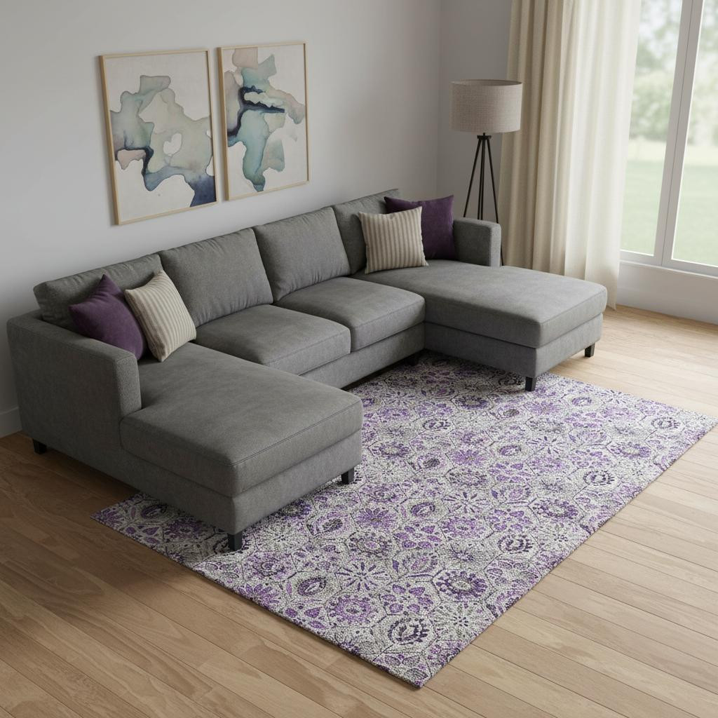 Add some artistry to your room with this 9-foot x 12-foot purple gray and silver floral washable area rug with uv protection. Ideal for spaces with kids and pets, this rug is stain resistant to help repel dirt and spilled liquids. Built to last, this rug crafted from polyester fibers is known for its durability and long lasting appeal. Rugs are a great way to showcase your style, hide imperfections, warm your home and reduce noise. This larger sized, transitional styled rug is ready to create a focal point or statement piece in your room. 108.00-inch h x 144.00-inch w x 0.39-inch d.