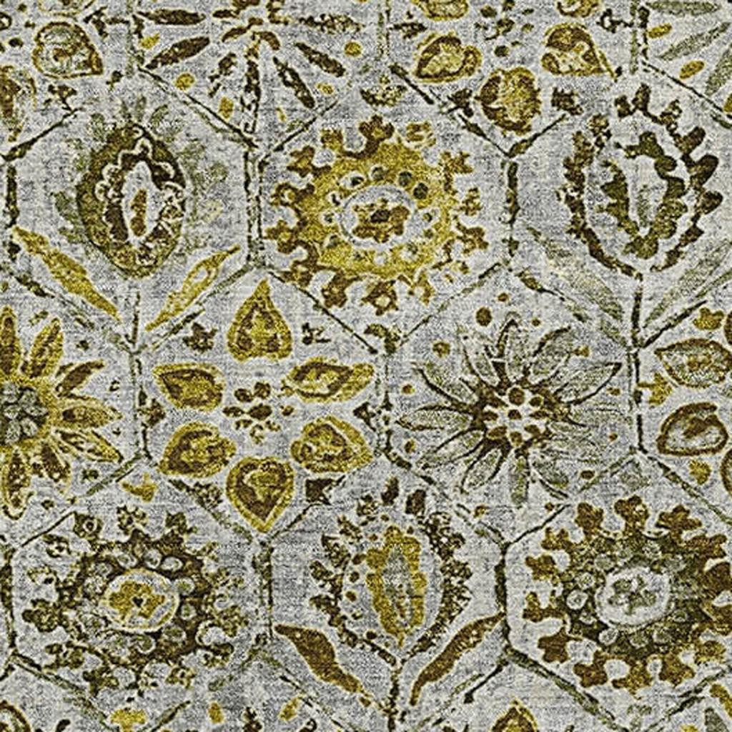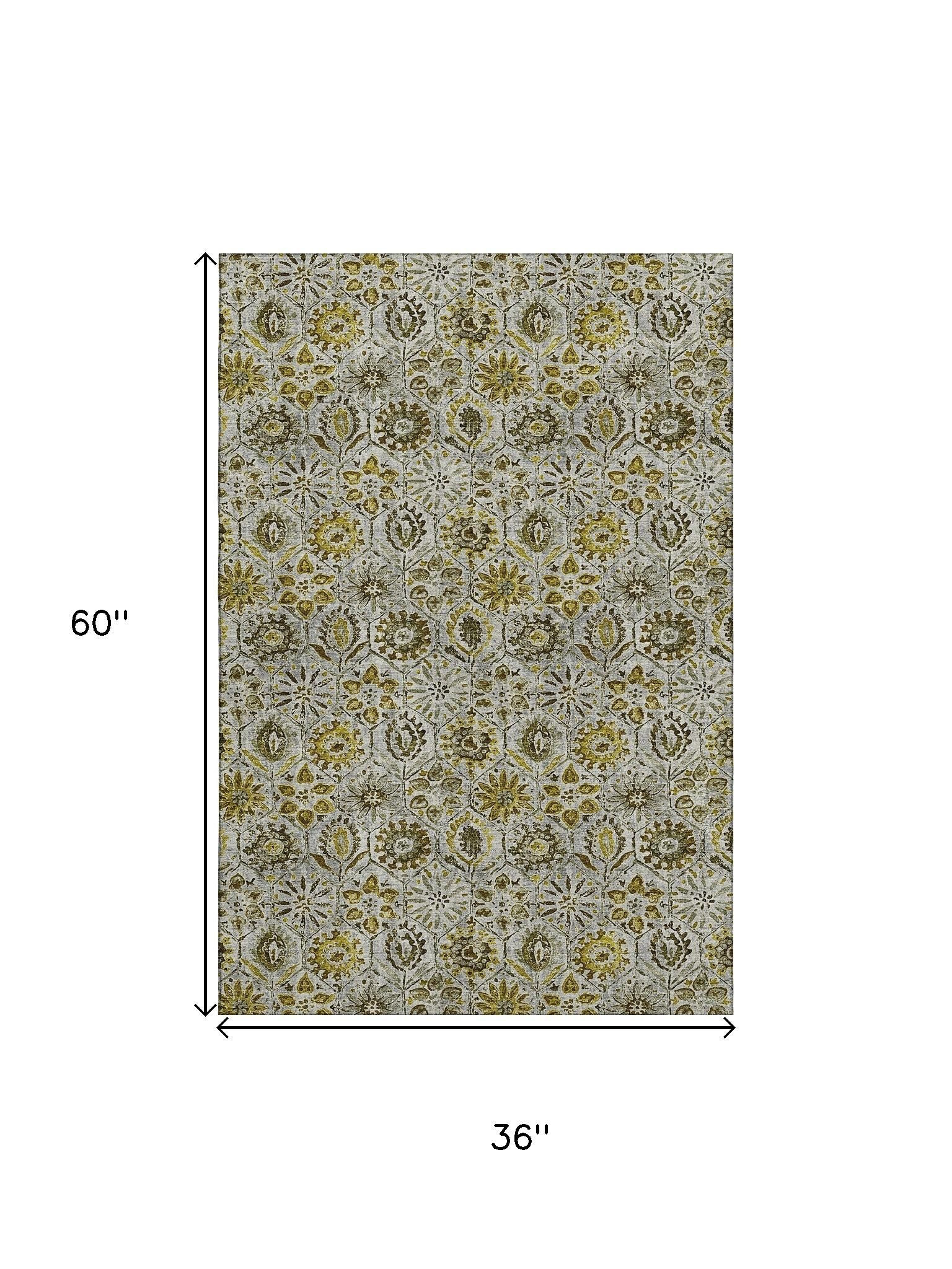 Add some artistry to your room with this 3-foot x 5-foot pewter gold and gray floral washable area rug with uv protection. Ideal for spaces with kids and pets, this rug is stain resistant to help repel dirt and spilled liquids. Built to last, this rug crafted from polyester fibers is known for its durability and long lasting appeal. Rugs are a great way to showcase your style, hide imperfections, warm your home and reduce noise. This smaller sized, transitional styled rug is just what you need for your walkway, bedside, in front of door, cabinet, refrigerator, or chair. 36.00-inch h x 60.00-inch w x 0.39-inch d.