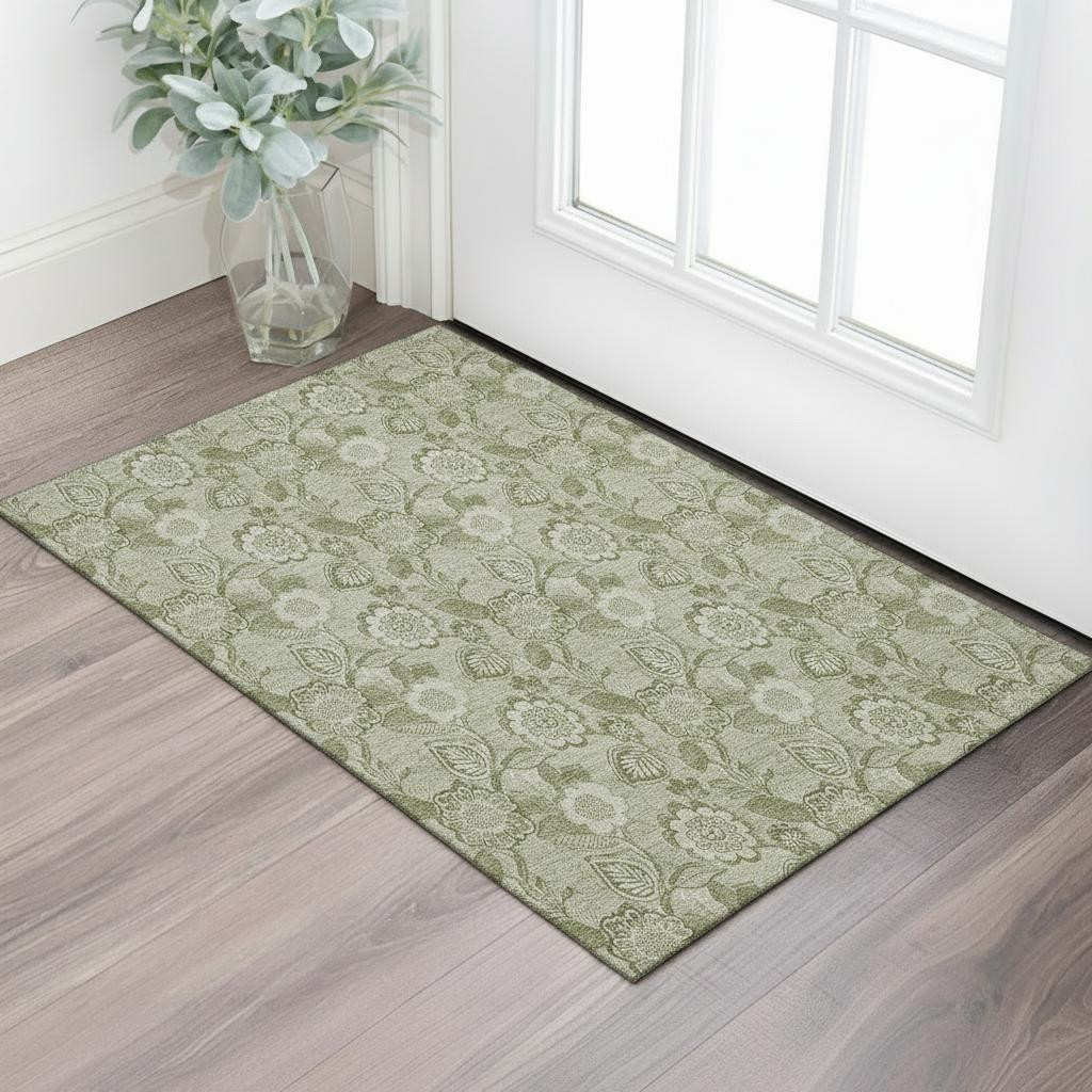 Add some artistry to your room with this 3-foot x 5-foot artichoke green and fern green floral washable area rug with uv protection. Ideal for spaces with kids and pets, this rug is stain resistant to help repel dirt and spilled liquids. Built to last, this rug crafted from polyester fibers is known for its durability and long lasting appeal. Rugs are a great way to showcase your style, hide imperfections, warm your home and reduce noise. This smaller sized, transitional styled rug is just what you need for your walkway, bedside, in front of door, cabinet, refrigerator, or chair. 36.00-inch h x 60.00-inch w x 0.39-inch d.