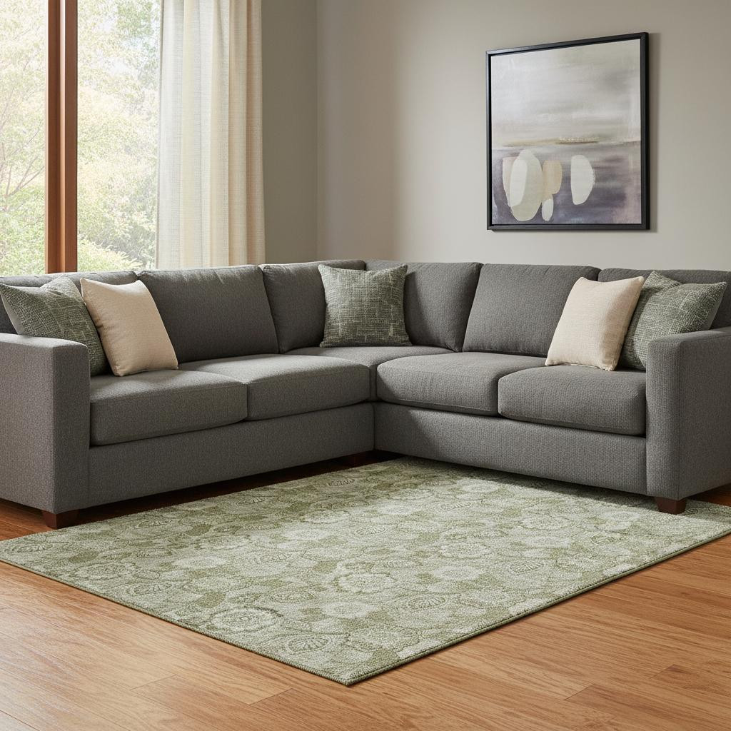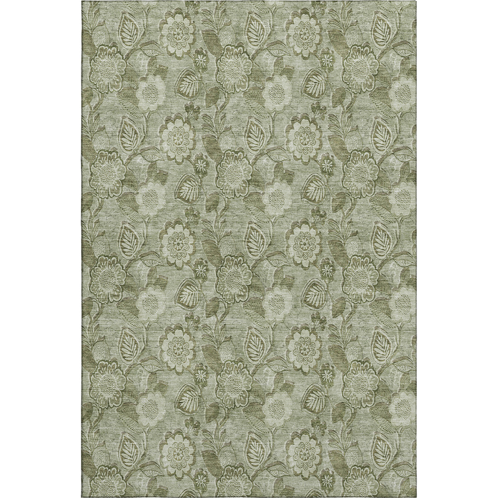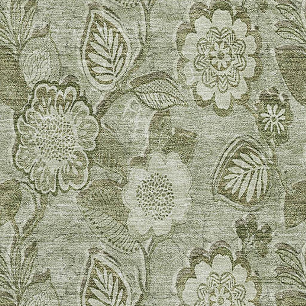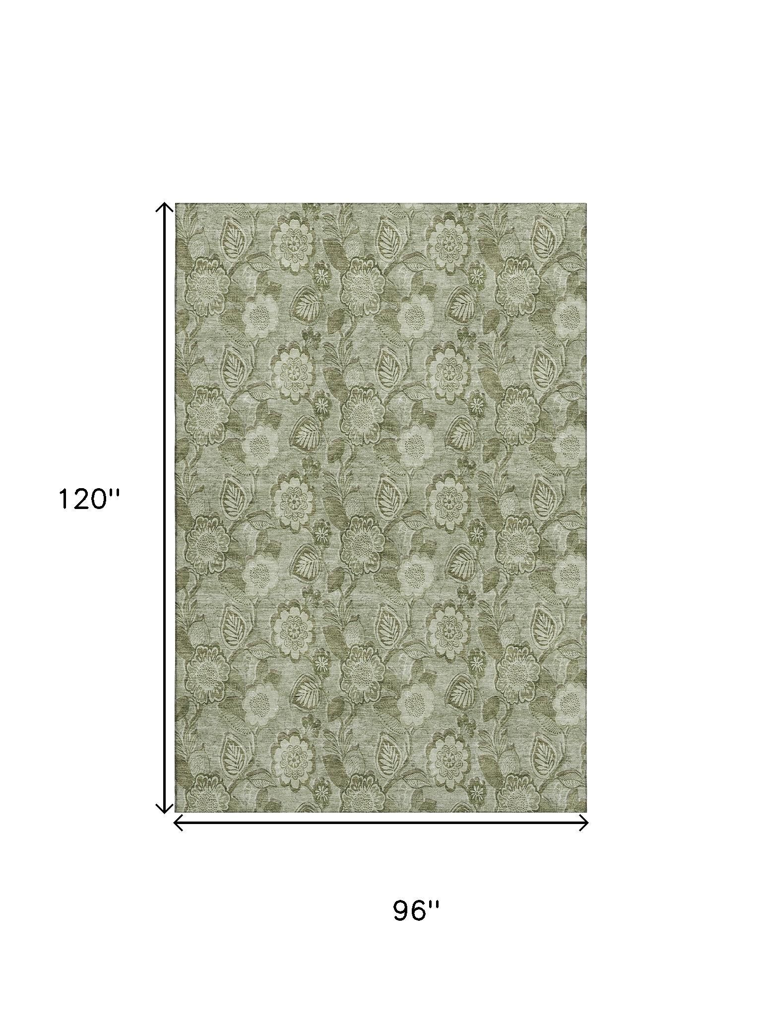 Add some artistry to your room with this 8-foot x 10-foot artichoke green and fern green floral washable area rug with uv protection. Ideal for spaces with kids and pets, this rug is stain resistant to help repel dirt and spilled liquids. Built to last, this rug crafted from polyester fibers is known for its durability and long lasting appeal. Rugs are a great way to showcase your style, hide imperfections, warm your home and reduce noise. This larger sized, transitional styled rug is ready to create a focal point or statement piece in your room. 96.00-inch h x 120.00-inch w x 0.39-inch d.