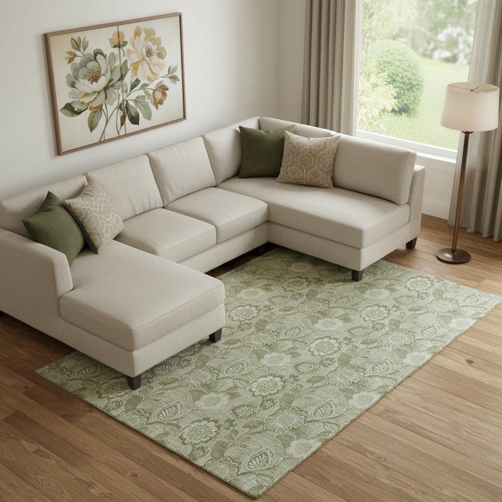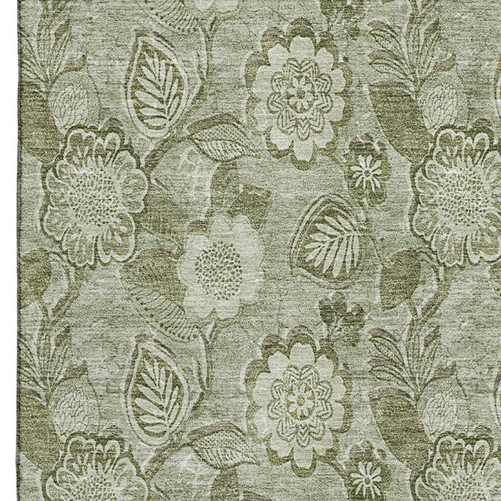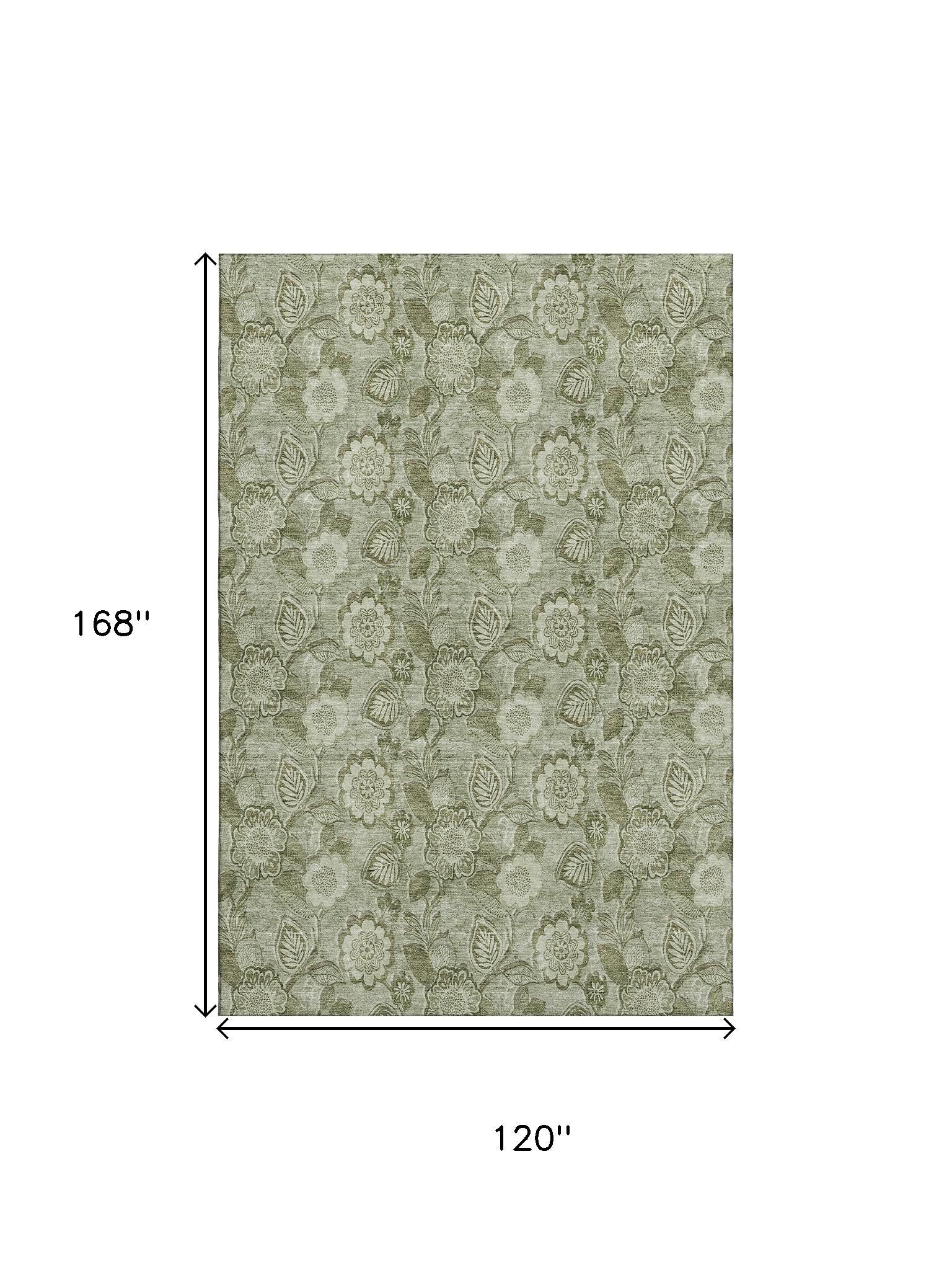 Add great coloration and comfortable texture to your space with this 10-foot x 14-foot artichoke green and fern green floral washable area rug with uv protection. Ideal for spaces with kids and pets, this rug is stain resistant to help repel dirt and spilled liquids. Built to last, this rug crafted from polyester fibers is known for its durability and long lasting appeal. Rugs are a great way to showcase your style, hide imperfections, warm your home and reduce noise. This larger sized, transitional styled rug is ready to create a focal point or statement piece in your room. 120.00-inch h x 168.00-inch w x 0.39-inch d.