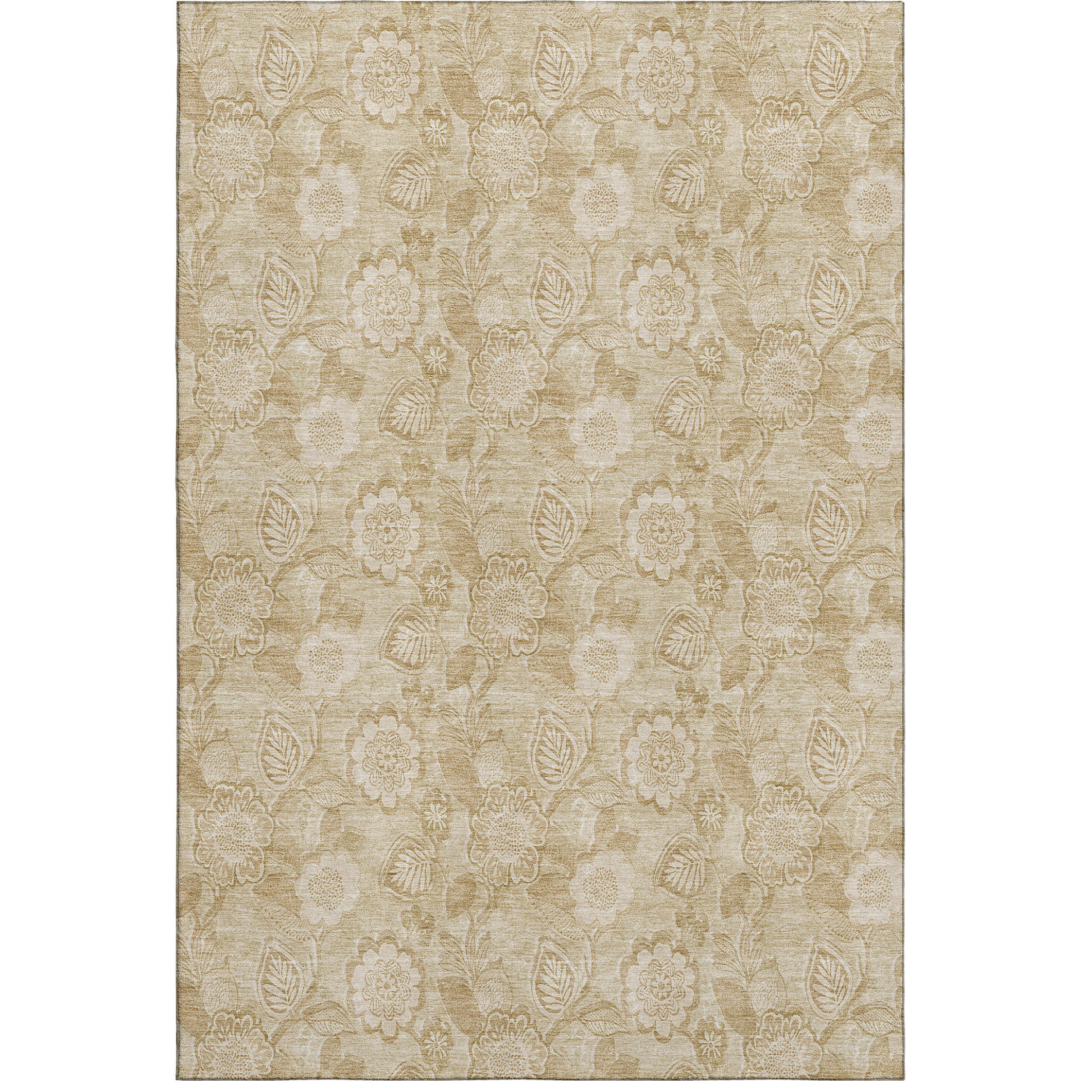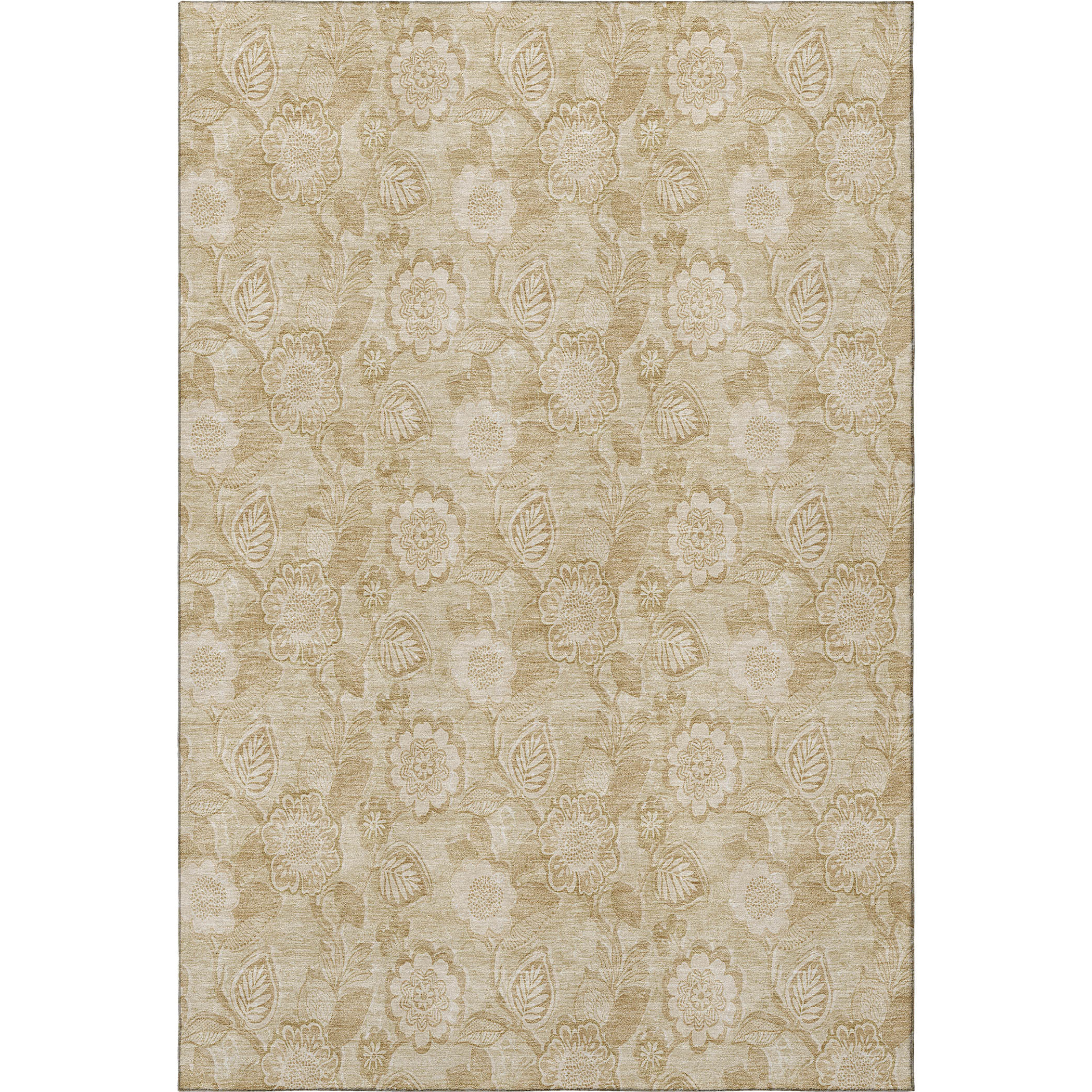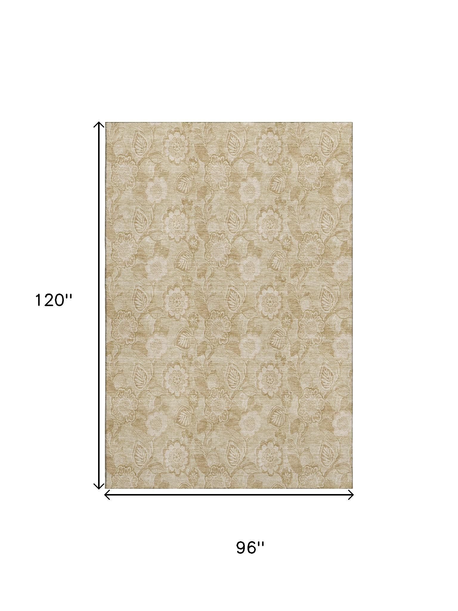 This 8-foot x 10-foot beige and tan floral washable area rug with uv protection, is a great way to add warmth to a room. Ideal for spaces with kids and pets, this rug is stain resistant to help repel dirt and spilled liquids. Built to last, this rug crafted from polyester fibers is known for its durability and long lasting appeal. Rugs are a great way to showcase your style, hide imperfections, warm your home and reduce noise. This larger sized, transitional styled rug is ready to create a focal point or statement piece in your room. 96.00-inch h x 120.00-inch w x 0.39-inch d.