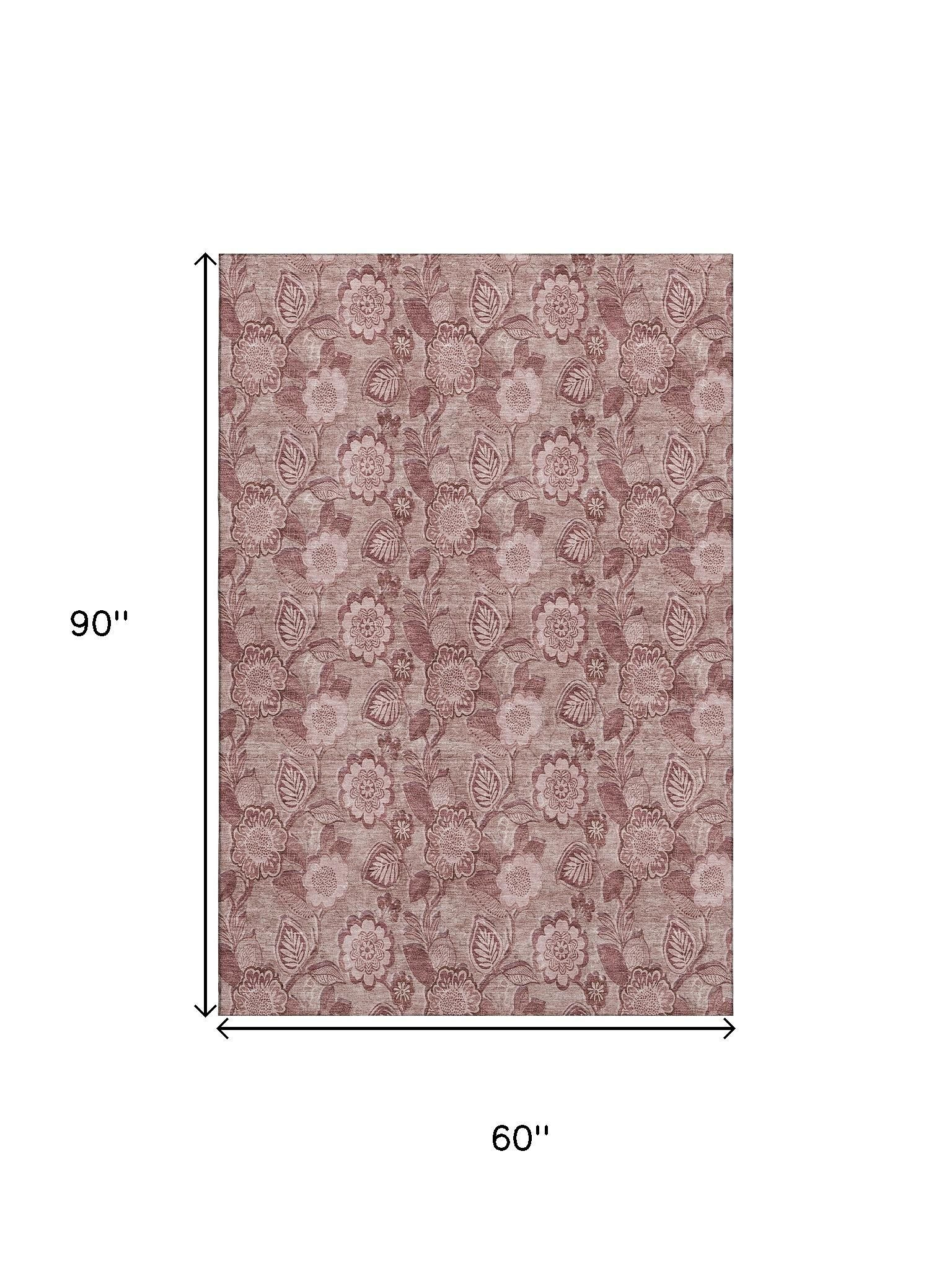 Add some artistry to your room with this 5-foot x 8-foot blush and pink floral washable area rug with uv protection. Ideal for spaces with kids and pets, this rug is stain resistant to help repel dirt and spilled liquids. Built to last, this rug crafted from polyester fibers is known for its durability and long lasting appeal. Rugs are a great way to showcase your style, hide imperfections, warm your home and reduce noise. This larger sized, transitional styled rug is ready to create a focal point or statement piece in your room. 60.00-inch h x 90.00-inch w x 0.39-inch d.