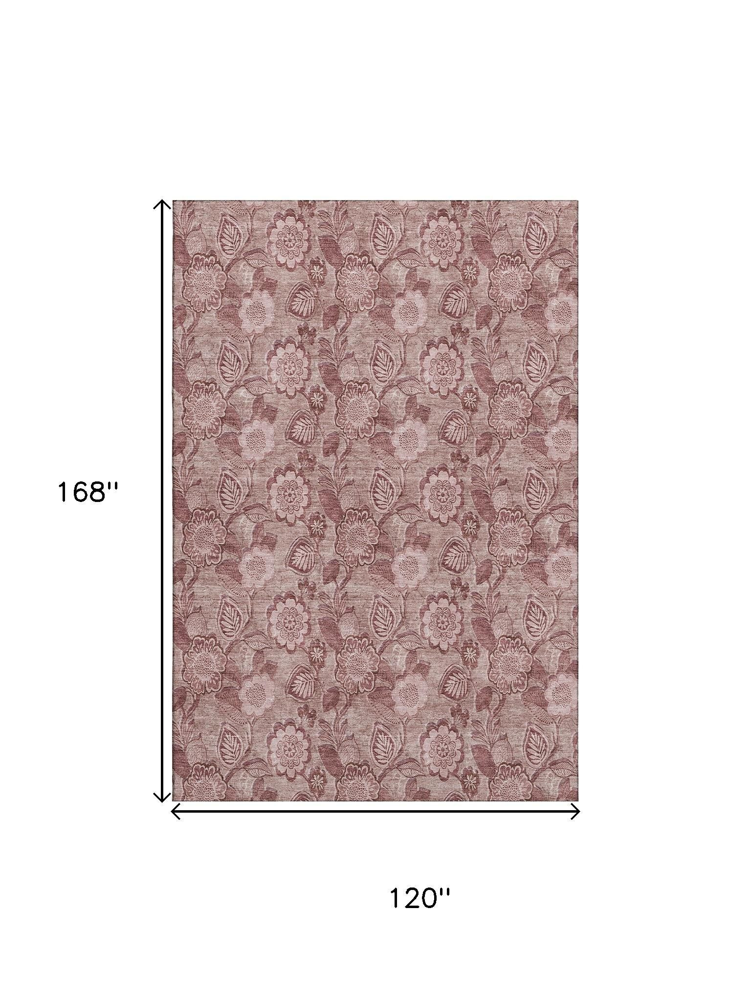 Set an inviting tone in your space with this 10-foot x 14-foot blush and pink floral washable area rug with uv protection. Ideal for spaces with kids and pets, this rug is stain resistant to help repel dirt and spilled liquids. Built to last, this rug crafted from polyester fibers is known for its durability and long lasting appeal. Rugs are a great way to showcase your style, hide imperfections, warm your home and reduce noise. This larger sized, transitional styled rug is ready to create a focal point or statement piece in your room. 120.00-inch h x 168.00-inch w x 0.39-inch d.