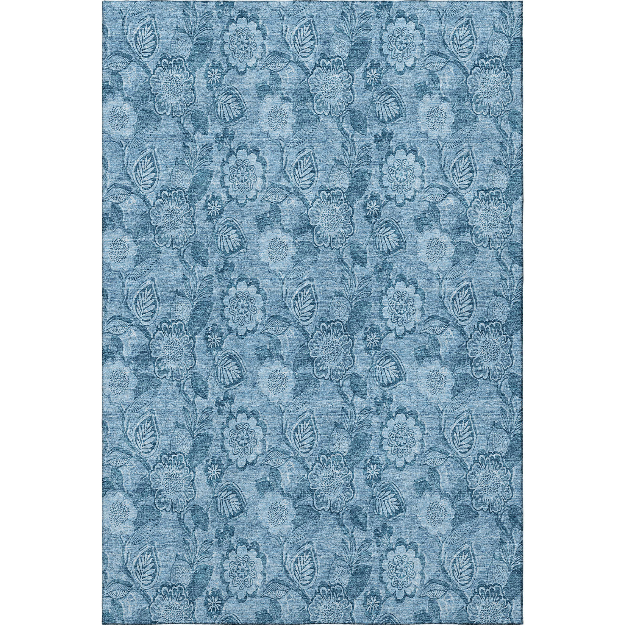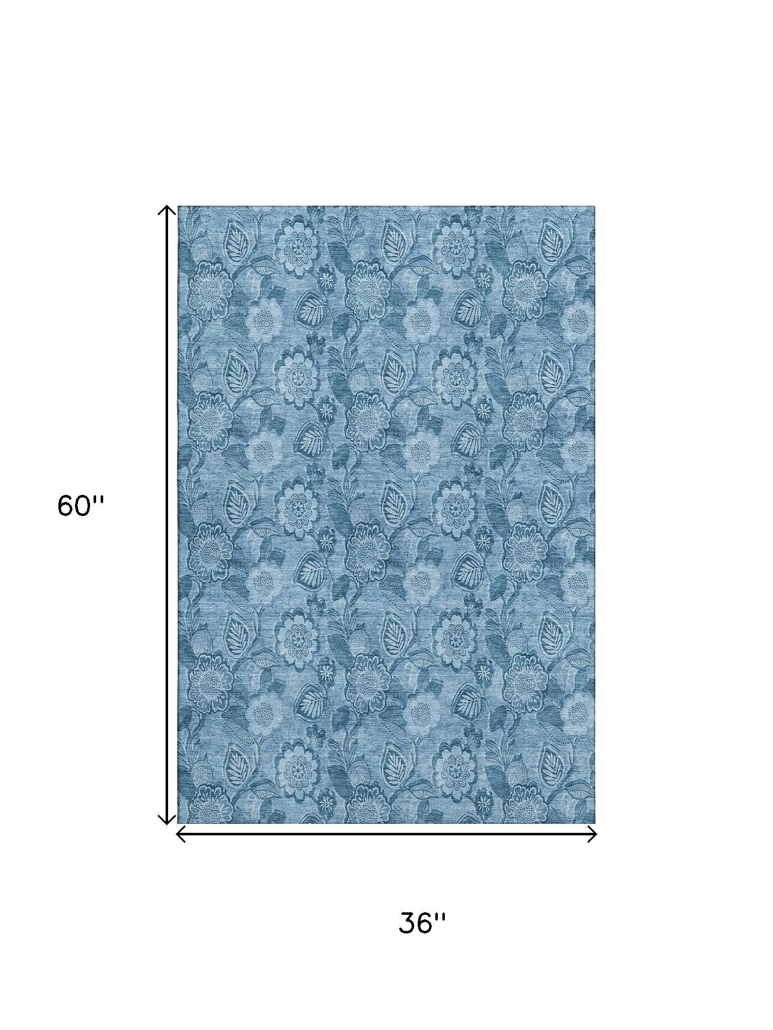 Set an inviting tone in your space with this 3-foot x 5-foot blue and sky blue floral washable area rug with uv protection. Ideal for spaces with kids and pets, this rug is stain resistant to help repel dirt and spilled liquids. Built to last, this rug crafted from polyester fibers is known for its durability and long lasting appeal. Rugs are a great way to showcase your style, hide imperfections, warm your home and reduce noise. This smaller sized, transitional styled rug is just what you need for your walkway, bedside, in front of door, cabinet, refrigerator, or chair. 36.00-inch h x 60.00-inch w x 0.39-inch d.