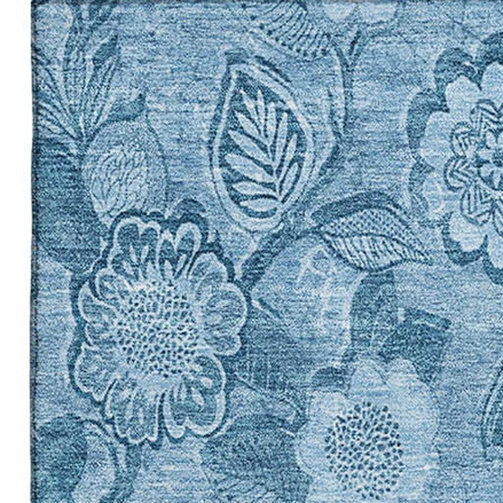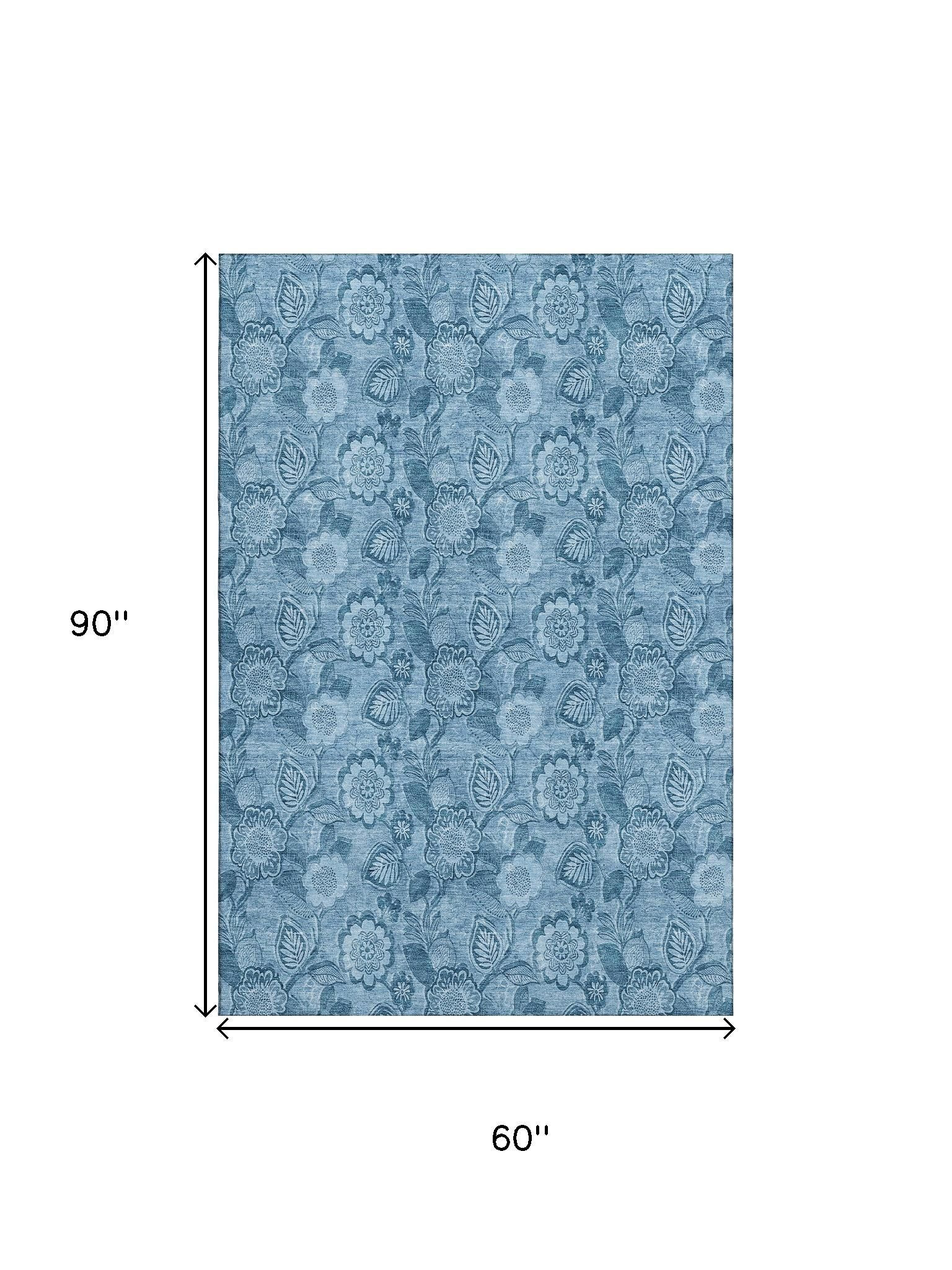 Add great coloration and comfortable texture to your space with this 5-foot x 8-foot blue and sky blue floral washable area rug with uv protection. Ideal for spaces with kids and pets, this rug is stain resistant to help repel dirt and spilled liquids. Built to last, this rug crafted from polyester fibers is known for its durability and long lasting appeal. Rugs are a great way to showcase your style, hide imperfections, warm your home and reduce noise. This larger sized, transitional styled rug is ready to create a focal point or statement piece in your room. 60.00-inch h x 90.00-inch w x 0.39-inch d.