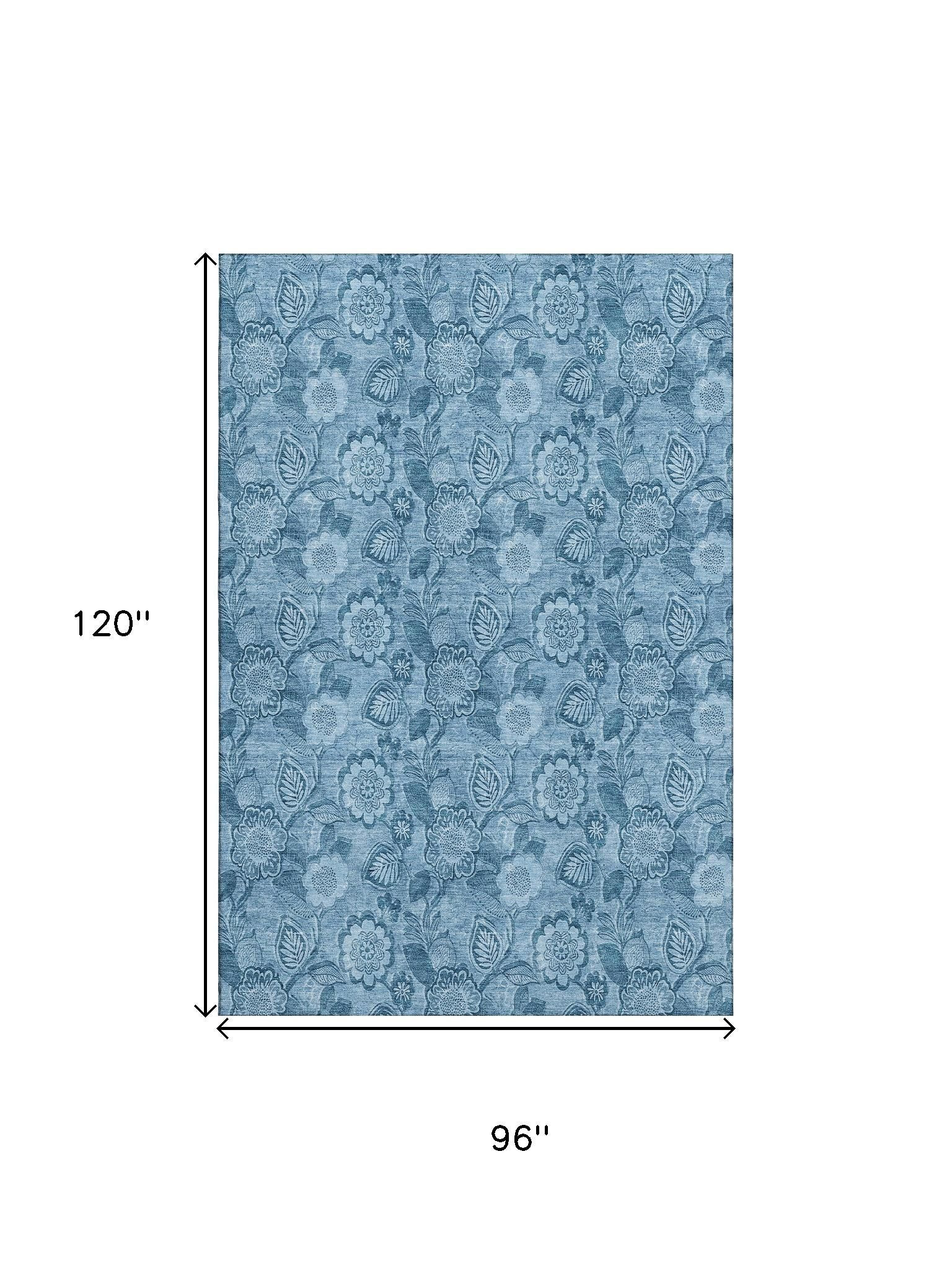 Add great coloration and comfortable texture to your space with this 8-foot x 10-foot blue and sky blue floral washable area rug with uv protection. Ideal for spaces with kids and pets, this rug is stain resistant to help repel dirt and spilled liquids. Built to last, this rug crafted from polyester fibers is known for its durability and long lasting appeal. Rugs are a great way to showcase your style, hide imperfections, warm your home and reduce noise. This larger sized, transitional styled rug is ready to create a focal point or statement piece in your room. 96.00-inch h x 120.00-inch w x 0.39-inch d.