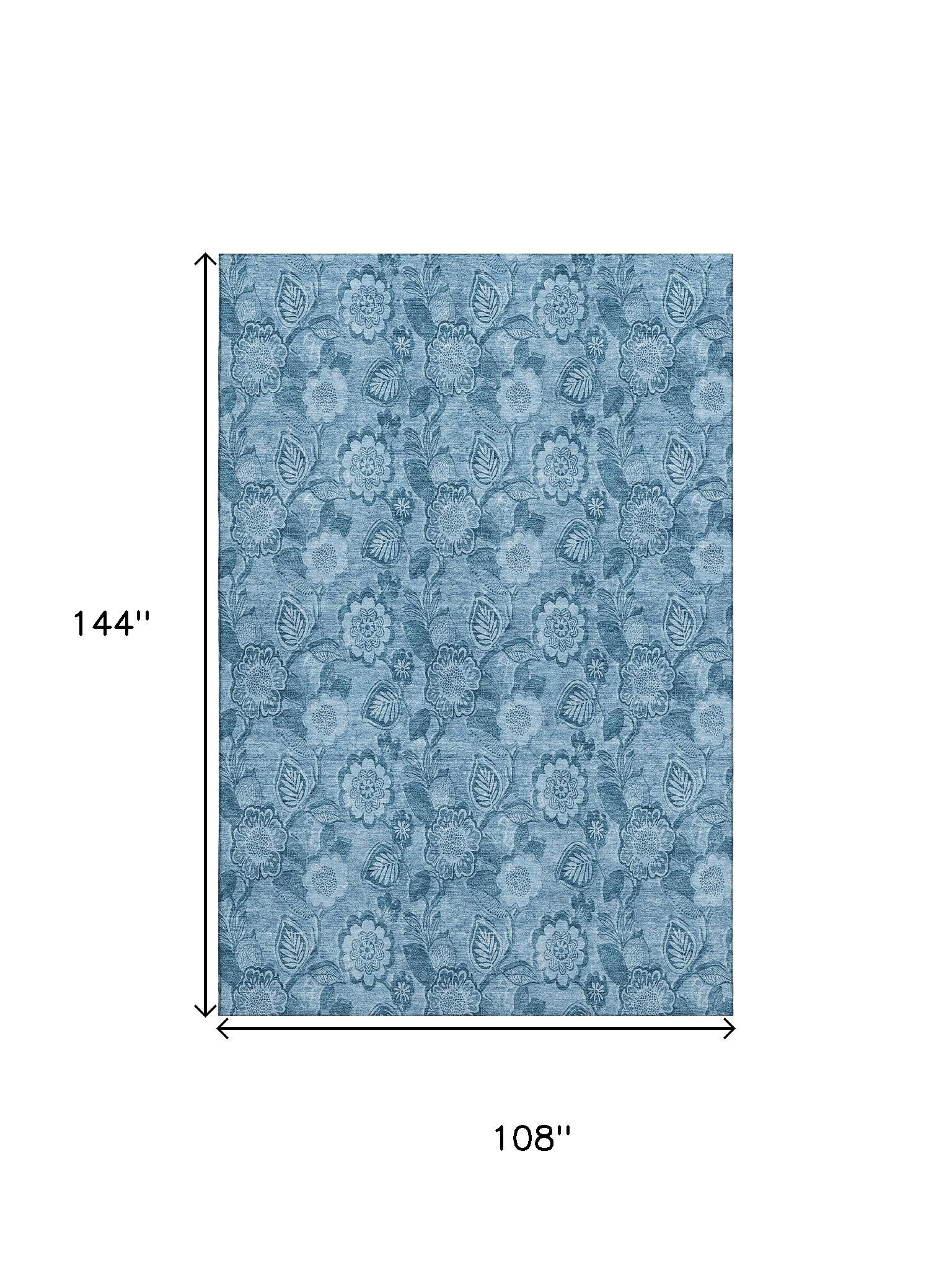 Add great coloration and comfortable texture to your space with this 9-foot x 12-foot blue and sky blue floral washable area rug with uv protection. Ideal for spaces with kids and pets, this rug is stain resistant to help repel dirt and spilled liquids. Built to last, this rug crafted from polyester fibers is known for its durability and long lasting appeal. Rugs are a great way to showcase your style, hide imperfections, warm your home and reduce noise. This larger sized, transitional styled rug is ready to create a focal point or statement piece in your room. 108.00-inch h x 144.00-inch w x 0.39-inch d.