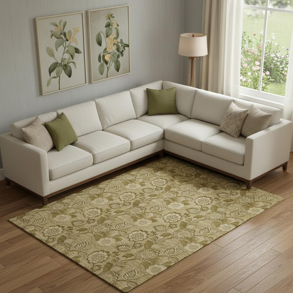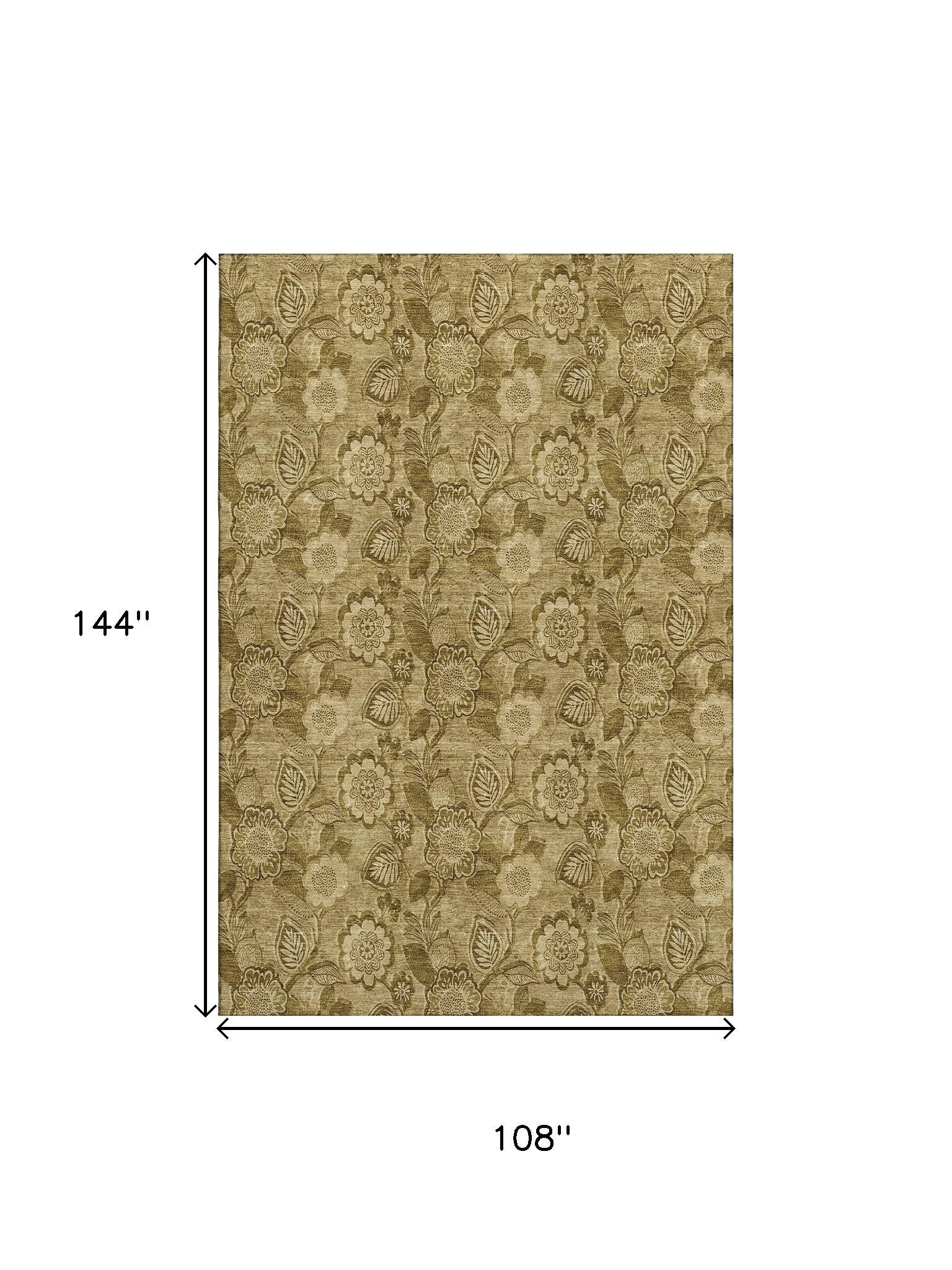 This 9-foot x 12-foot coffee and beige floral washable area rug with uv protection, is a great way to add warmth to a room. Ideal for spaces with kids and pets, this rug is stain resistant to help repel dirt and spilled liquids. Built to last, this rug crafted from polyester fibers is known for its durability and long lasting appeal. Rugs are a great way to showcase your style, hide imperfections, warm your home and reduce noise. This larger sized, transitional styled rug is ready to create a focal point or statement piece in your room. 108.00-inch h x 144.00-inch w x 0.39-inch d.