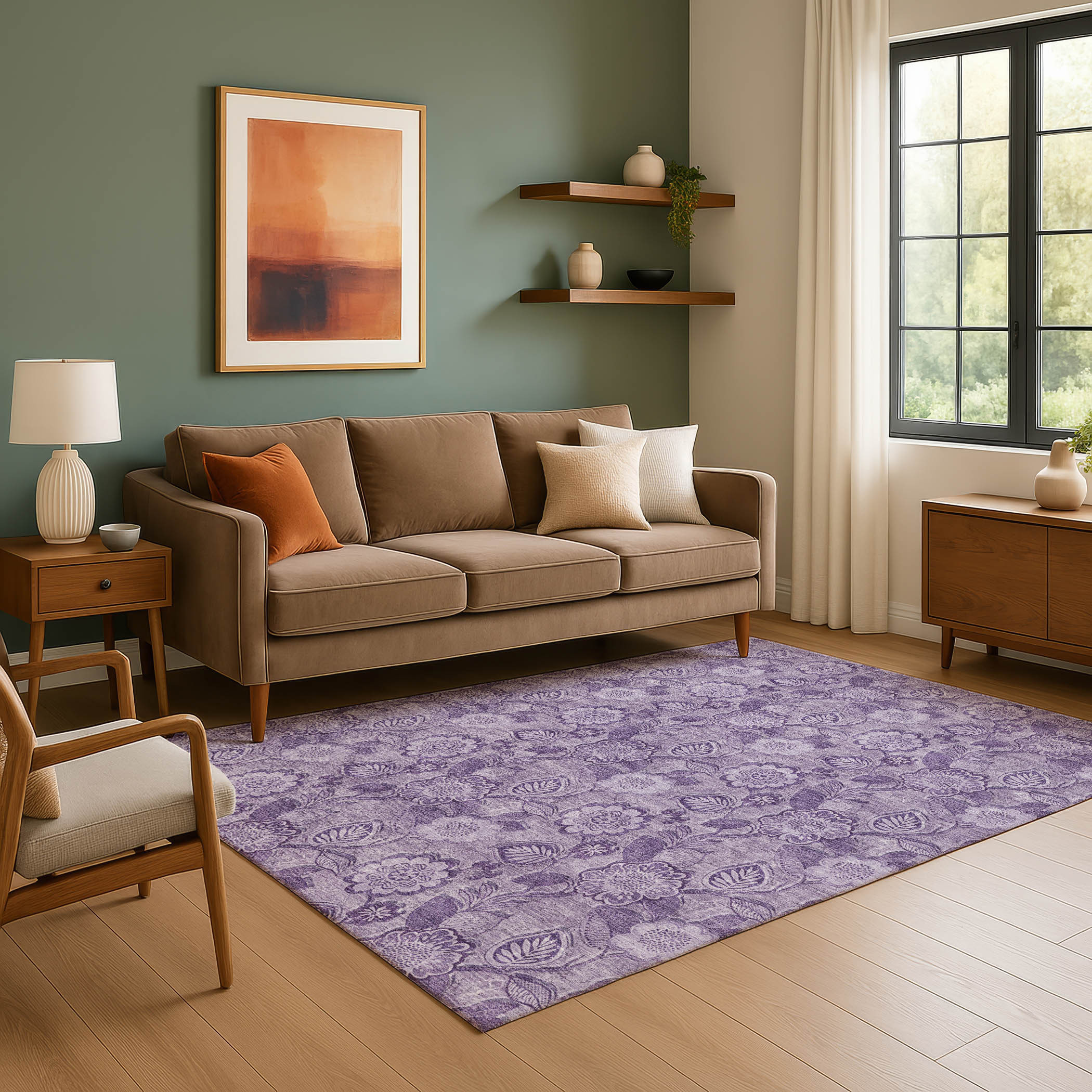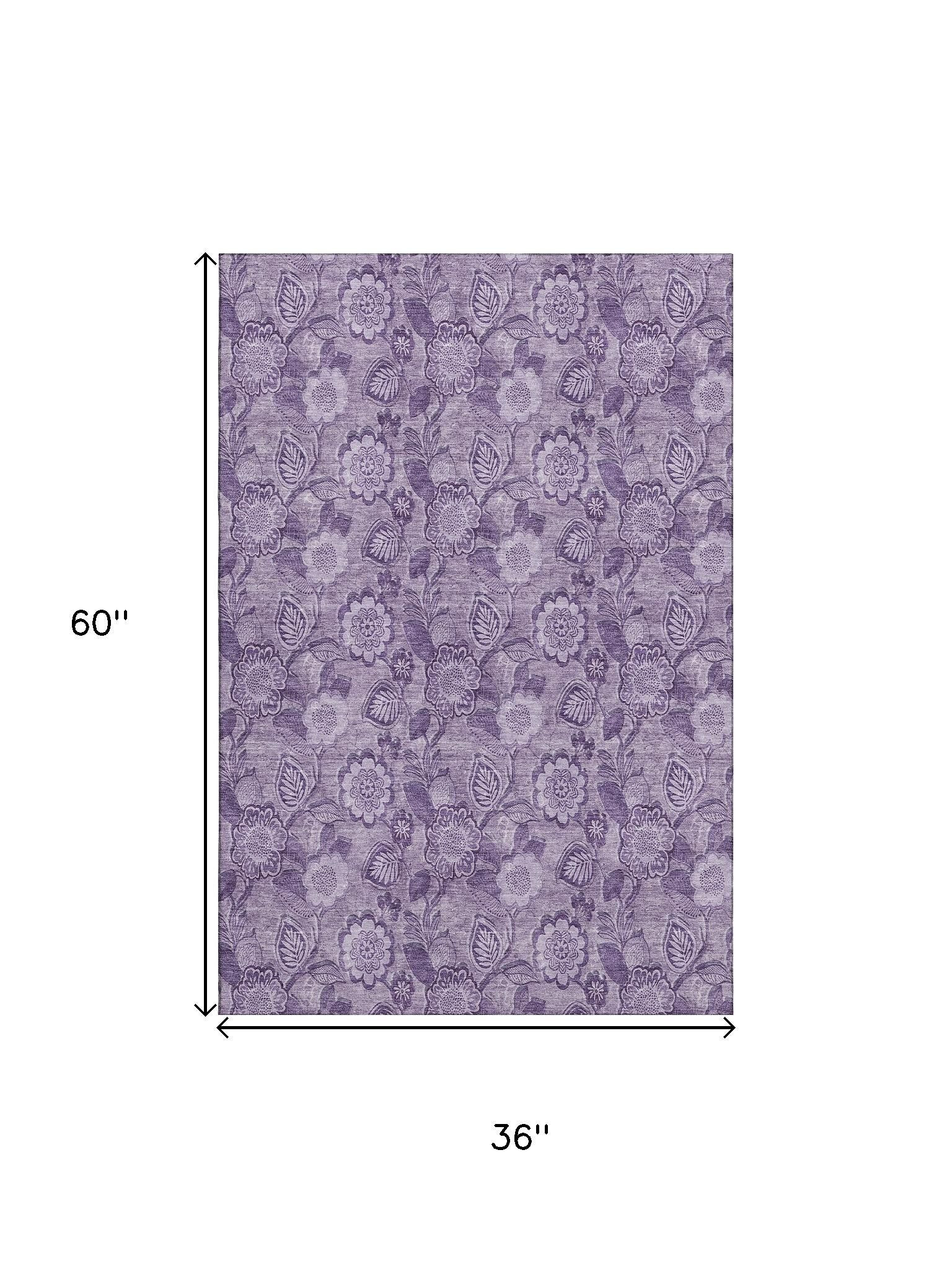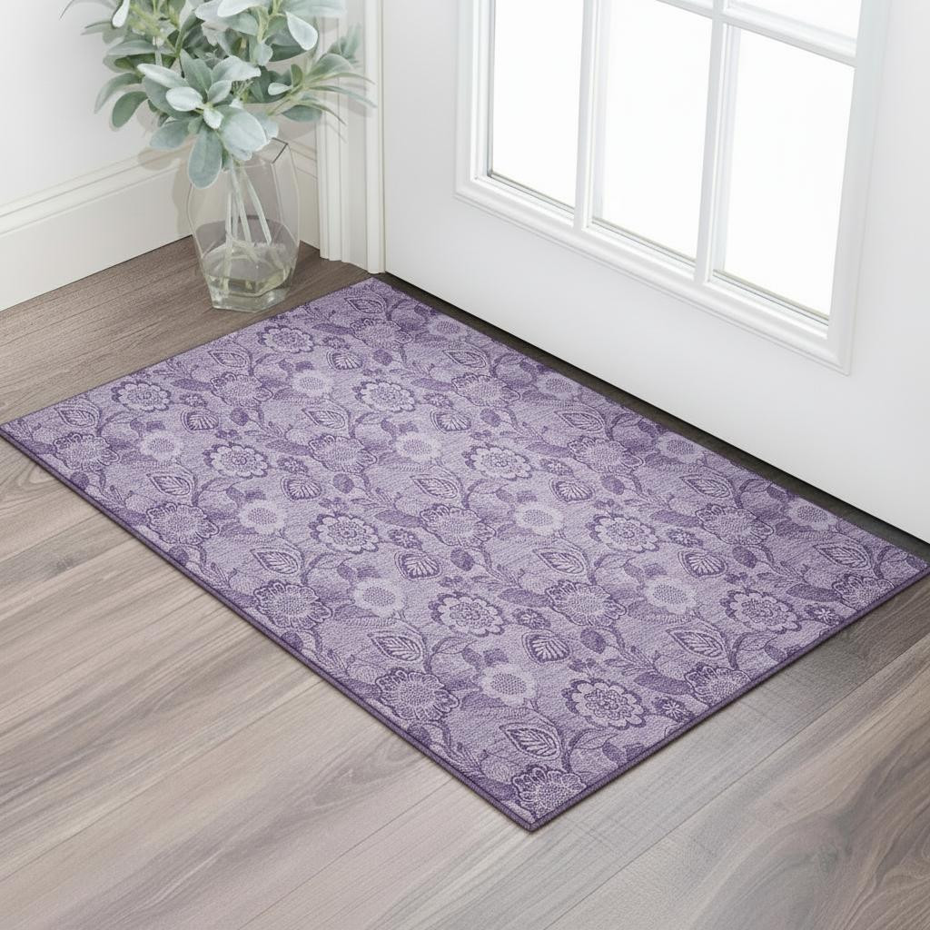 Add great coloration and comfortable texture to your space with this 3-foot x 5-foot plum and purple floral washable area rug with uv protection. Ideal for spaces with kids and pets, this rug is stain resistant to help repel dirt and spilled liquids. Built to last, this rug crafted from polyester fibers is known for its durability and long lasting appeal. Rugs are a great way to showcase your style, hide imperfections, warm your home and reduce noise. This smaller sized, transitional styled rug is just what you need for your walkway, bedside, in front of door, cabinet, refrigerator, or chair. 36.00-inch h x 60.00-inch w x 0.39-inch d.