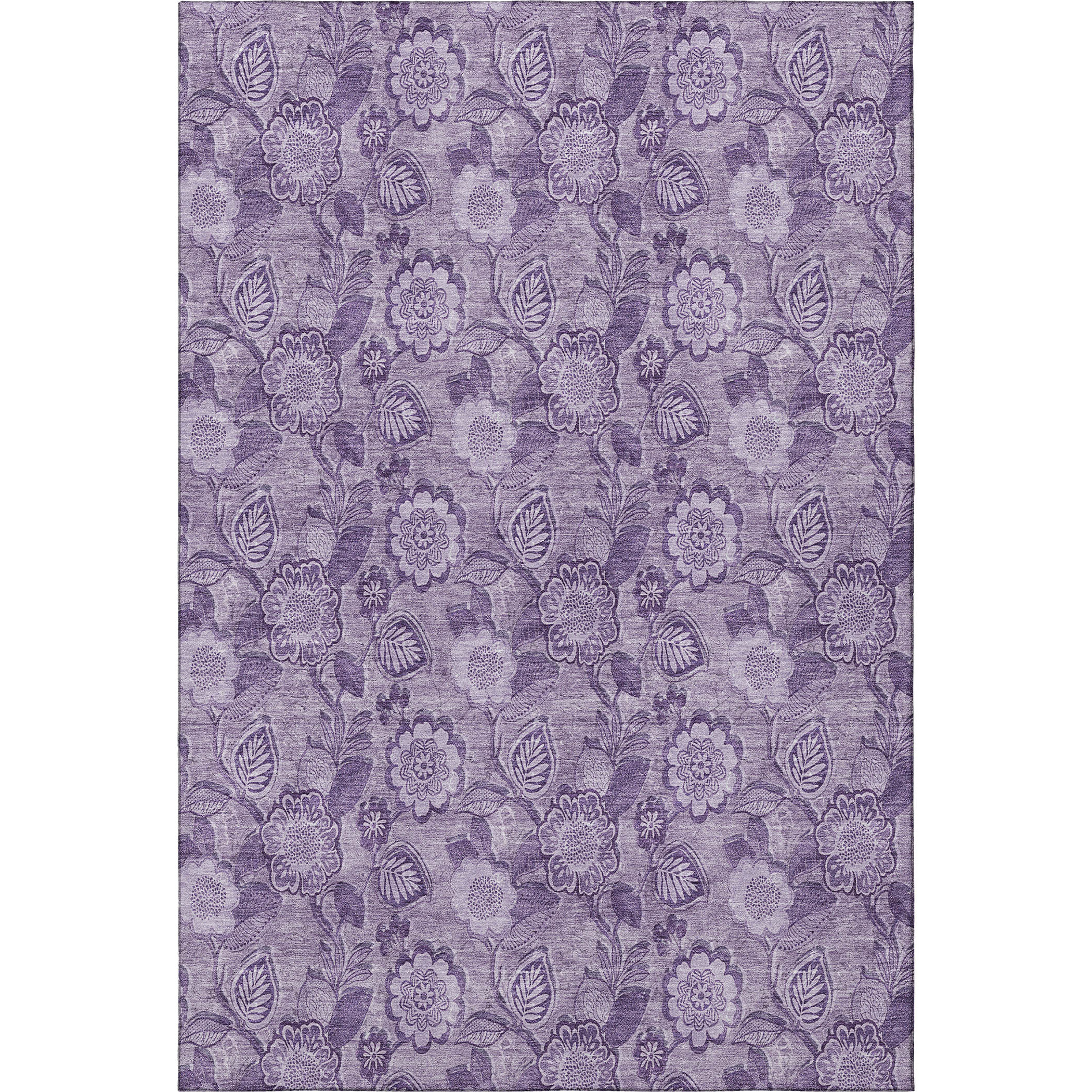 This 5-foot x 8-foot plum and purple floral washable area rug with uv protection, is a great way to add warmth to a room. Ideal for spaces with kids and pets, this rug is stain resistant to help repel dirt and spilled liquids. Built to last, this rug crafted from polyester fibers is known for its durability and long lasting appeal. Rugs are a great way to showcase your style, hide imperfections, warm your home and reduce noise. This larger sized, transitional styled rug is ready to create a focal point or statement piece in your room. 60.00-inch h x 90.00-inch w x 0.39-inch d.