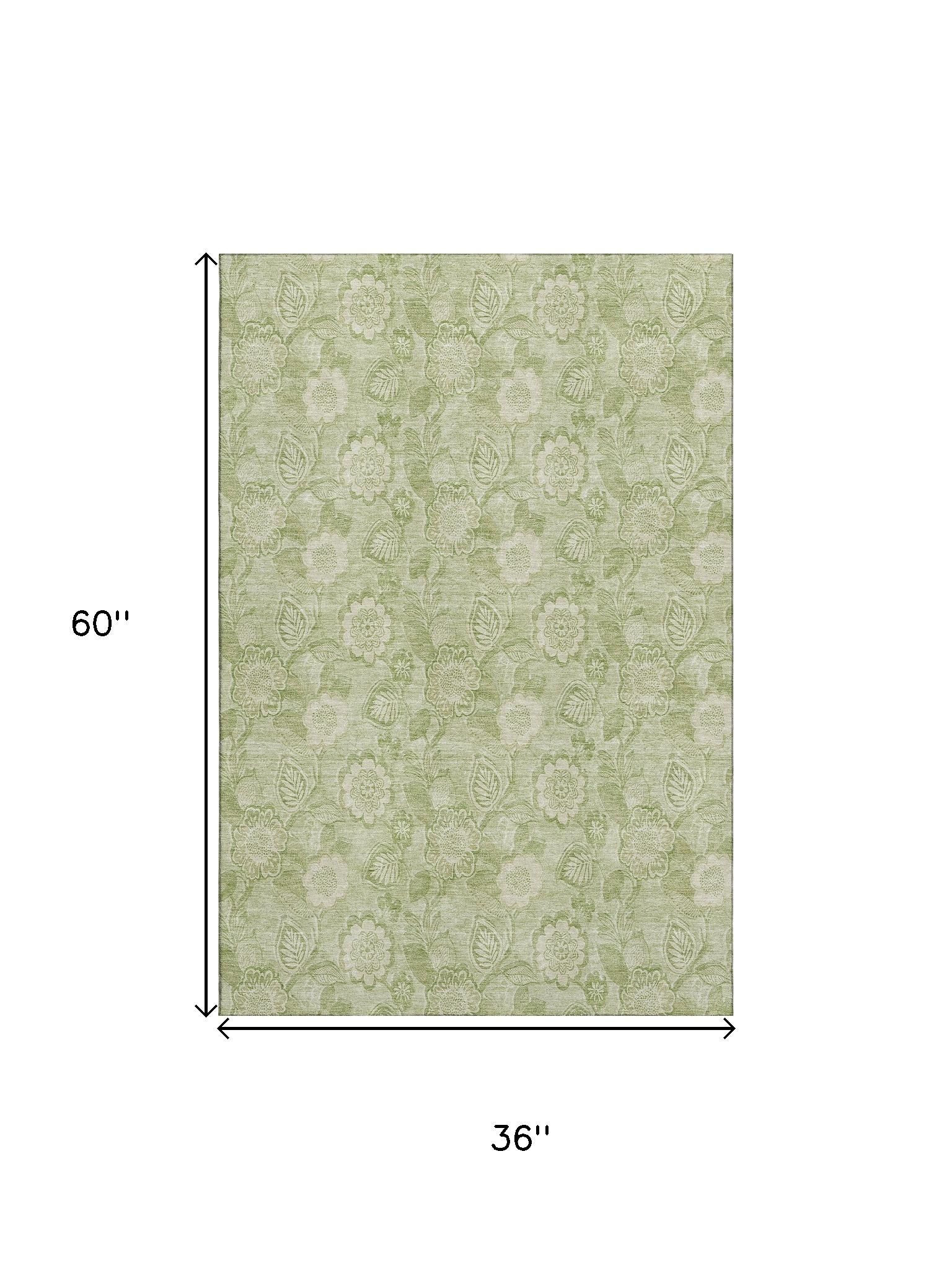 Set an inviting tone in your space with this 3-foot x 5-foot sage and beige floral washable area rug with uv protection. Ideal for spaces with kids and pets, this rug is stain resistant to help repel dirt and spilled liquids. Built to last, this rug crafted from polyester fibers is known for its durability and long lasting appeal. Rugs are a great way to showcase your style, hide imperfections, warm your home and reduce noise. This smaller sized, transitional styled rug is just what you need for your walkway, bedside, in front of door, cabinet, refrigerator, or chair. 36.00-inch h x 60.00-inch w x 0.39-inch d.
