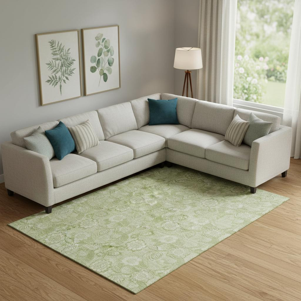 Add great coloration and comfortable texture to your space with this 10-foot x 14-foot sage and beige floral washable area rug with uv protection. Ideal for spaces with kids and pets, this rug is stain resistant to help repel dirt and spilled liquids. Built to last, this rug crafted from polyester fibers is known for its durability and long lasting appeal. Rugs are a great way to showcase your style, hide imperfections, warm your home and reduce noise. This larger sized, transitional styled rug is ready to create a focal point or statement piece in your room. 120.00-inch h x 168.00-inch w x 0.39-inch d.