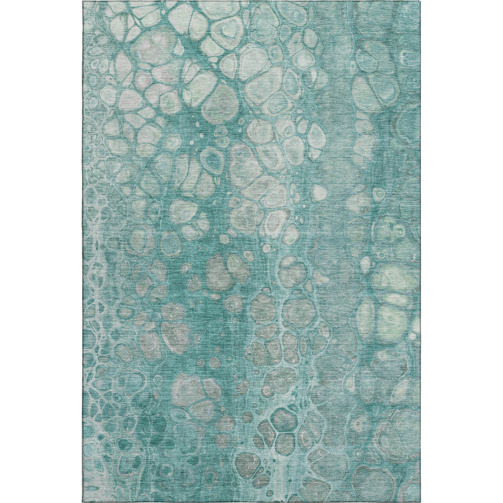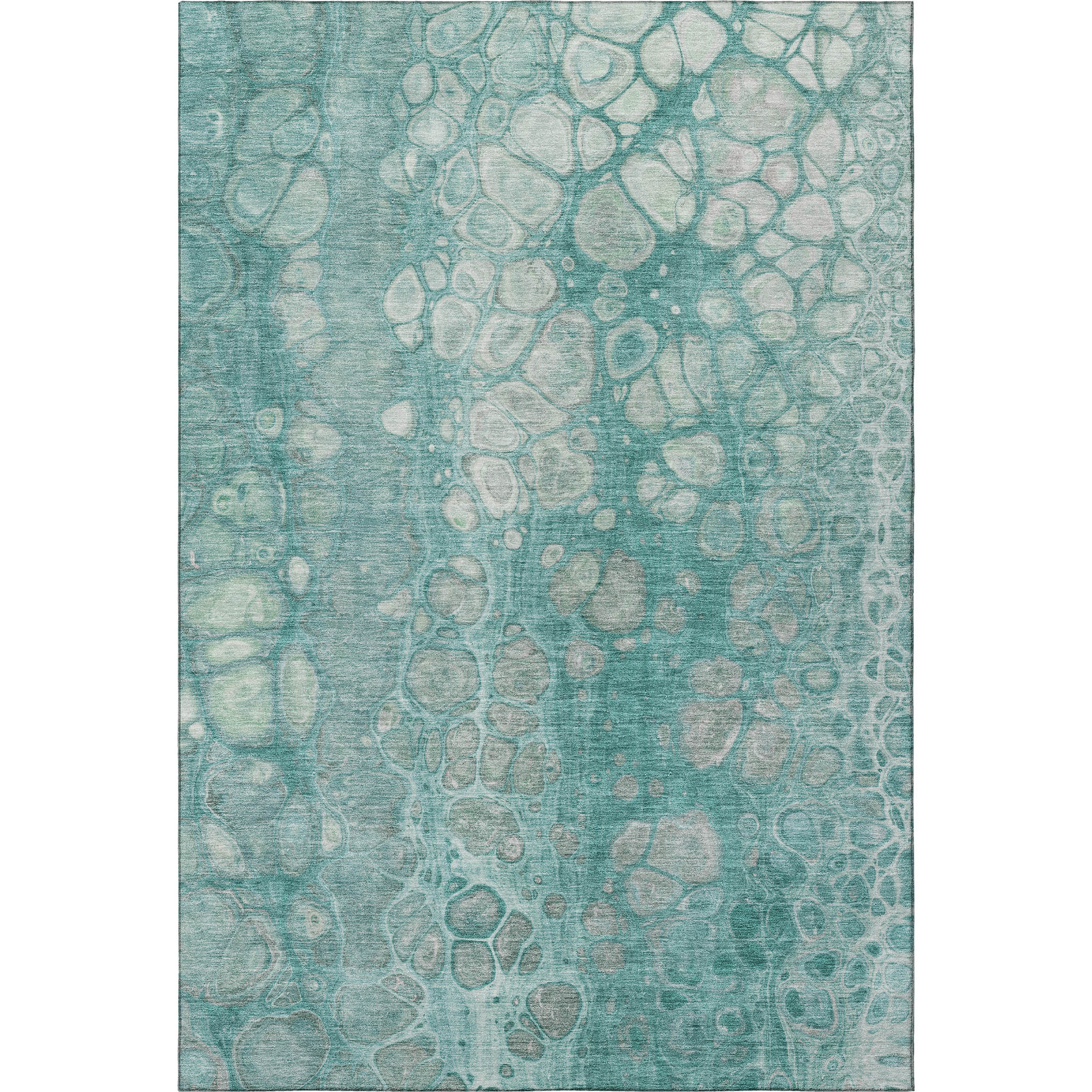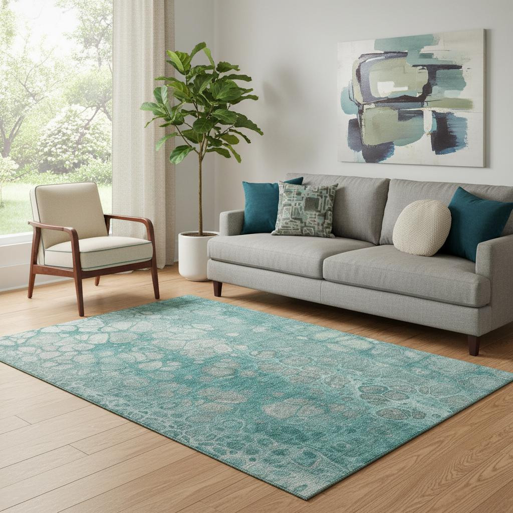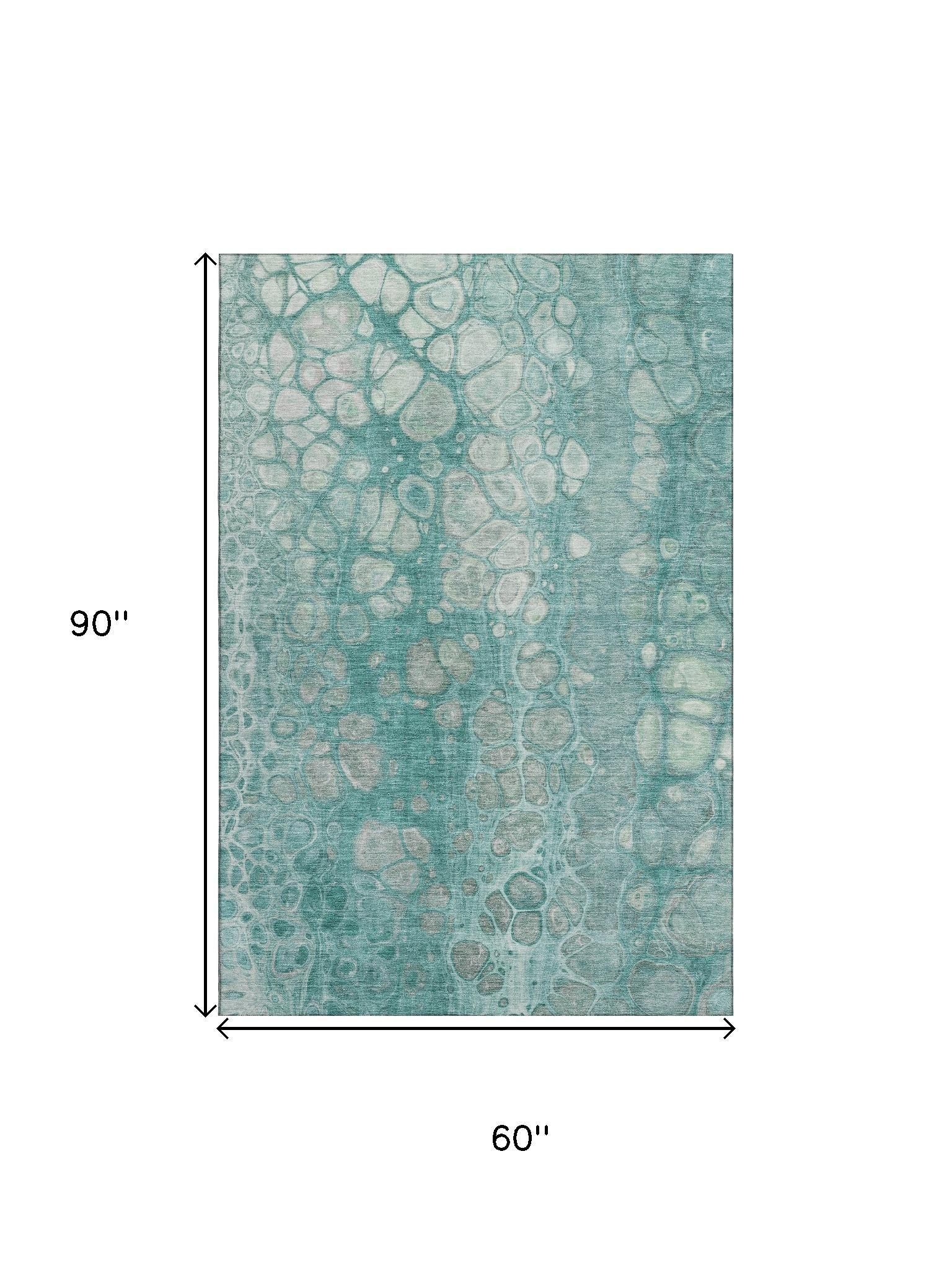 Add some artistry to your room with this 5-foot x 8-foot aqua gray and silver abstract washable area rug with uv protection. Ideal for spaces with kids and pets, this rug is stain resistant to help repel dirt and spilled liquids. Built to last, this rug crafted from polyester fibers is known for its durability and long lasting appeal. Rugs are a great way to showcase your style, hide imperfections, warm your home and reduce noise. This larger sized, transitional styled rug is ready to create a focal point or statement piece in your room. 60.00-inch h x 90.00-inch w x 0.39-inch d.