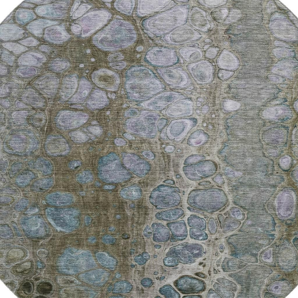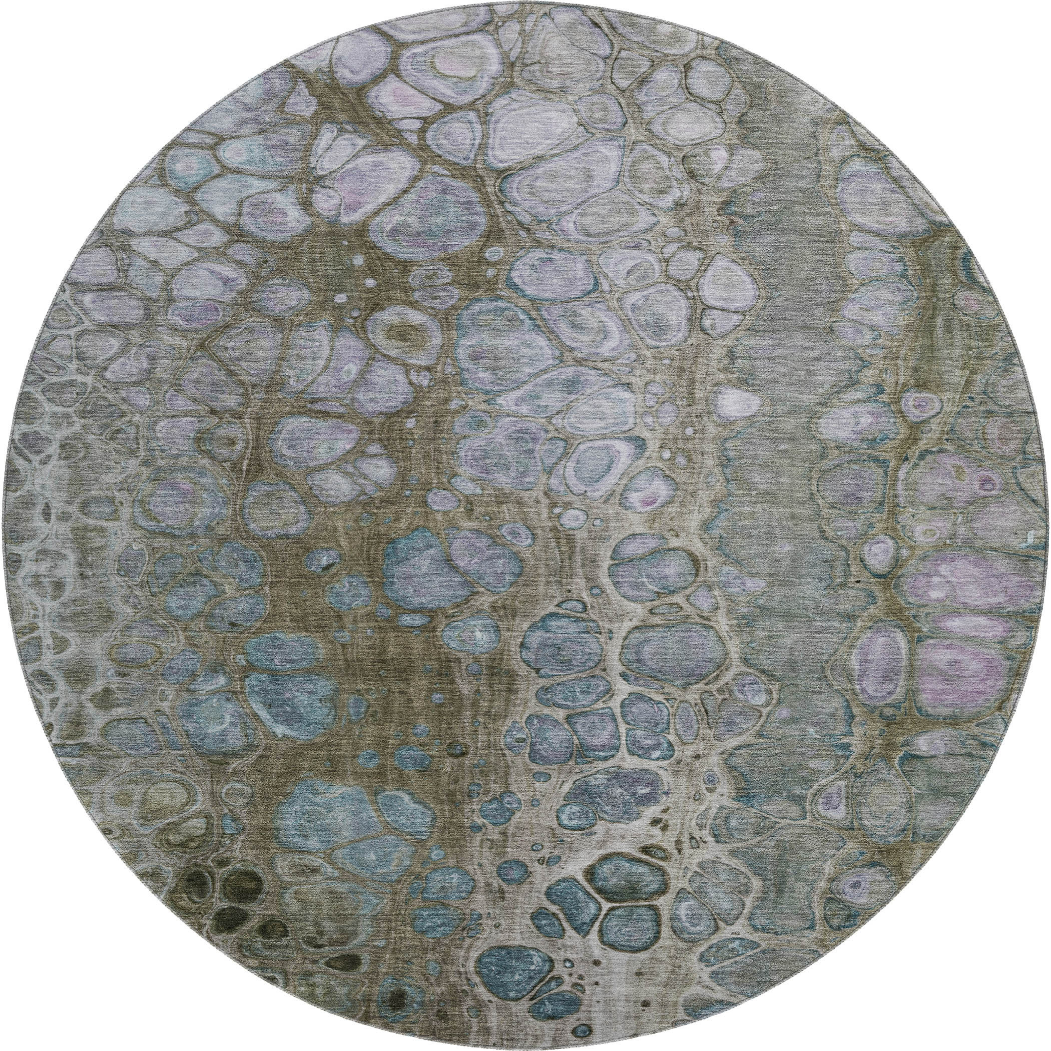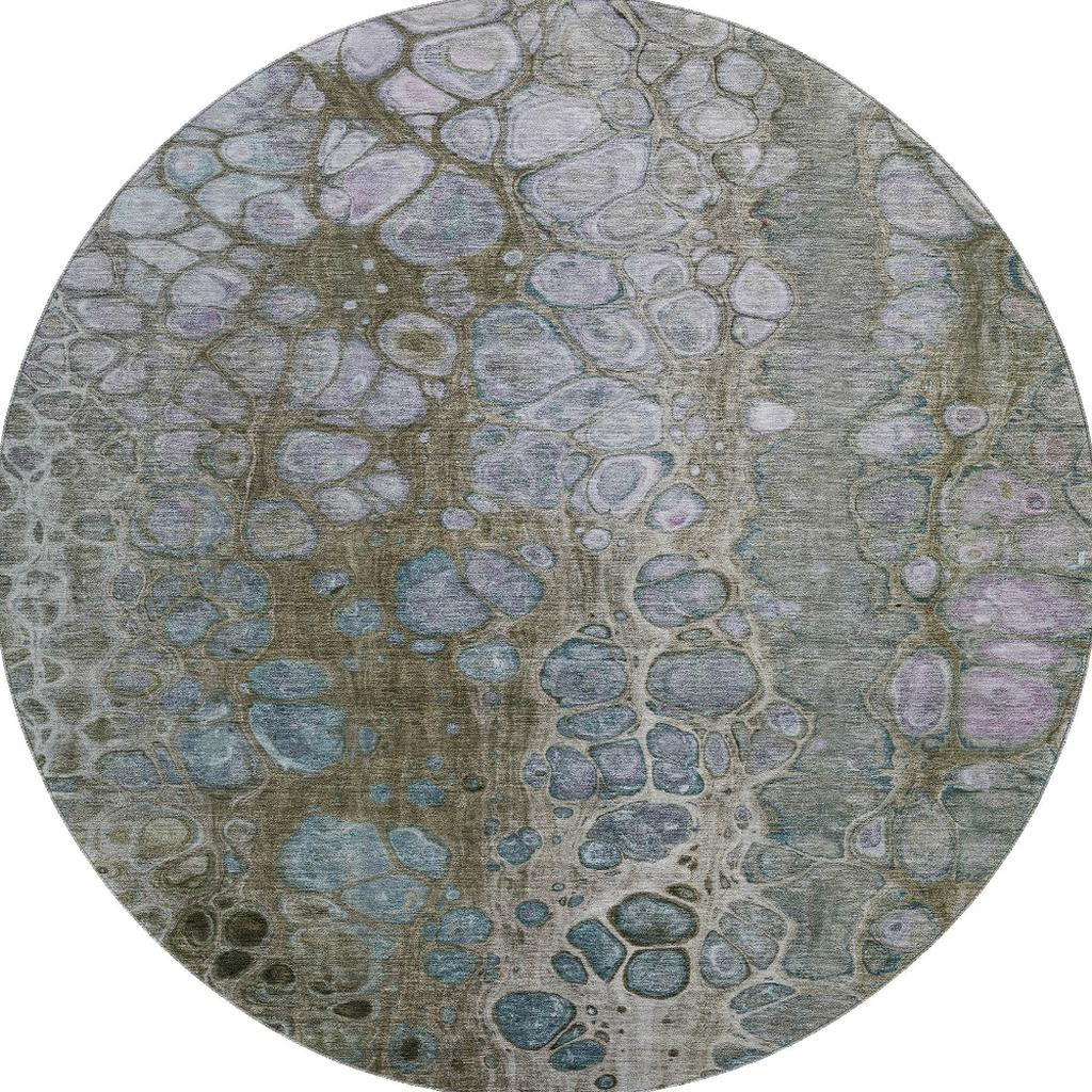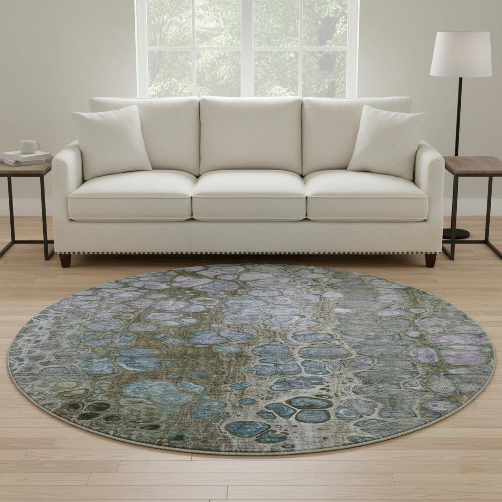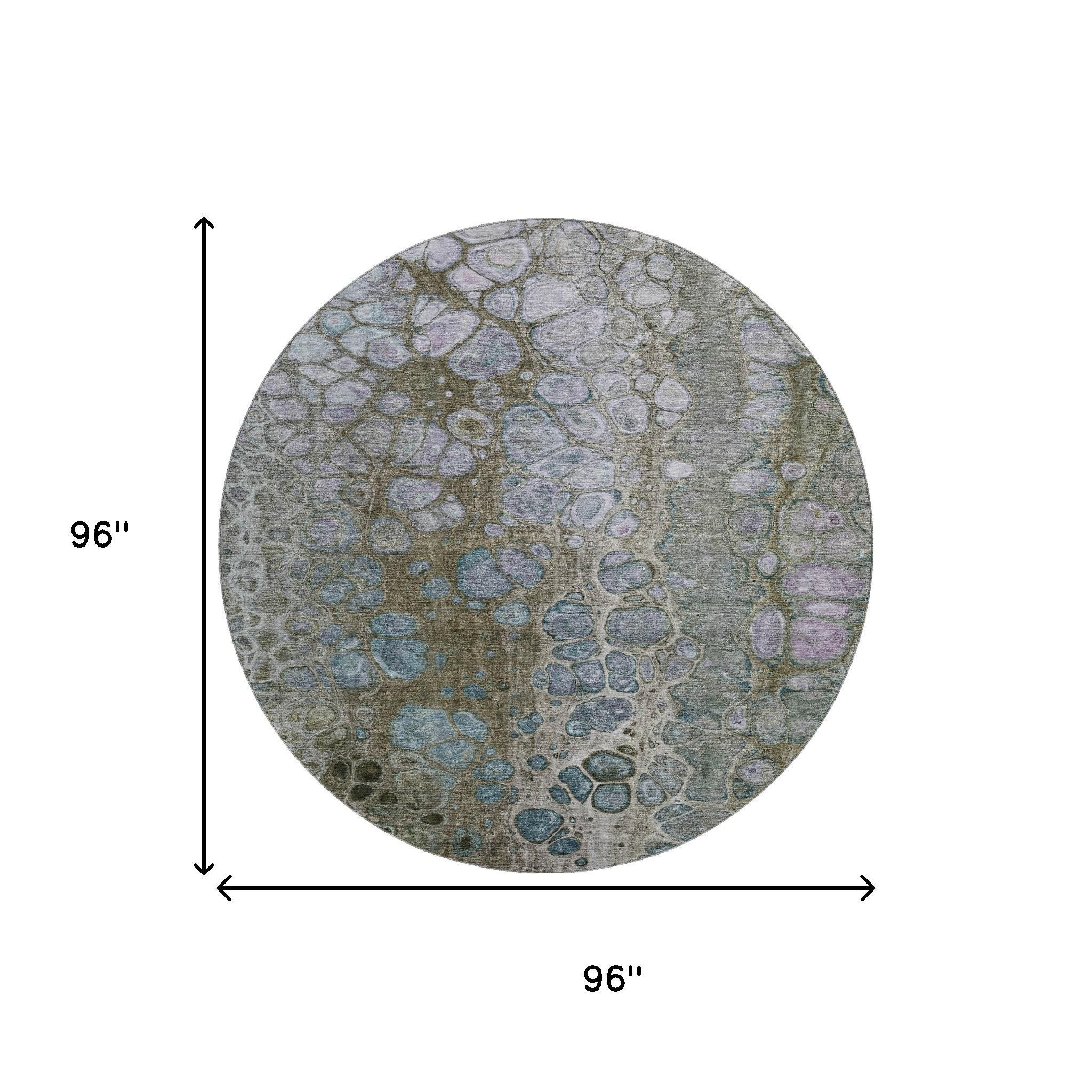 Add great coloration and comfortable texture to your space with this 8-foot brown blue and gray abstract washable round rug with uv protection. Ideal for spaces with kids and pets, this rug is stain resistant to help repel dirt and spilled liquids. Built to last, this rug crafted from polyester fibers is known for its durability and long lasting appeal. Rugs are a great way to showcase your style, hide imperfections, warm your home and reduce noise. This larger sized, transitional styled rug is ready to create a focal point or statement piece in your room. 96.00-inch h x 96.00-inch w x 0.39-inch d.