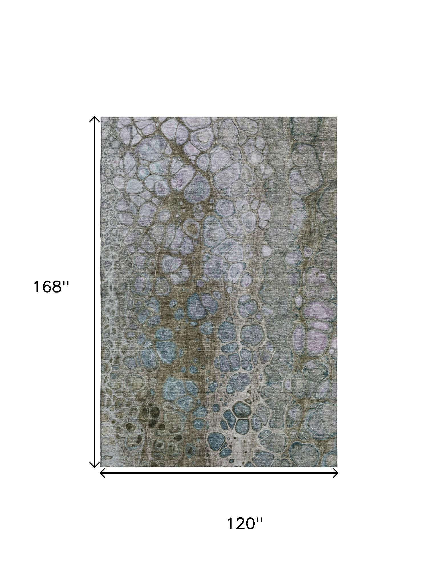 Add some artistry to your room with this 10-foot x 14-foot brown blue and gray abstract washable area rug with uv protection. Ideal for spaces with kids and pets, this rug is stain resistant to help repel dirt and spilled liquids. Built to last, this rug crafted from polyester fibers is known for its durability and long lasting appeal. Rugs are a great way to showcase your style, hide imperfections, warm your home and reduce noise. This larger sized, transitional styled rug is ready to create a focal point or statement piece in your room. 120.00-inch h x 168.00-inch w x 0.39-inch d.