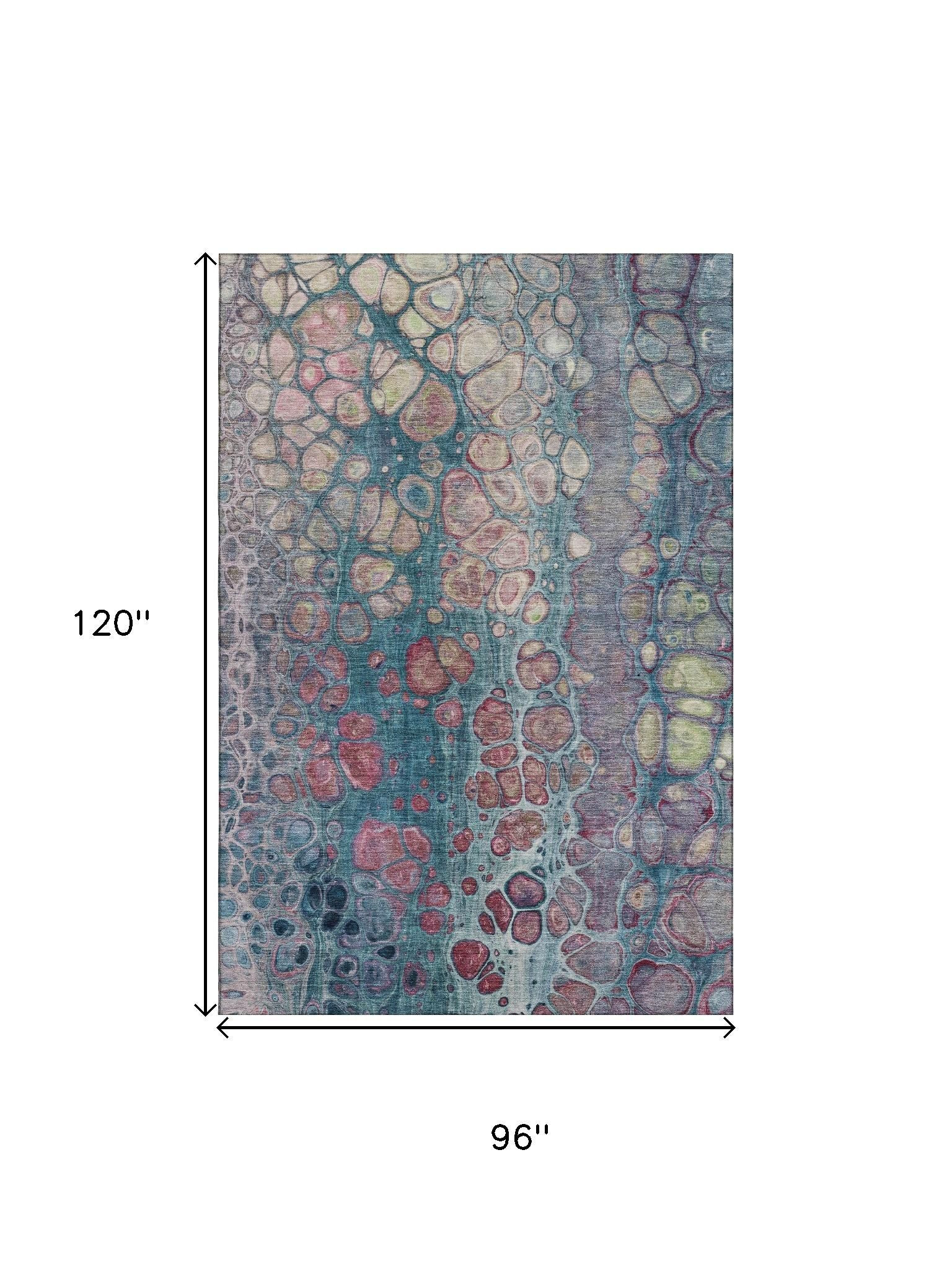 Set an inviting tone in your space with this 8-foot x 10-foot teal plum and beige abstract washable area rug with uv protection. Ideal for spaces with kids and pets, this rug is stain resistant to help repel dirt and spilled liquids. Built to last, this rug crafted from polyester fibers is known for its durability and long lasting appeal. Rugs are a great way to showcase your style, hide imperfections, warm your home and reduce noise. This larger sized, transitional styled rug is ready to create a focal point or statement piece in your room. 96.00-inch h x 120.00-inch w x 0.39-inch d.