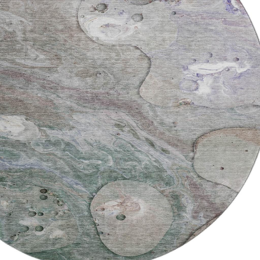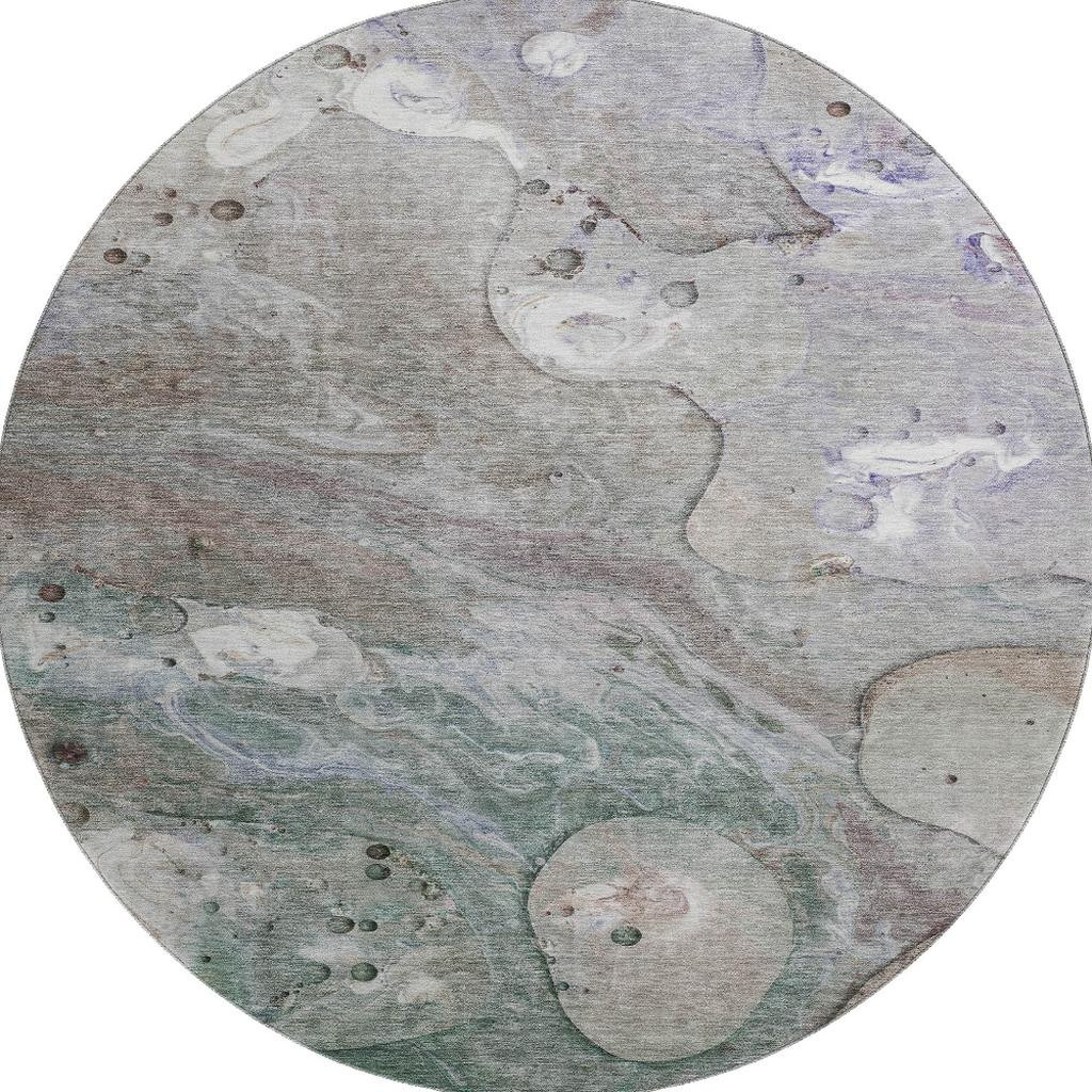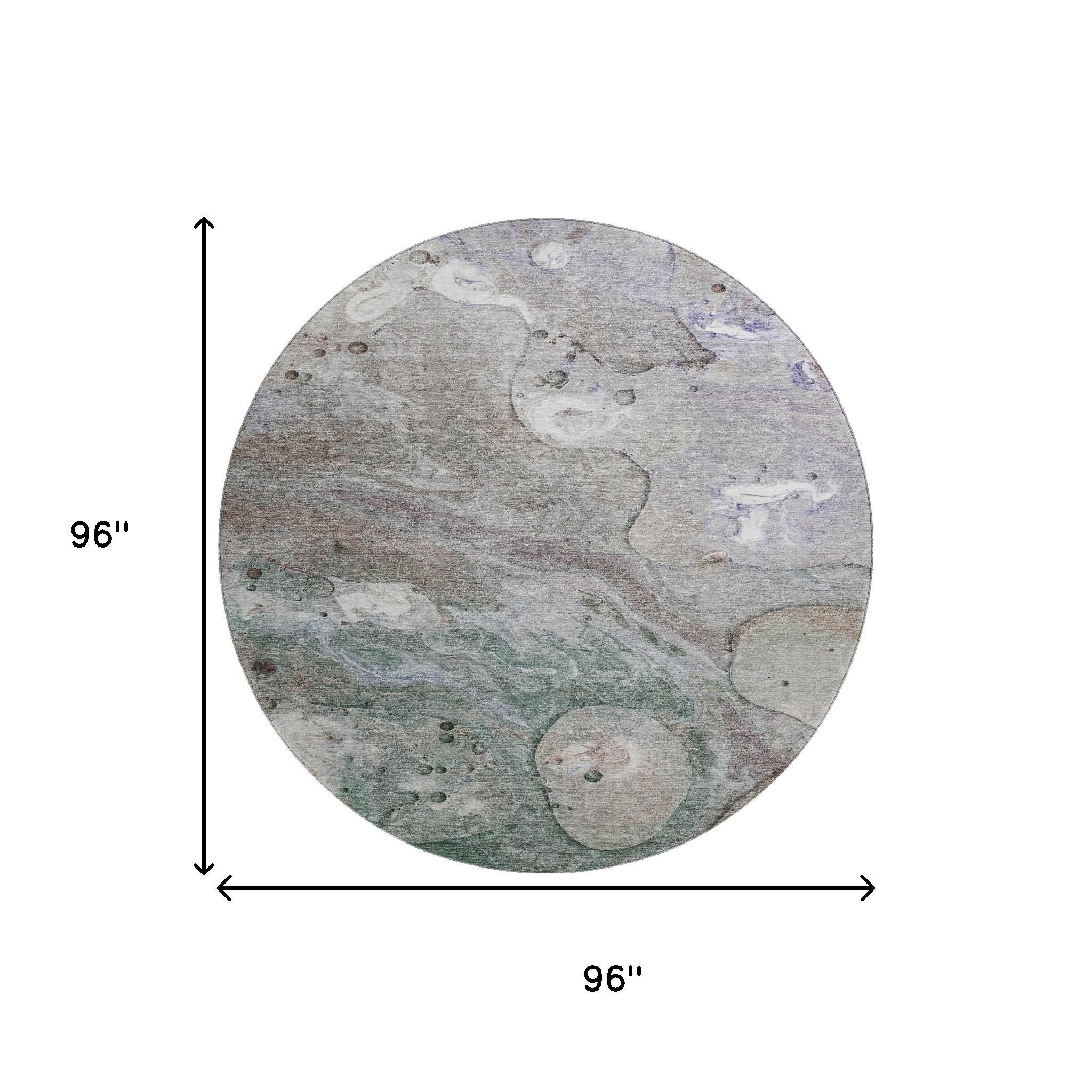 Add some artistry to your room with this 8-foot khaki beige and purple abstract washable round rug with uv protection. Ideal for spaces with kids and pets, this rug is stain resistant to help repel dirt and spilled liquids. Built to last, this rug crafted from polyester fibers is known for its durability and long lasting appeal. Rugs are a great way to showcase your style, hide imperfections, warm your home and reduce noise. This larger sized, transitional styled rug is ready to create a focal point or statement piece in your room. 96.00-inch h x 96.00-inch w x 0.39-inch d.