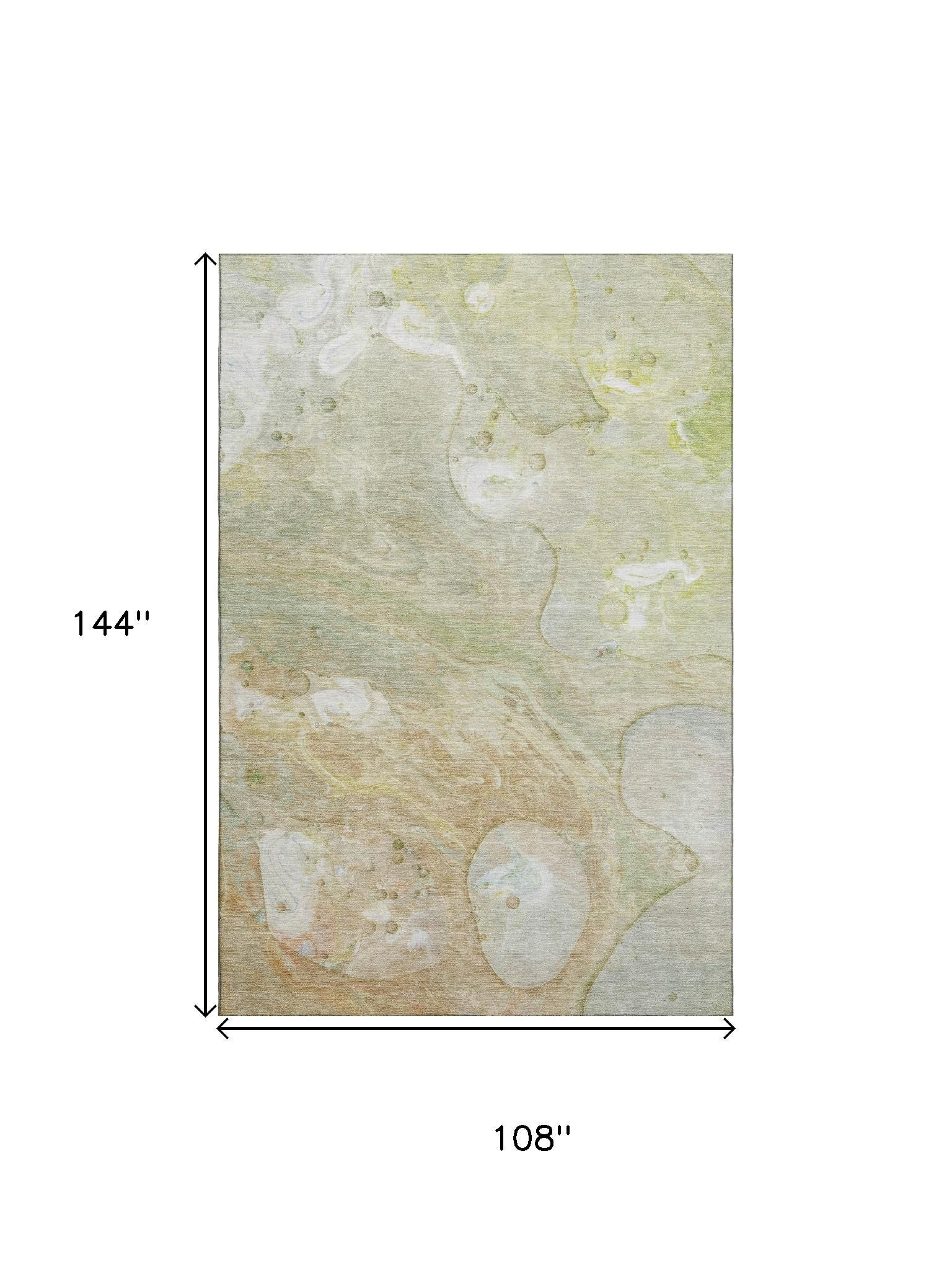 Add some artistry to your room with this 9-foot x 12-foot linen ivory and green abstract washable area rug with uv protection. Ideal for spaces with kids and pets, this rug is stain resistant to help repel dirt and spilled liquids. Built to last, this rug crafted from polyester fibers is known for its durability and long lasting appeal. Rugs are a great way to showcase your style, hide imperfections, warm your home and reduce noise. This larger sized, transitional styled rug is ready to create a focal point or statement piece in your room. 108.00-inch h x 144.00-inch w x 0.39-inch d.