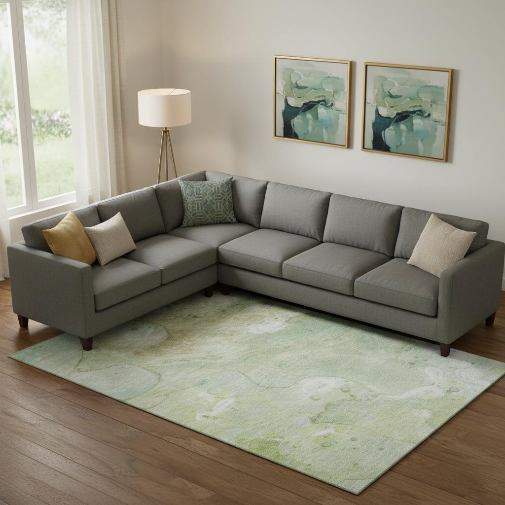 This 10-foot x 14-foot sage and teal abstract washable area rug with uv protection, is a great way to add warmth to a room. Ideal for spaces with kids and pets, this rug is stain resistant to help repel dirt and spilled liquids. Built to last, this rug crafted from polyester fibers is known for its durability and long lasting appeal. Rugs are a great way to showcase your style, hide imperfections, warm your home and reduce noise. This larger sized, transitional styled rug is ready to create a focal point or statement piece in your room. 120.00-inch h x 168.00-inch w x 0.39-inch d.