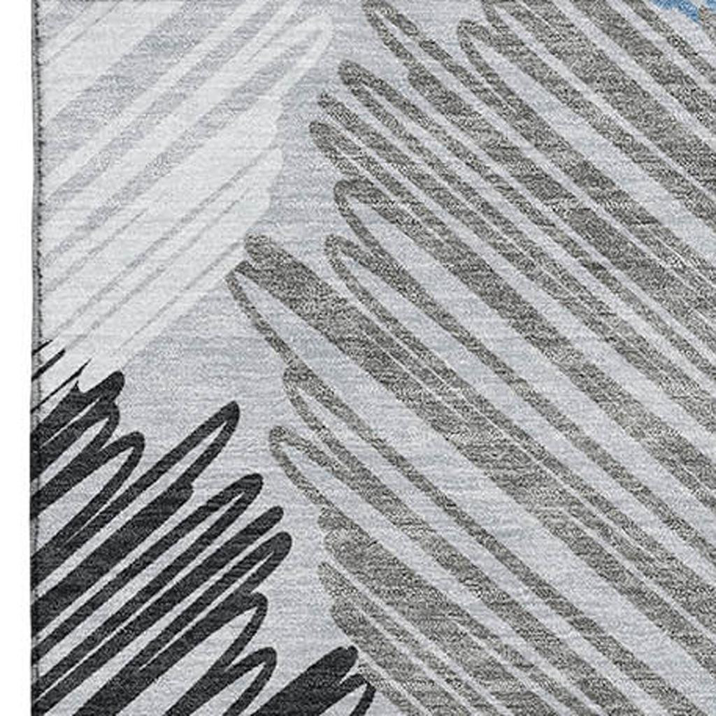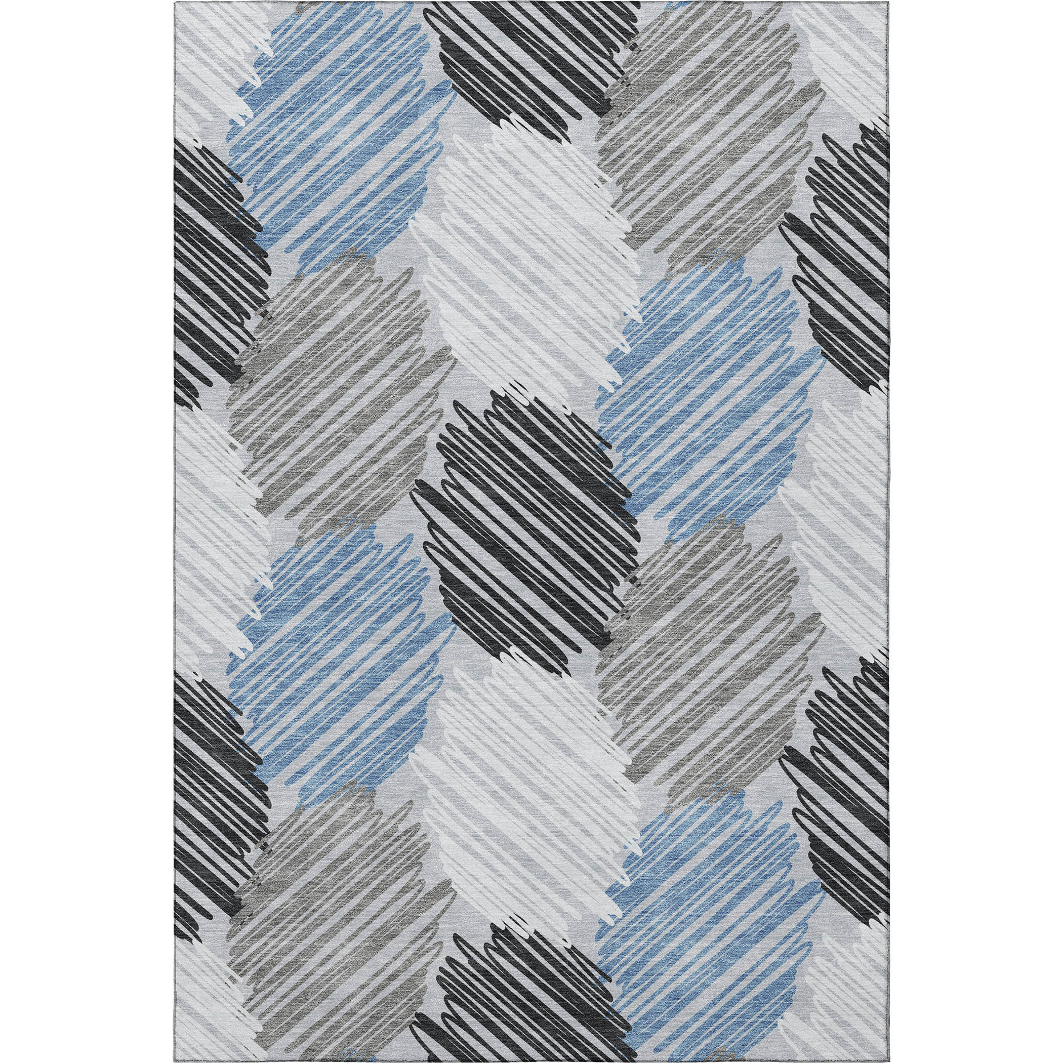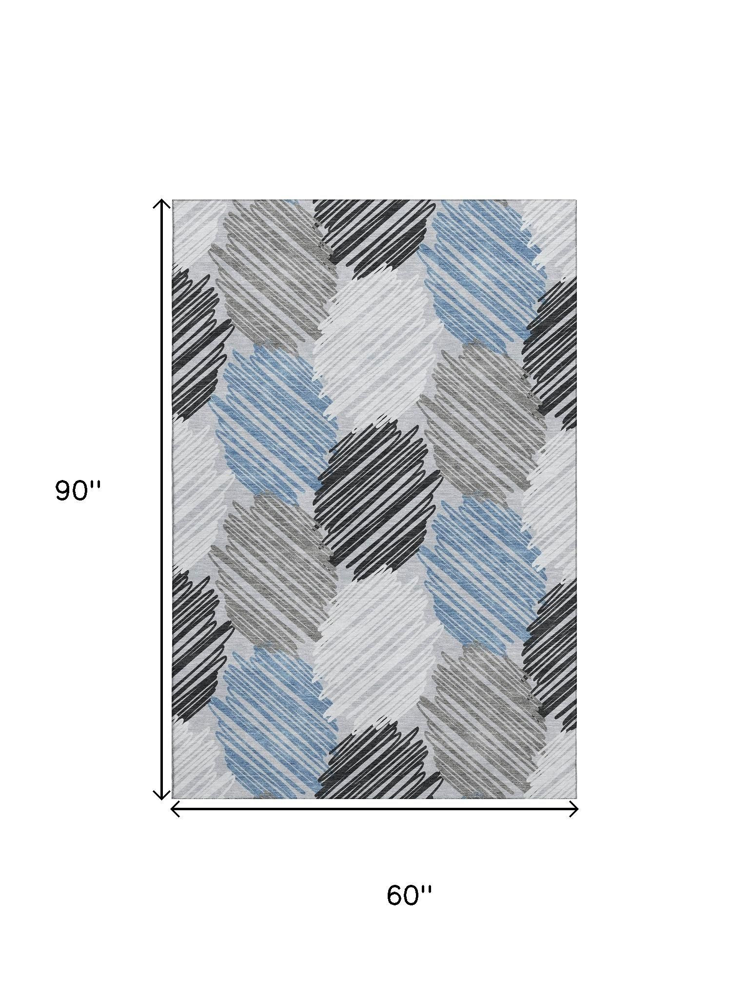 Set an inviting tone in your space with this 5-foot x 8-foot blue ivory and gray geometric washable area rug with uv protection. Ideal for spaces with kids and pets, this rug is stain resistant to help repel dirt and spilled liquids. Built to last, this rug crafted from polyester fibers is known for its durability and long lasting appeal. Rugs are a great way to showcase your style, hide imperfections, warm your home and reduce noise. This larger sized, transitional styled rug is ready to create a focal point or statement piece in your room. 60.00-inch h x 90.00-inch w x 0.39-inch d.