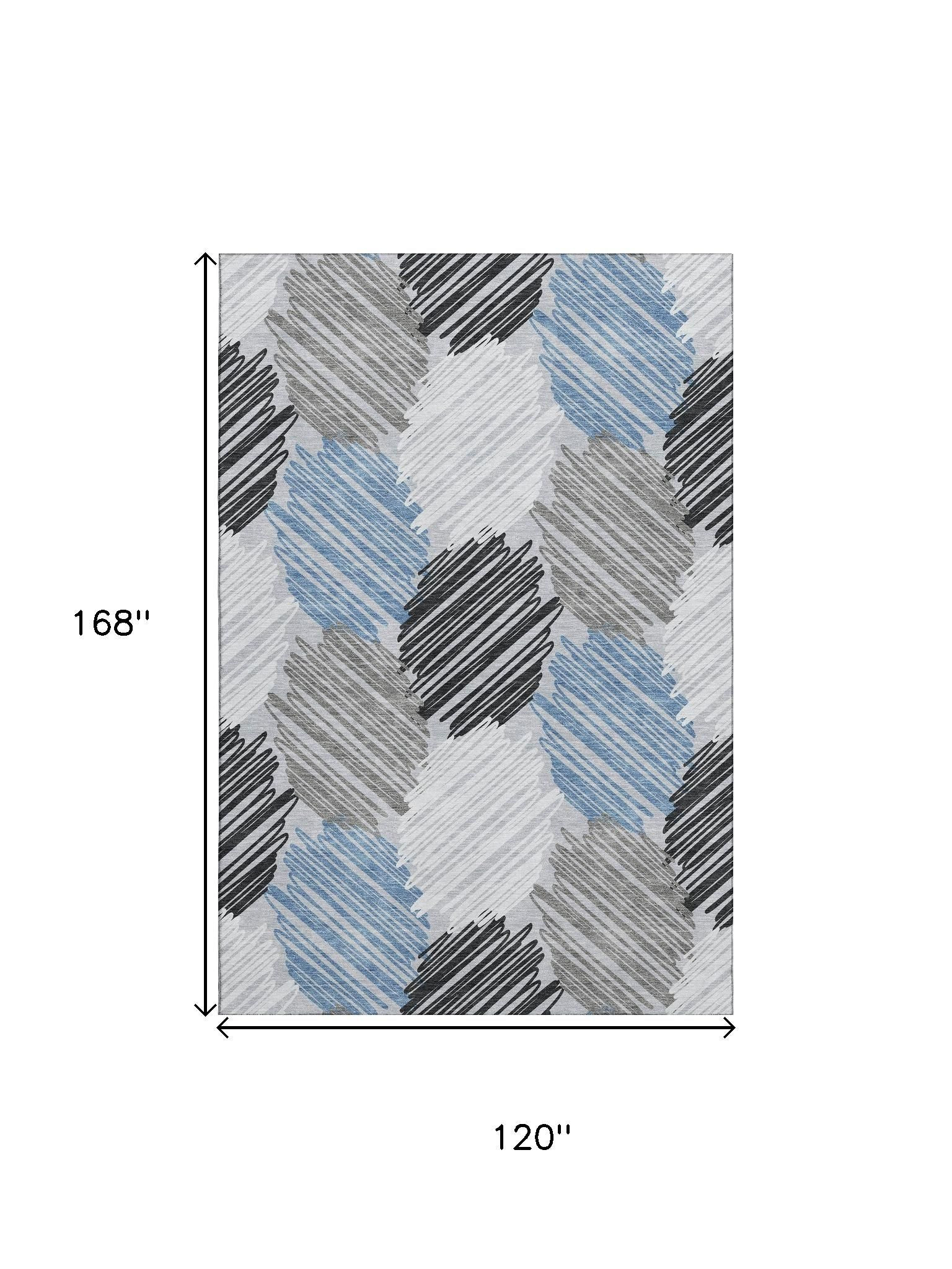 Set an inviting tone in your space with this 10-foot x 14-foot blue ivory and gray geometric washable area rug with uv protection. Ideal for spaces with kids and pets, this rug is stain resistant to help repel dirt and spilled liquids. Built to last, this rug crafted from polyester fibers is known for its durability and long lasting appeal. Rugs are a great way to showcase your style, hide imperfections, warm your home and reduce noise. This larger sized, transitional styled rug is ready to create a focal point or statement piece in your room. 120.00-inch h x 168.00-inch w x 0.39-inch d.