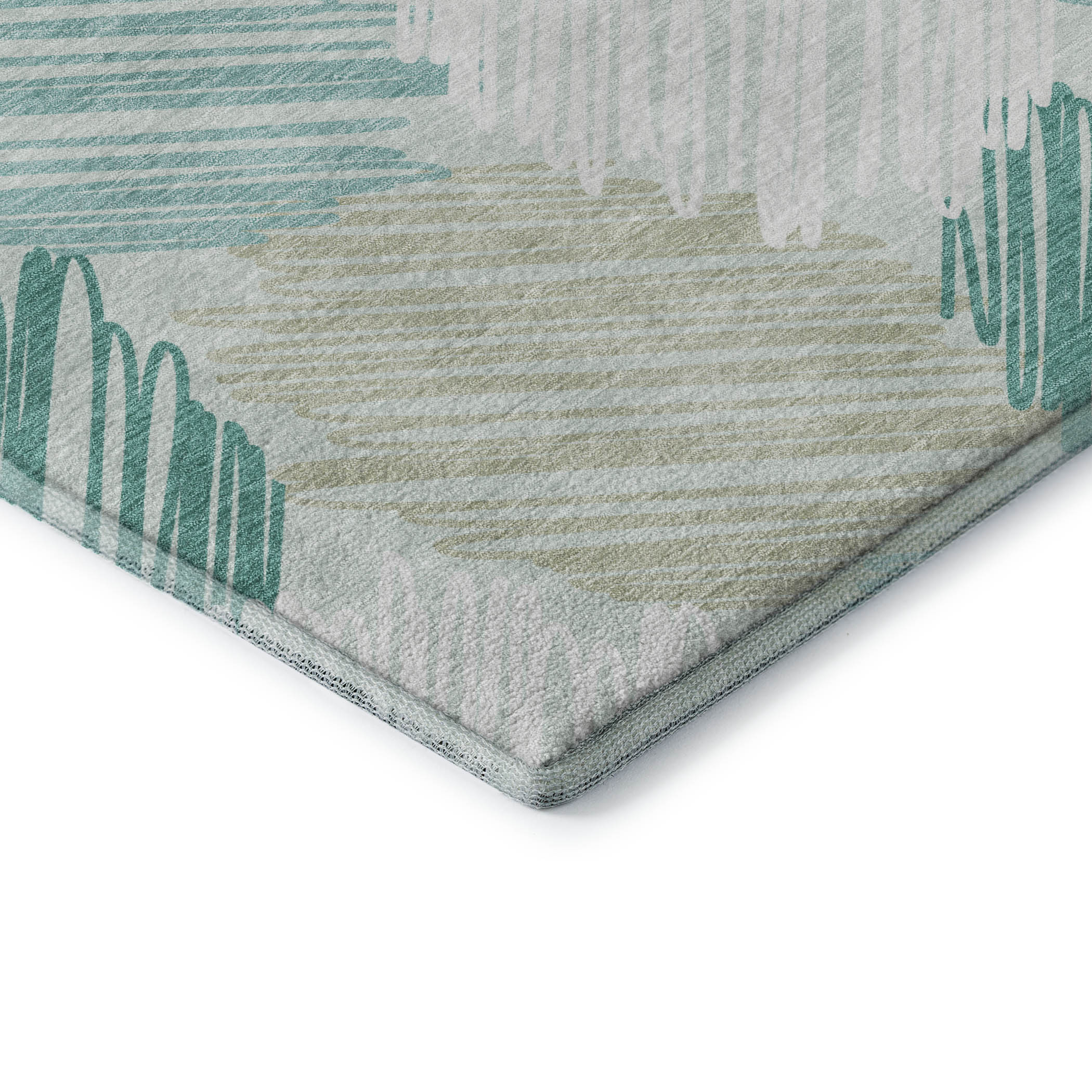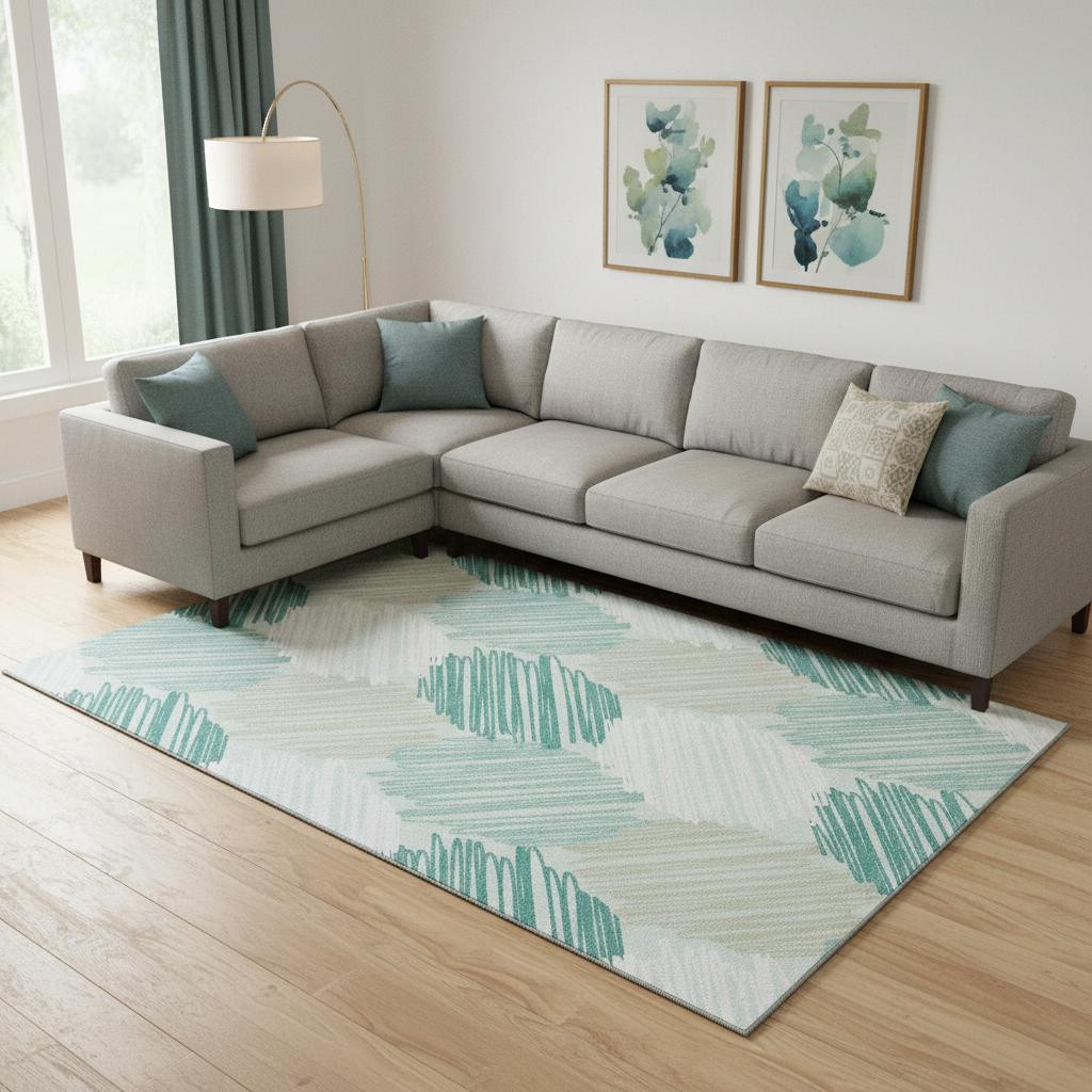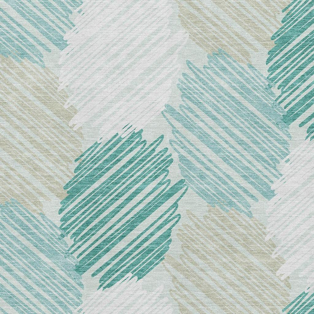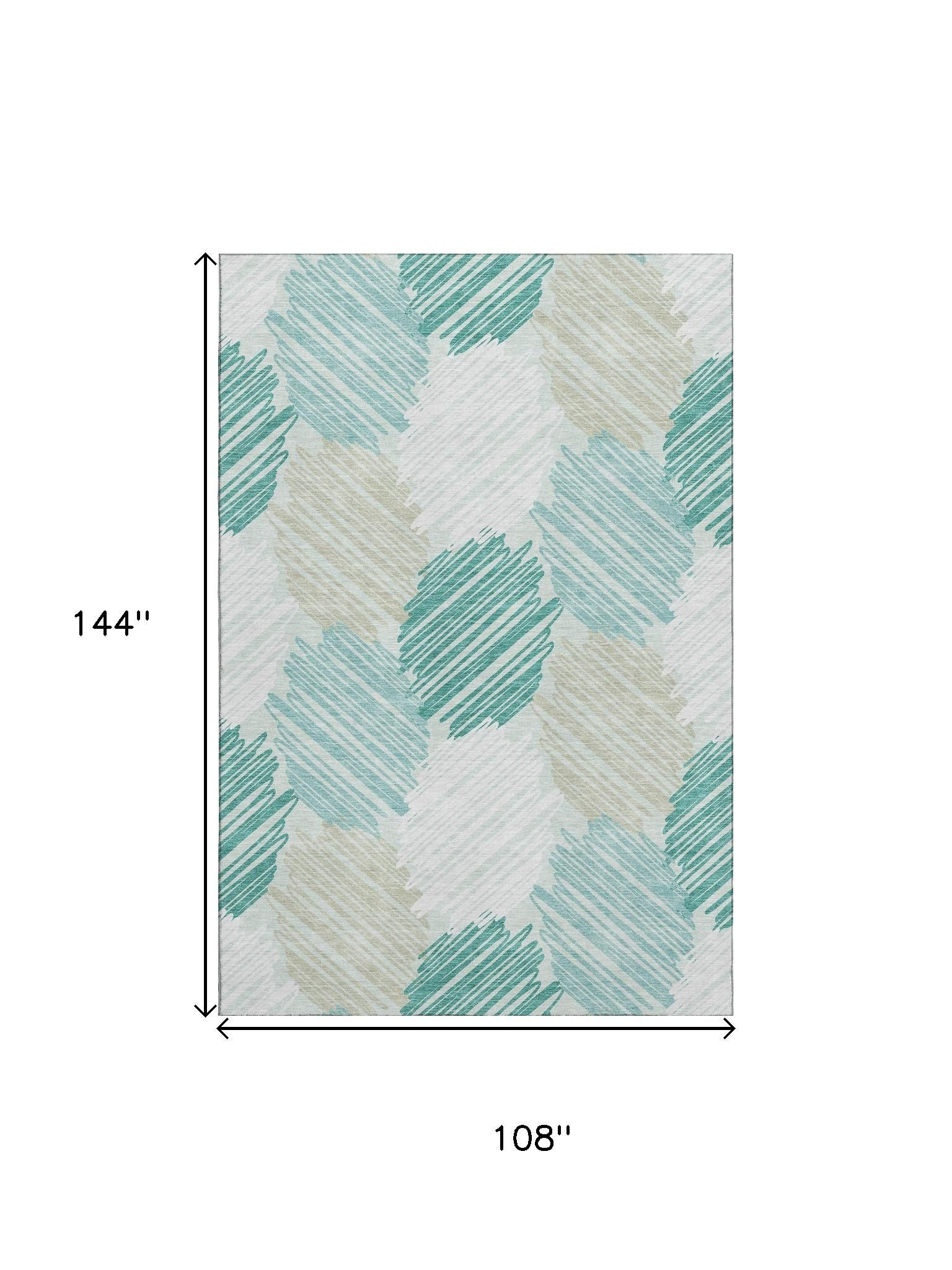 Add some artistry to your room with this 9-foot x 12-foot teal ivory and gray geometric washable area rug with uv protection. Ideal for spaces with kids and pets, this rug is stain resistant to help repel dirt and spilled liquids. Built to last, this rug crafted from polyester fibers is known for its durability and long lasting appeal. Rugs are a great way to showcase your style, hide imperfections, warm your home and reduce noise. This larger sized, transitional styled rug is ready to create a focal point or statement piece in your room. 108.00-inch h x 144.00-inch w x 0.39-inch d.