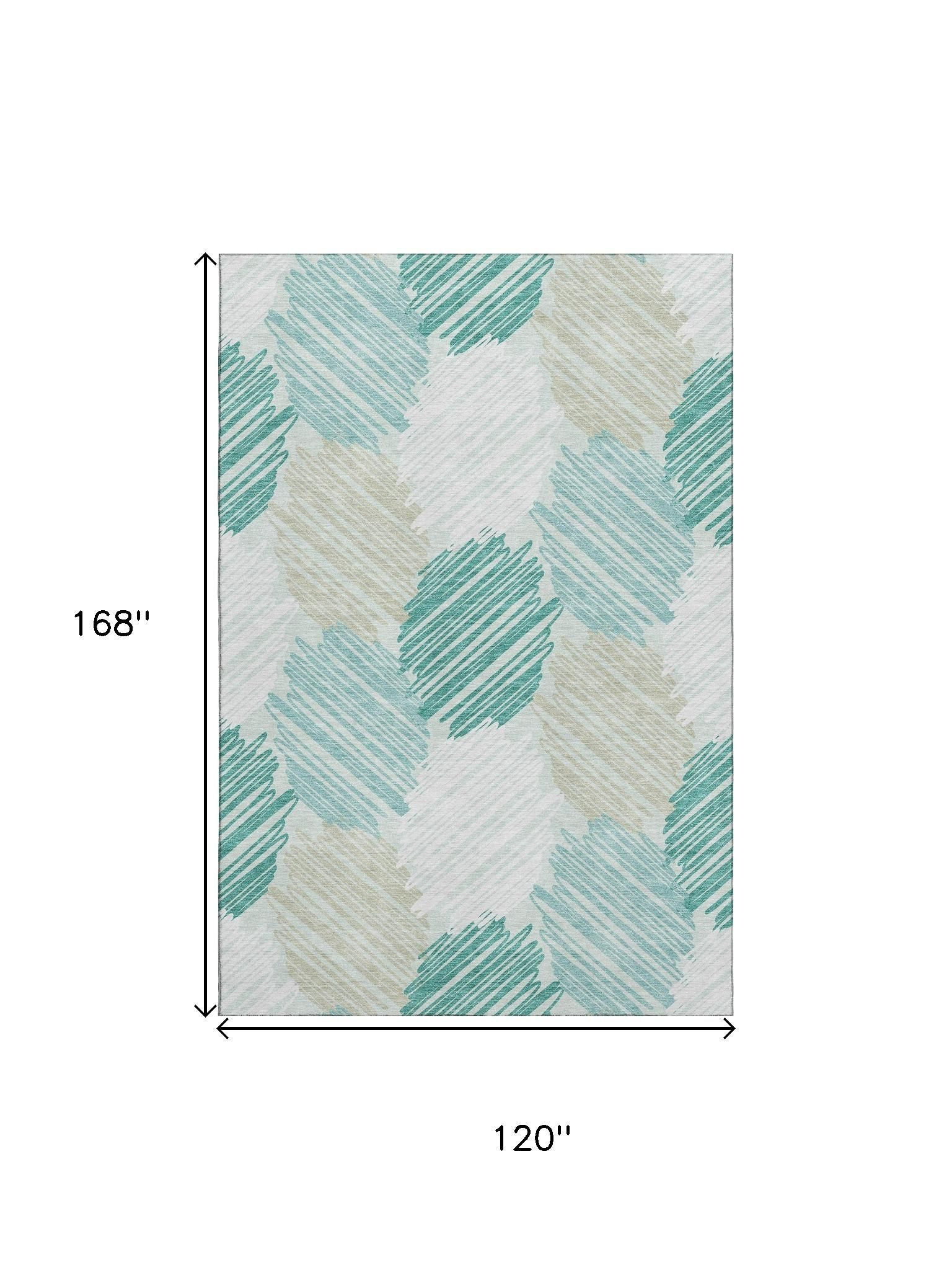 This 10-foot x 14-foot teal ivory and gray geometric washable area rug with uv protection, is a great way to add warmth to a room. Ideal for spaces with kids and pets, this rug is stain resistant to help repel dirt and spilled liquids. Built to last, this rug crafted from polyester fibers is known for its durability and long lasting appeal. Rugs are a great way to showcase your style, hide imperfections, warm your home and reduce noise. This larger sized, transitional styled rug is ready to create a focal point or statement piece in your room. 120.00-inch h x 168.00-inch w x 0.39-inch d.
