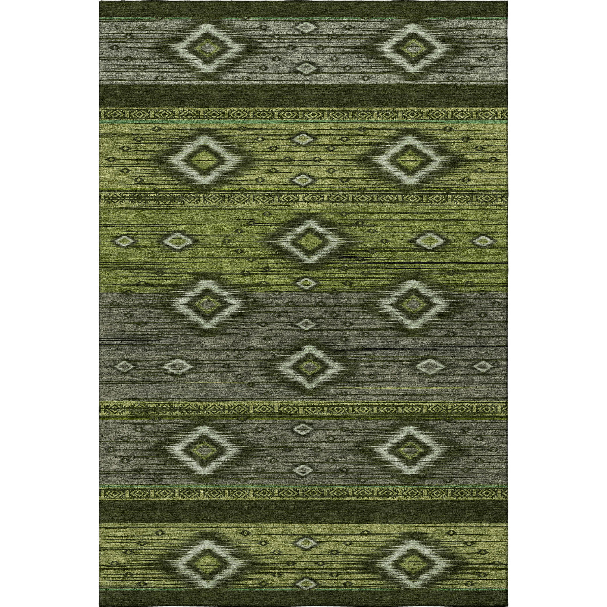 Set an inviting tone in your space with this 3-foot x 5-foot artichoke green and gray tribal washable area rug with uv protection. Ideal for spaces with kids and pets, this rug is stain resistant to help repel dirt and spilled liquids. Built to last, this rug crafted from polyester fibers is known for its durability and long lasting appeal. Rugs are a great way to showcase your style, hide imperfections, warm your home and reduce noise. This smaller sized, transitional styled rug is just what you need for your walkway, bedside, in front of door, cabinet, refrigerator, or chair. 36.00-inch h x 60.00-inch w x 0.39-inch d.