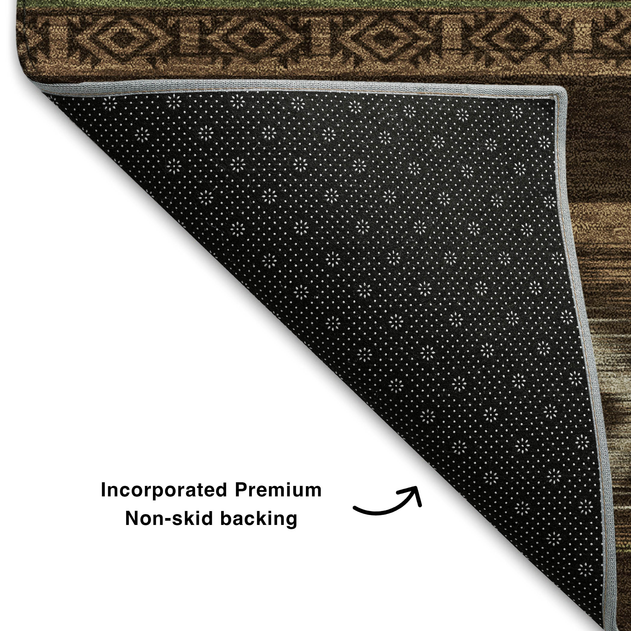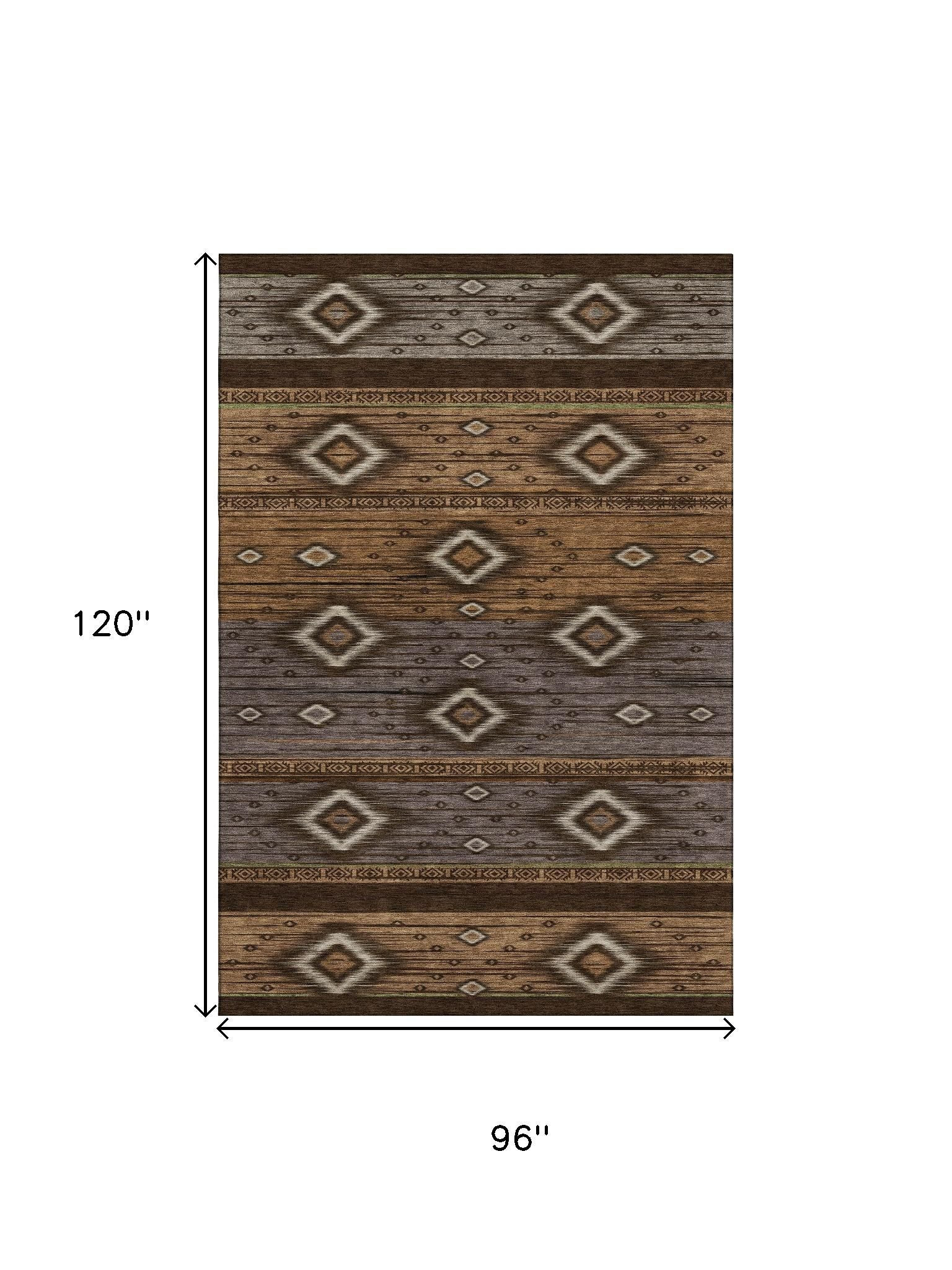 Add great coloration and comfortable texture to your space with this 8-foot x 10-foot chocolate and gray tribal washable area rug with uv protection. Ideal for spaces with kids and pets, this rug is stain resistant to help repel dirt and spilled liquids. Built to last, this rug crafted from polyester fibers is known for its durability and long lasting appeal. Rugs are a great way to showcase your style, hide imperfections, warm your home and reduce noise. This larger sized, transitional styled rug is ready to create a focal point or statement piece in your room. 96.00-inch h x 120.00-inch w x 0.39-inch d.