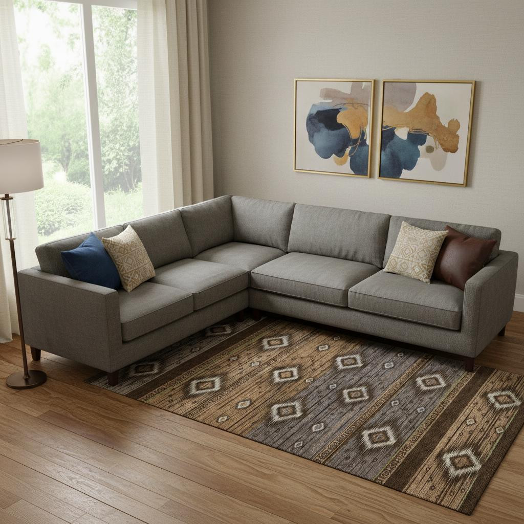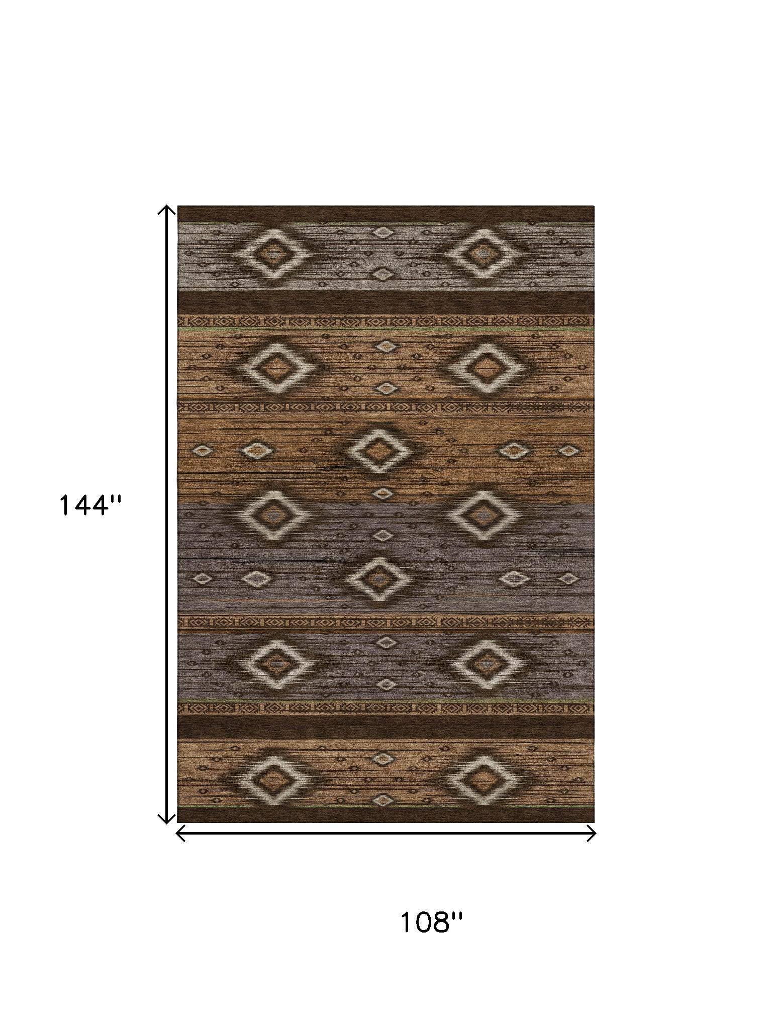 Set an inviting tone in your space with this 9-foot x 12-foot chocolate and gray tribal washable area rug with uv protection. Ideal for spaces with kids and pets, this rug is stain resistant to help repel dirt and spilled liquids. Built to last, this rug crafted from polyester fibers is known for its durability and long lasting appeal. Rugs are a great way to showcase your style, hide imperfections, warm your home and reduce noise. This larger sized, transitional styled rug is ready to create a focal point or statement piece in your room. 108.00-inch h x 144.00-inch w x 0.39-inch d.