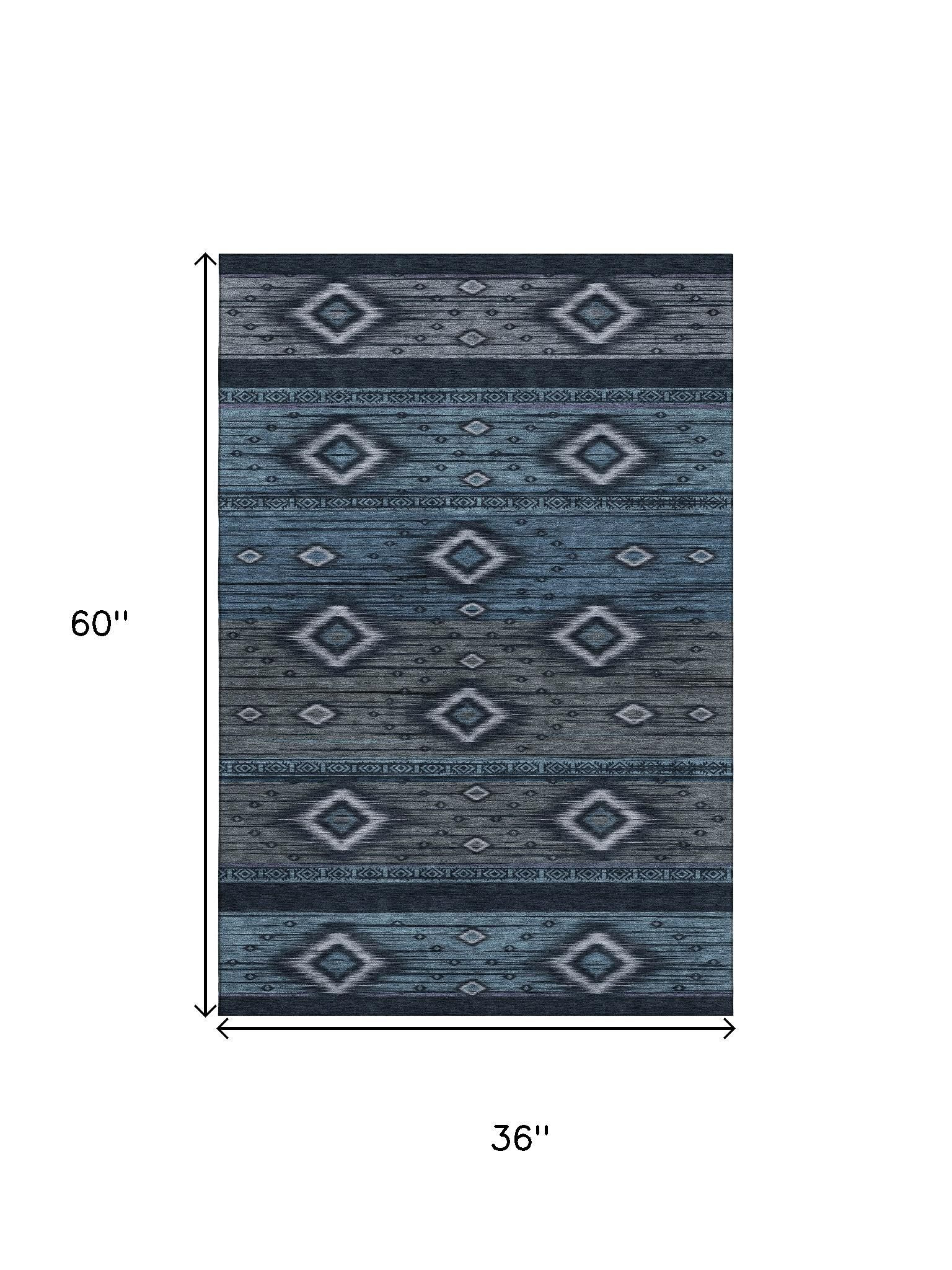 Add great coloration and comfortable texture to your space with this 3-foot x 5-foot teal and gray tribal washable area rug with uv protection. Ideal for spaces with kids and pets, this rug is stain resistant to help repel dirt and spilled liquids. Built to last, this rug crafted from polyester fibers is known for its durability and long lasting appeal. Rugs are a great way to showcase your style, hide imperfections, warm your home and reduce noise. This smaller sized, transitional styled rug is just what you need for your walkway, bedside, in front of door, cabinet, refrigerator, or chair. 36.00-inch h x 60.00-inch w x 0.39-inch d.