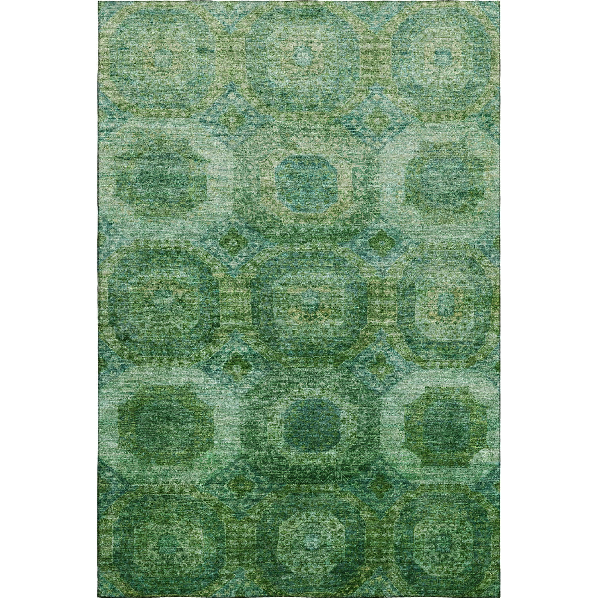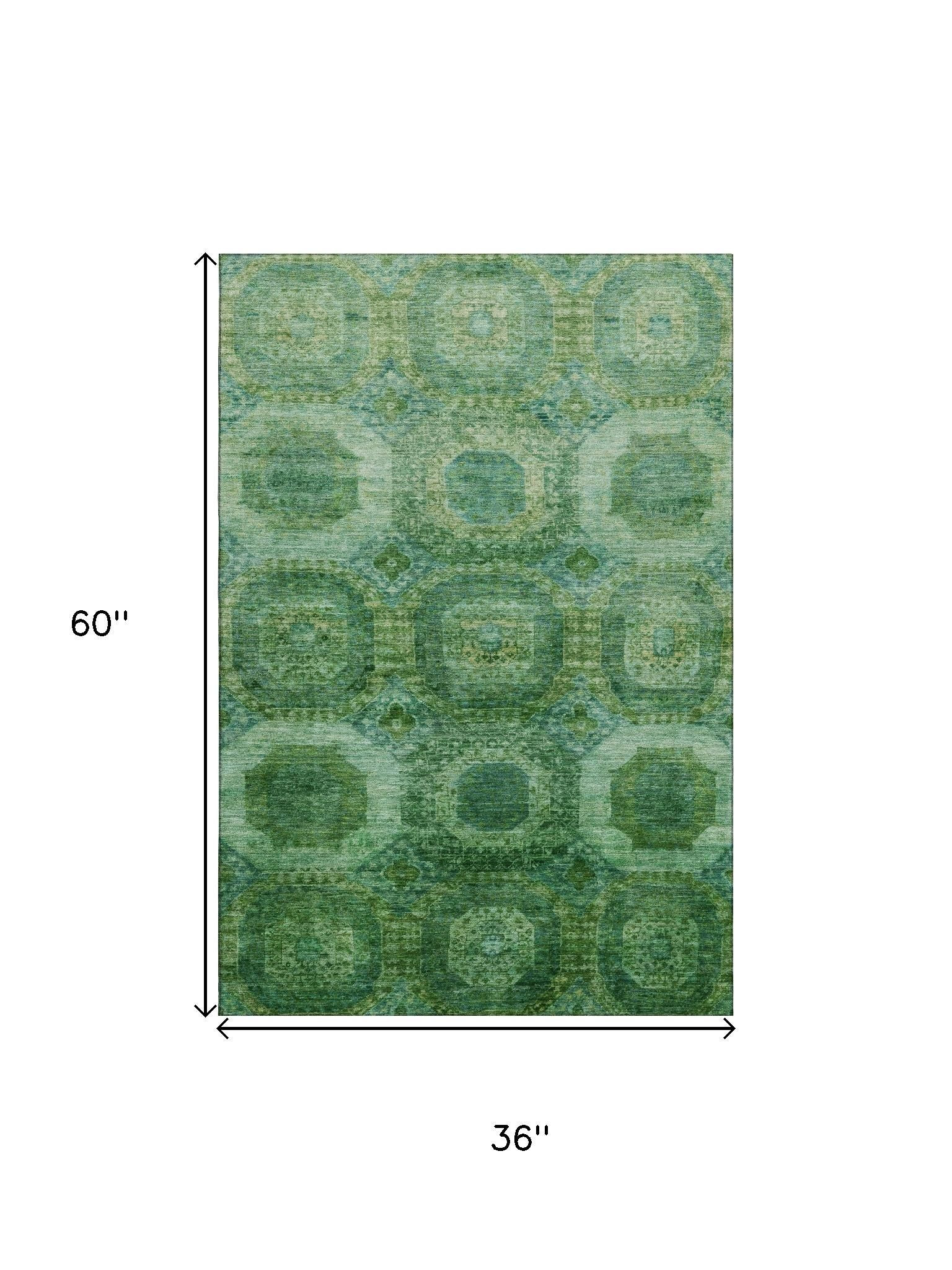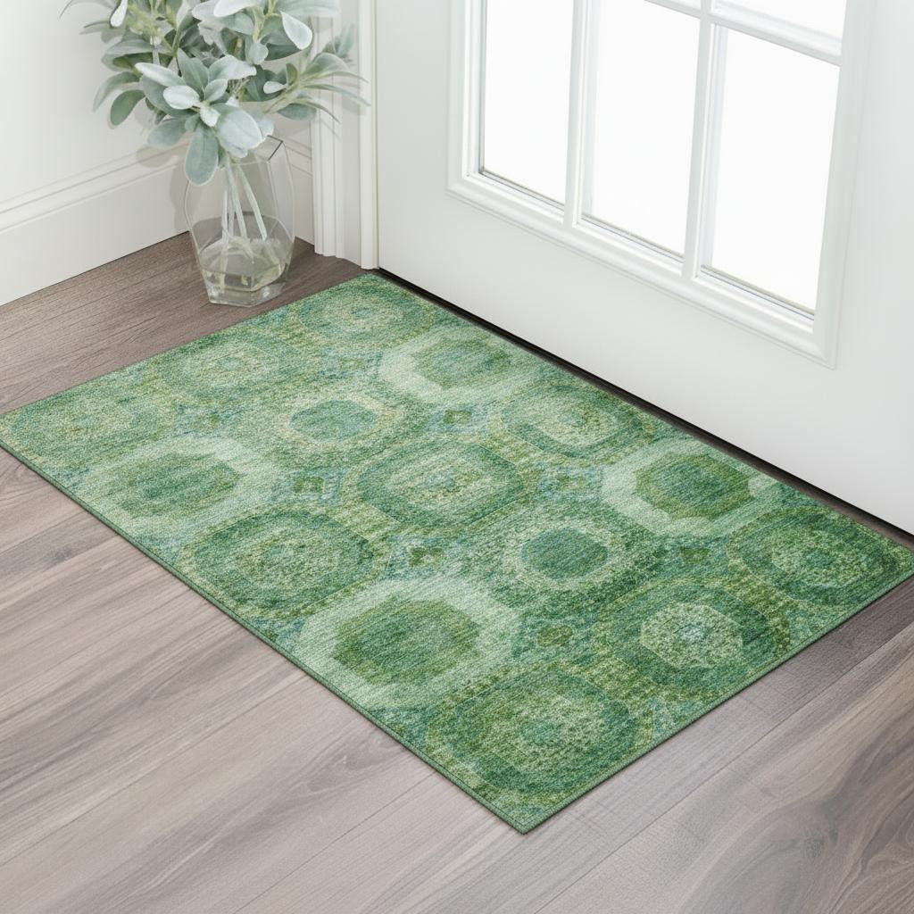 Set an inviting tone in your space with this 3-foot x 5-foot emerald and green abstract geometric washable area rug with uv protection. Ideal for spaces with kids and pets, this rug is stain resistant to help repel dirt and spilled liquids. Built to last, this rug crafted from polyester fibers is known for its durability and long lasting appeal. Rugs are a great way to showcase your style, hide imperfections, warm your home and reduce noise. This smaller sized, transitional styled rug is just what you need for your walkway, bedside, in front of door, cabinet, refrigerator, or chair. 36.00-inch h x 60.00-inch w x 0.39-inch d.