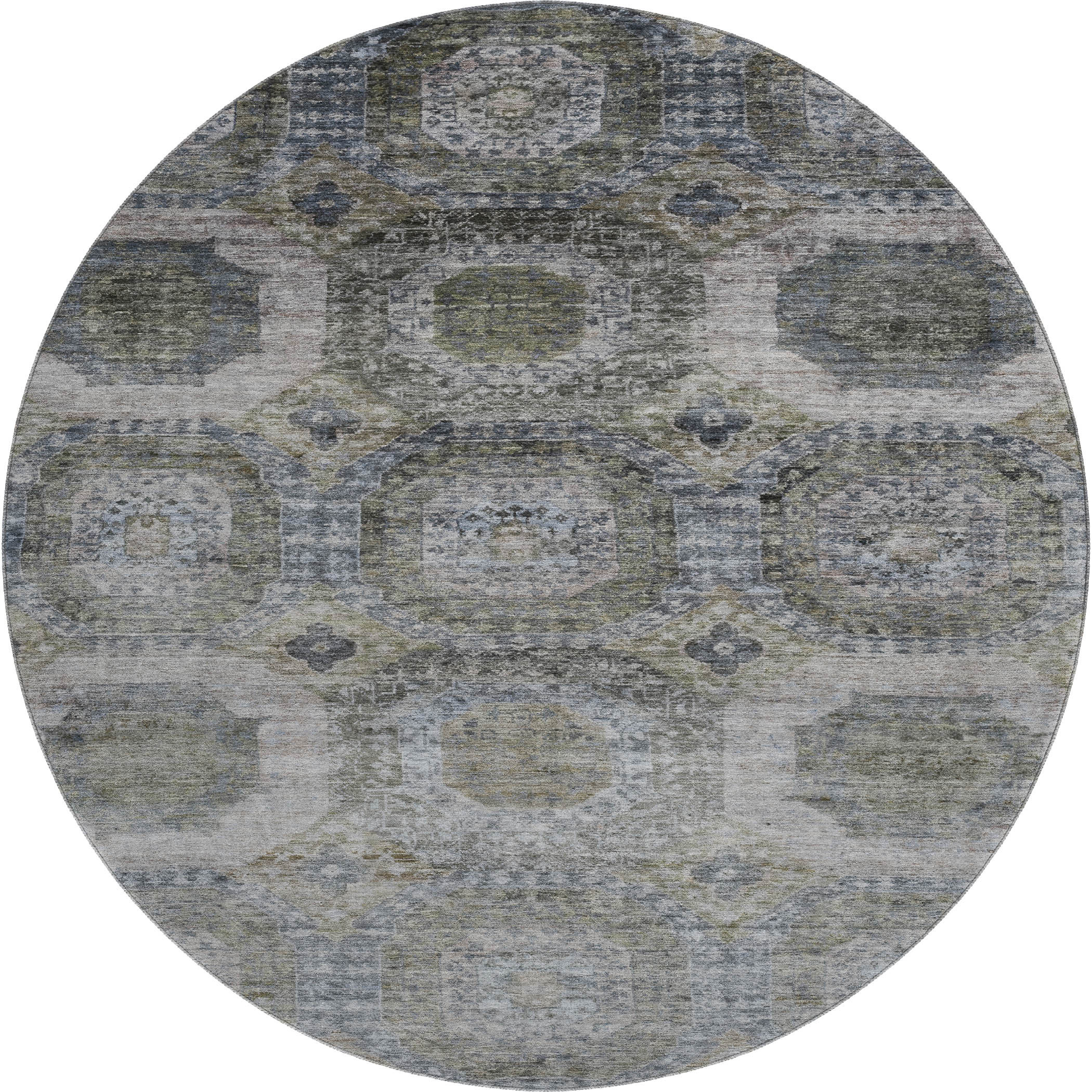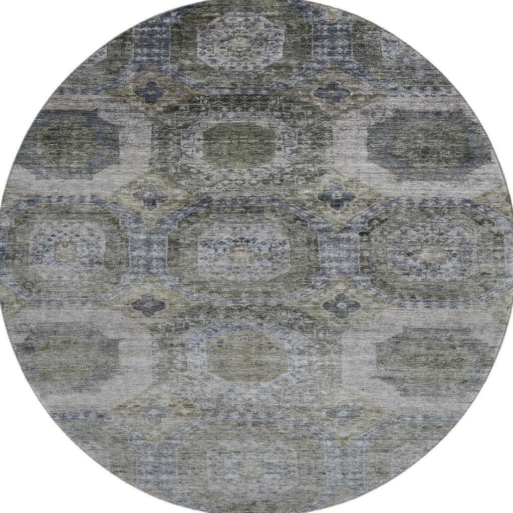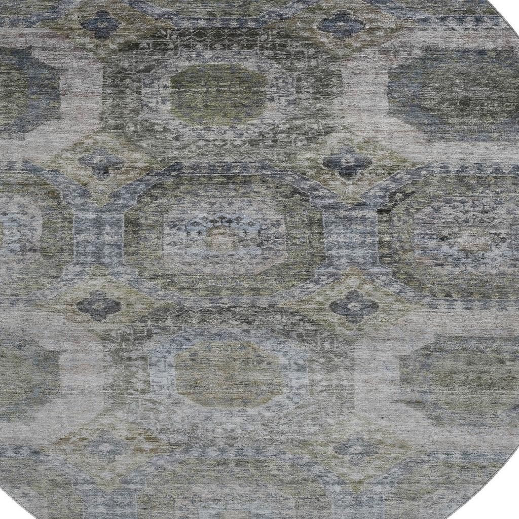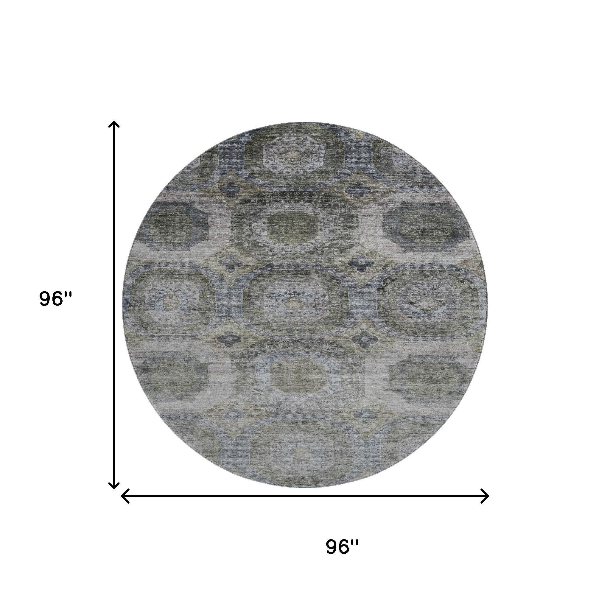 This 8-foot coffee and gray abstract geometric washable round rug with uv protection, is a great way to add warmth to a room. Ideal for spaces with kids and pets, this rug is stain resistant to help repel dirt and spilled liquids. Built to last, this rug crafted from polyester fibers is known for its durability and long lasting appeal. Rugs are a great way to showcase your style, hide imperfections, warm your home and reduce noise. This larger sized, transitional styled rug is ready to create a focal point or statement piece in your room. 96.00-inch h x 96.00-inch w x 0.39-inch d.