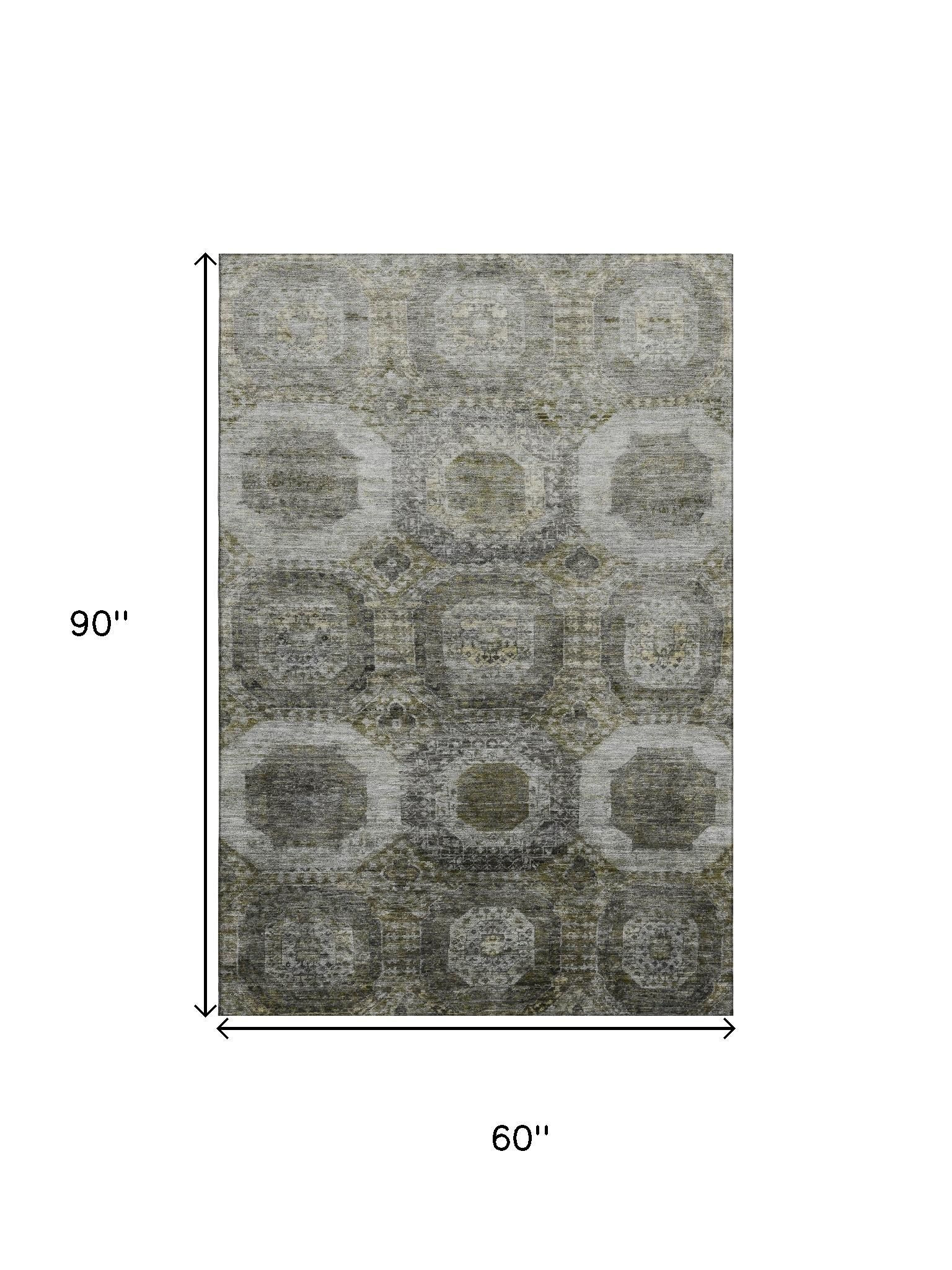 Add great coloration and comfortable texture to your space with this 5-foot x 8-foot pewter gray and beige abstract geometric washable area rug with uv protection. Ideal for spaces with kids and pets, this rug is stain resistant to help repel dirt and spilled liquids. Built to last, this rug crafted from polyester fibers is known for its durability and long lasting appeal. Rugs are a great way to showcase your style, hide imperfections, warm your home and reduce noise. This larger sized, transitional styled rug is ready to create a focal point or statement piece in your room. 60.00-inch h x 90.00-inch w x 0.39-inch d.