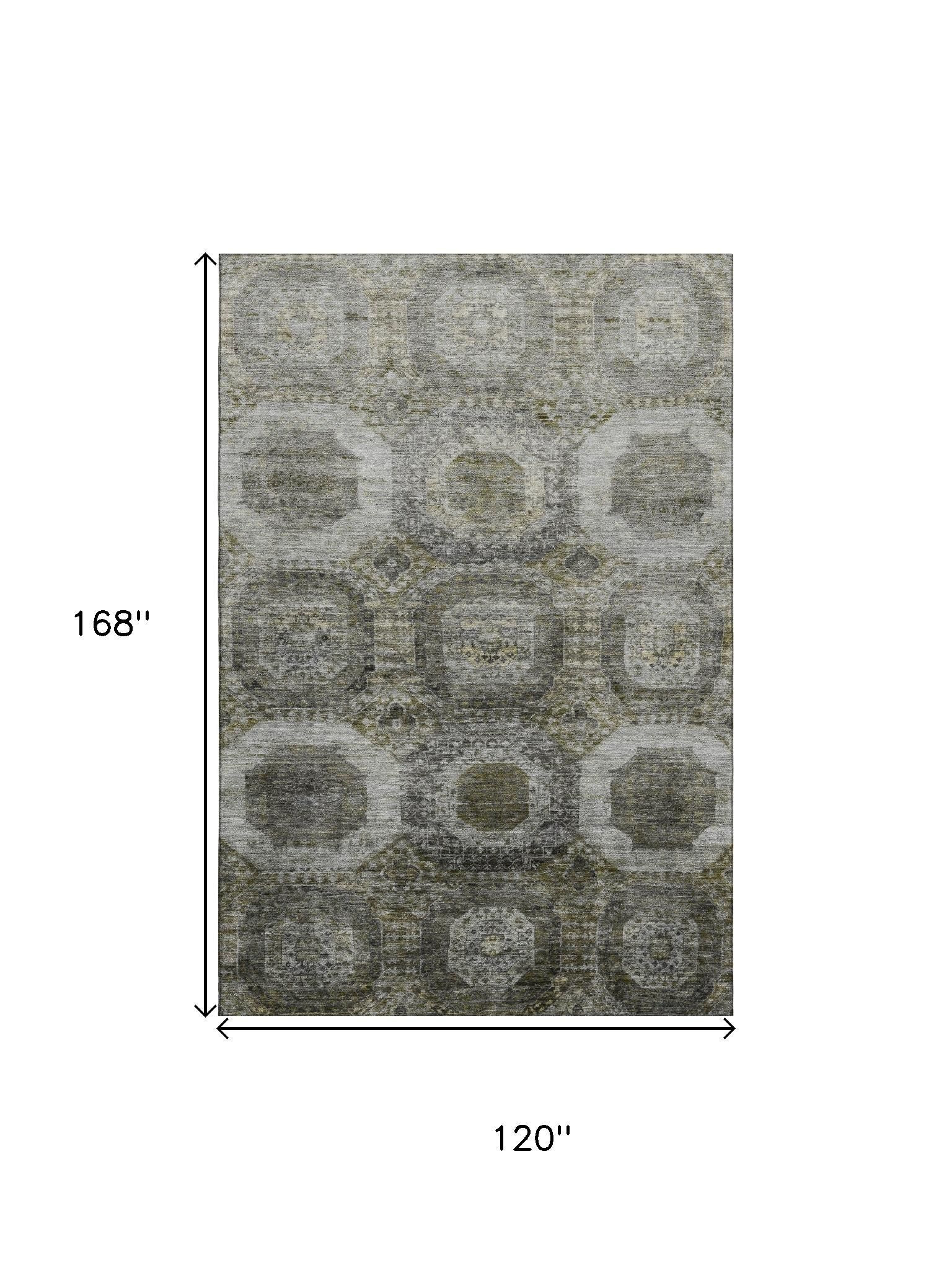 Add some artistry to your room with this 10-foot x 14-foot pewter gray and beige abstract geometric washable area rug with uv protection. Ideal for spaces with kids and pets, this rug is stain resistant to help repel dirt and spilled liquids. Built to last, this rug crafted from polyester fibers is known for its durability and long lasting appeal. Rugs are a great way to showcase your style, hide imperfections, warm your home and reduce noise. This larger sized, transitional styled rug is ready to create a focal point or statement piece in your room. 120.00-inch h x 168.00-inch w x 0.39-inch d.