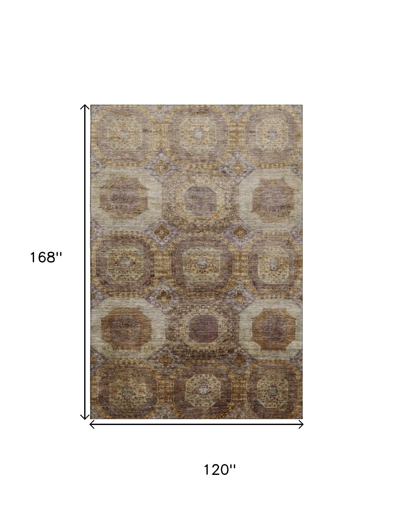 Set an inviting tone in your space with this 10-foot x 14-foot rust brown and beige abstract geometric washable area rug with uv protection. Ideal for spaces with kids and pets, this rug is stain resistant to help repel dirt and spilled liquids. Built to last, this rug crafted from polyester fibers is known for its durability and long lasting appeal. Rugs are a great way to showcase your style, hide imperfections, warm your home and reduce noise. This larger sized, transitional styled rug is ready to create a focal point or statement piece in your room. 120.00-inch h x 168.00-inch w x 0.39-inch d.