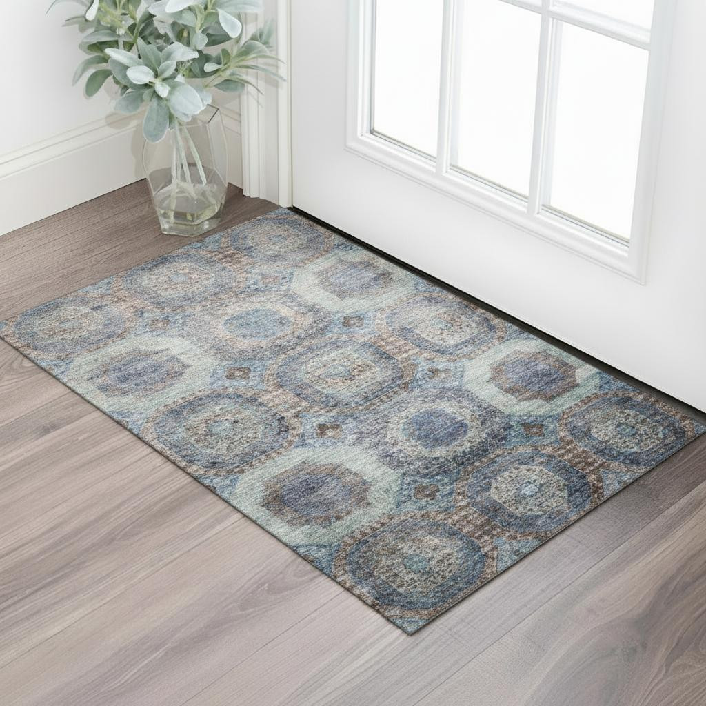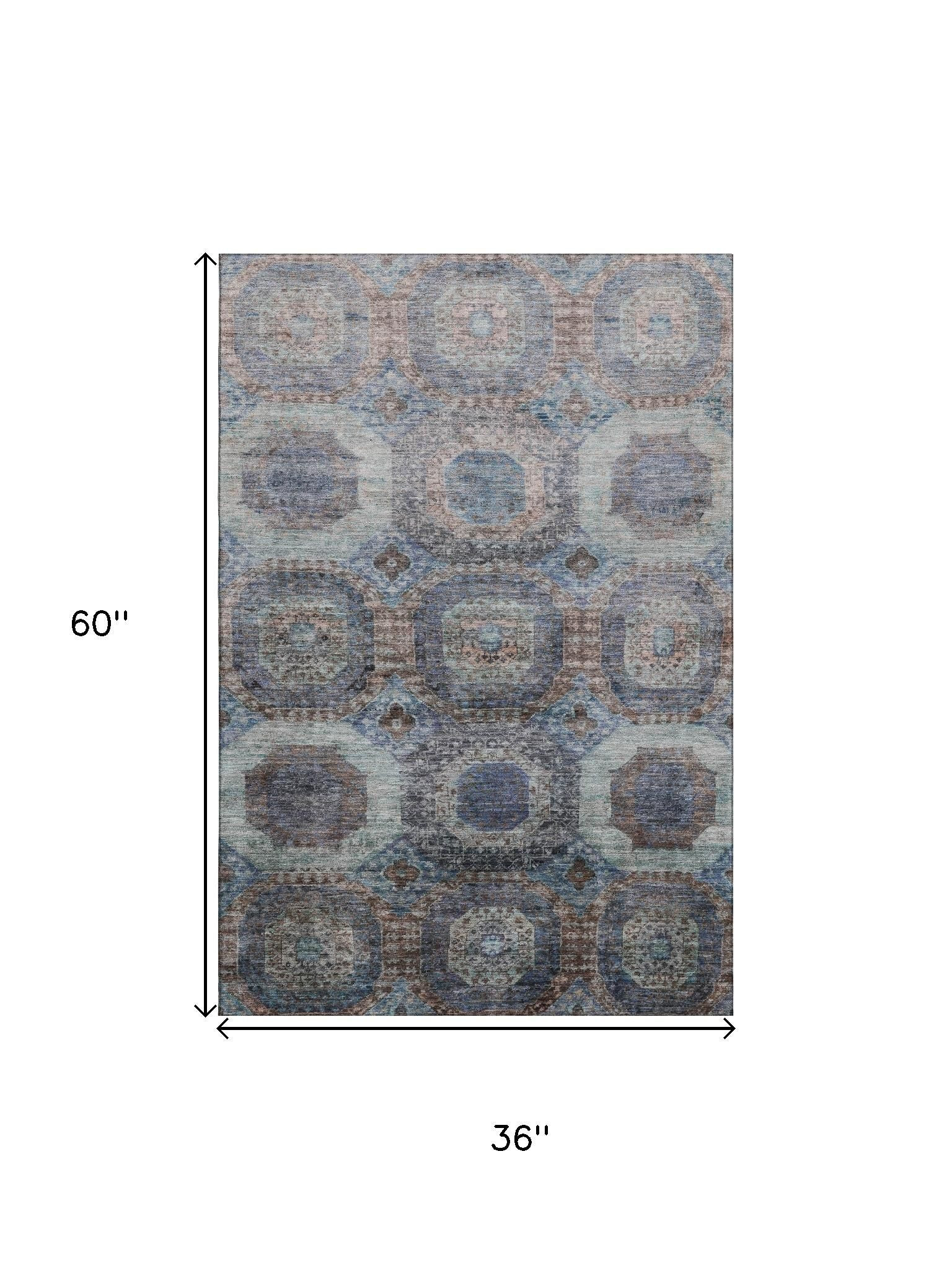 Add some artistry to your room with this 3-foot x 5-foot teal gray and blue abstract geometric washable area rug with uv protection. Ideal for spaces with kids and pets, this rug is stain resistant to help repel dirt and spilled liquids. Built to last, this rug crafted from polyester fibers is known for its durability and long lasting appeal. Rugs are a great way to showcase your style, hide imperfections, warm your home and reduce noise. This smaller sized, transitional styled rug is just what you need for your walkway, bedside, in front of door, cabinet, refrigerator, or chair. 36.00-inch h x 60.00-inch w x 0.39-inch d.