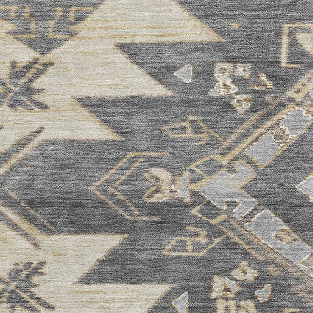 This 5-foot x 8-foot beige charcoal and gray tribal washable area rug with uv protection, is a great way to add warmth to a room. Ideal for spaces with kids and pets, this rug is stain resistant to help repel dirt and spilled liquids. Built to last, this rug crafted from polyester fibers is known for its durability and long lasting appeal. Rugs are a great way to showcase your style, hide imperfections, warm your home and reduce noise. This larger sized, transitional styled rug is ready to create a focal point or statement piece in your room. 60.00-inch h x 90.00-inch w x 0.39-inch d.
