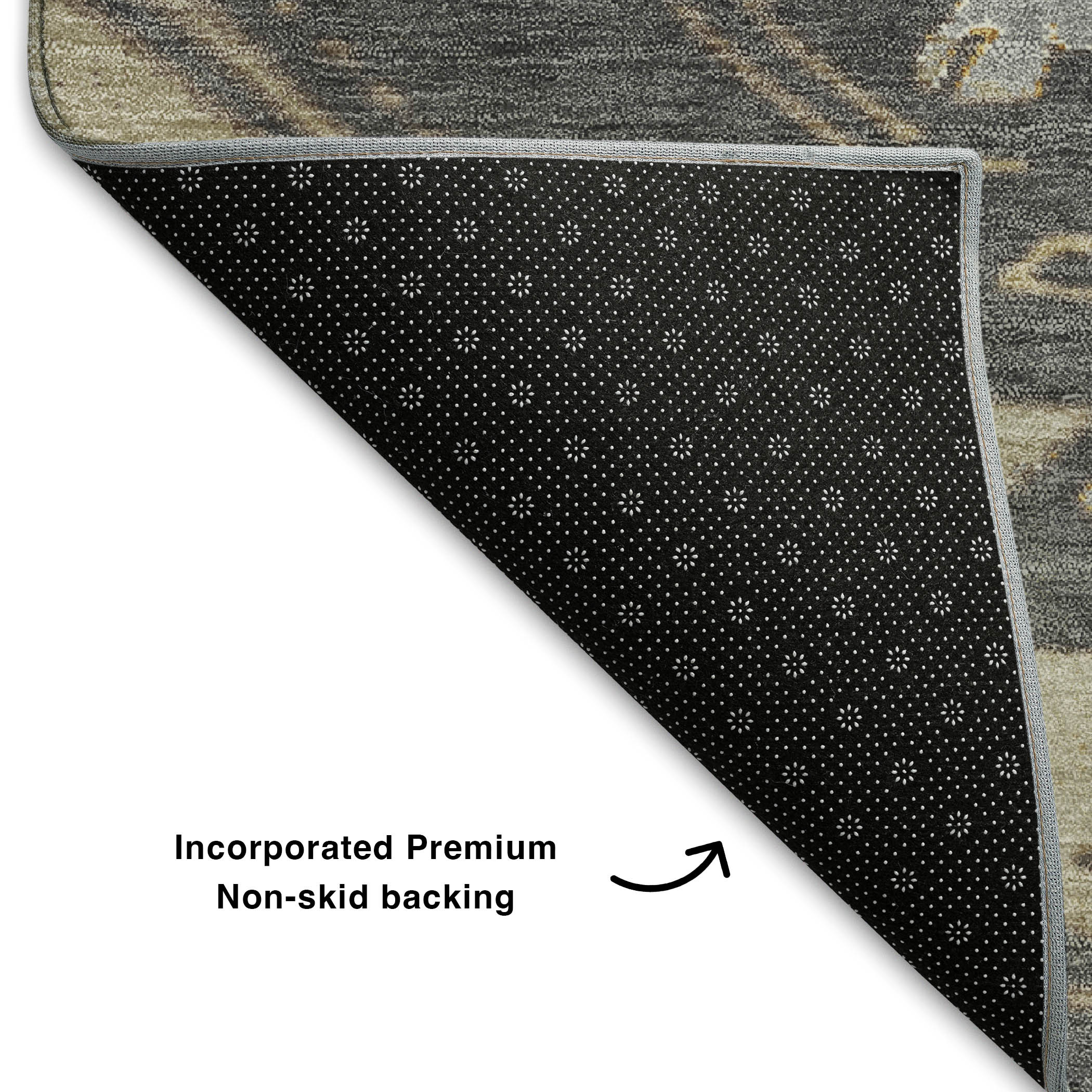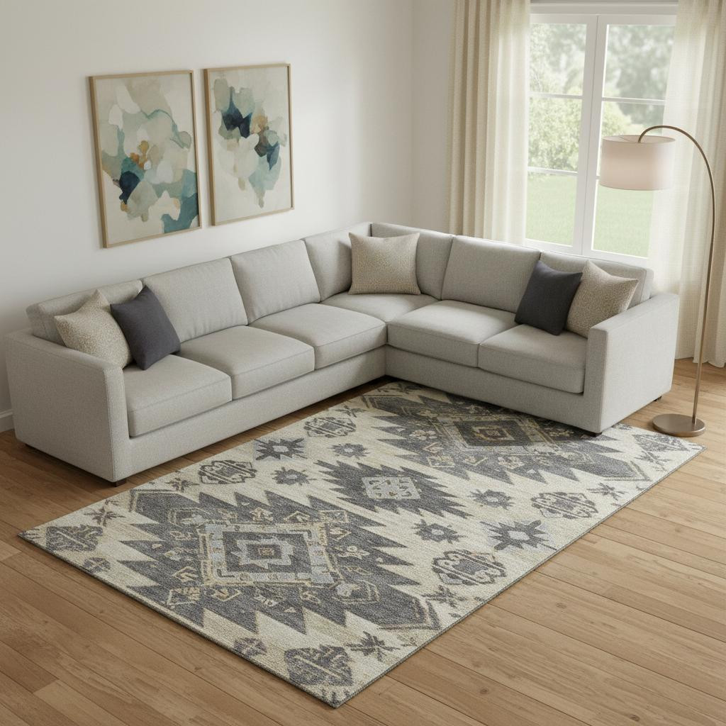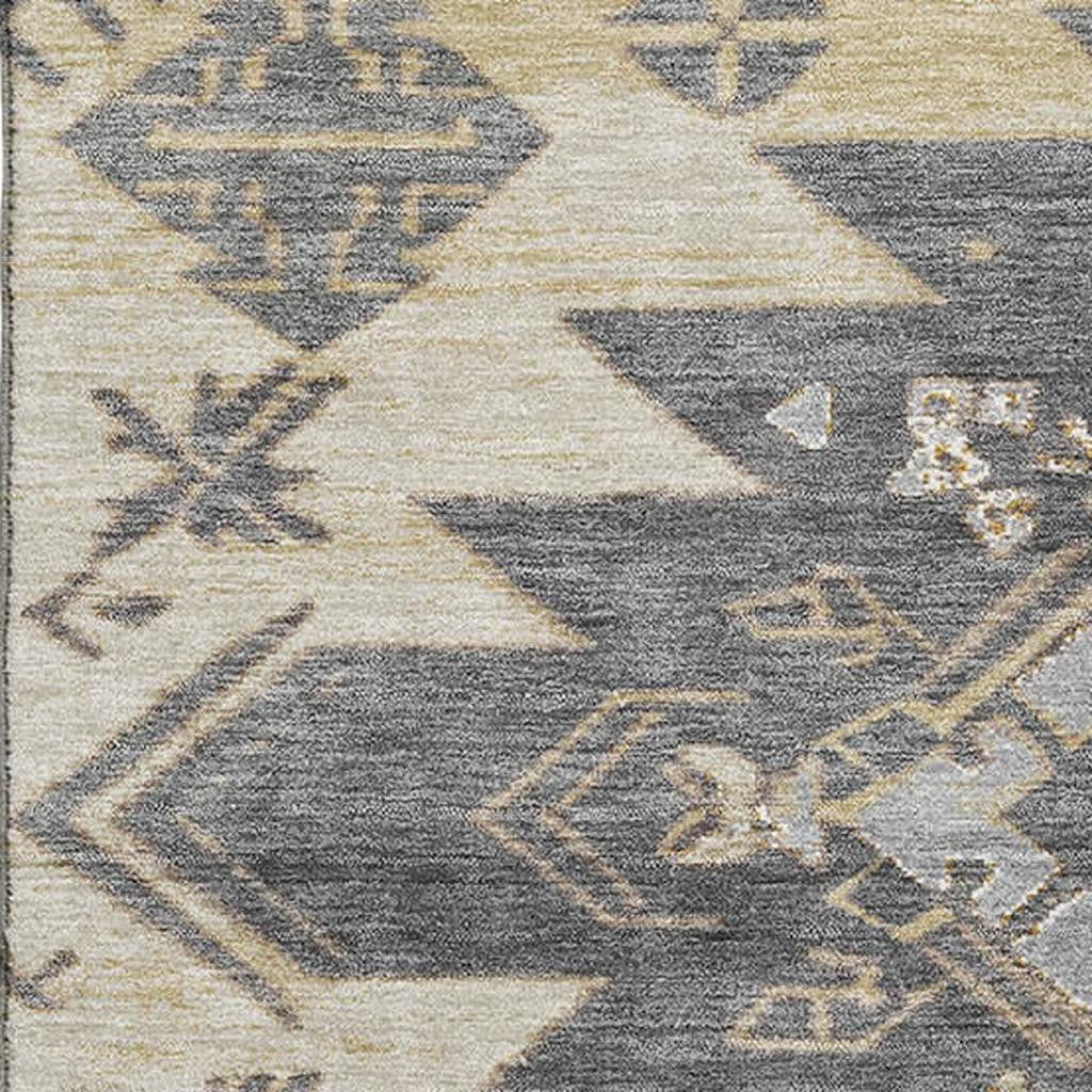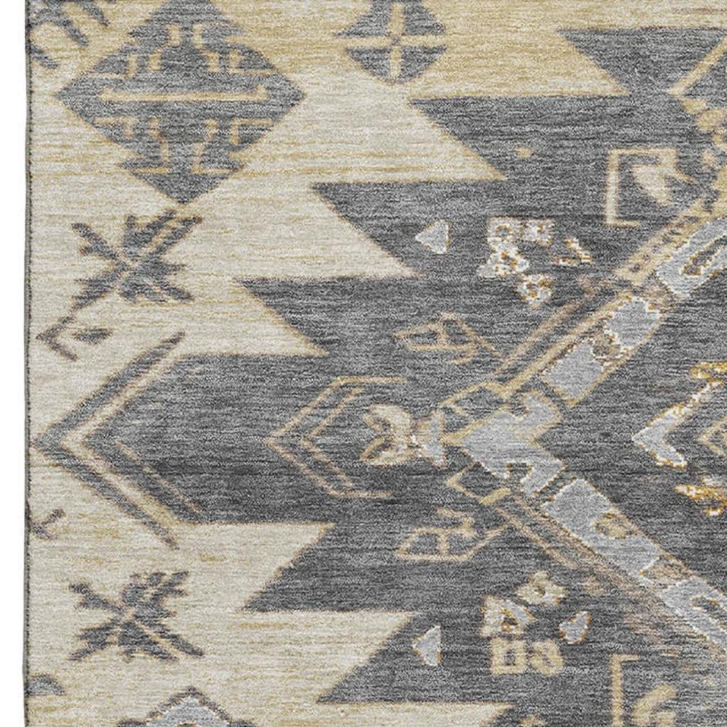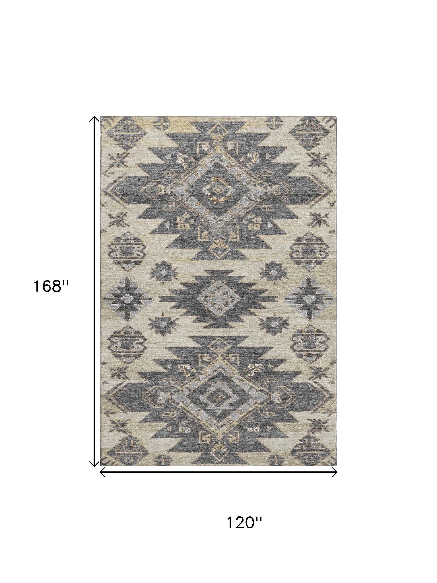 Add some artistry to your room with this 10-foot x 14-foot beige charcoal and gray tribal washable area rug with uv protection. Ideal for spaces with kids and pets, this rug is stain resistant to help repel dirt and spilled liquids. Built to last, this rug crafted from polyester fibers is known for its durability and long lasting appeal. Rugs are a great way to showcase your style, hide imperfections, warm your home and reduce noise. This larger sized, transitional styled rug is ready to create a focal point or statement piece in your room. 120.00-inch h x 168.00-inch w x 0.39-inch d.