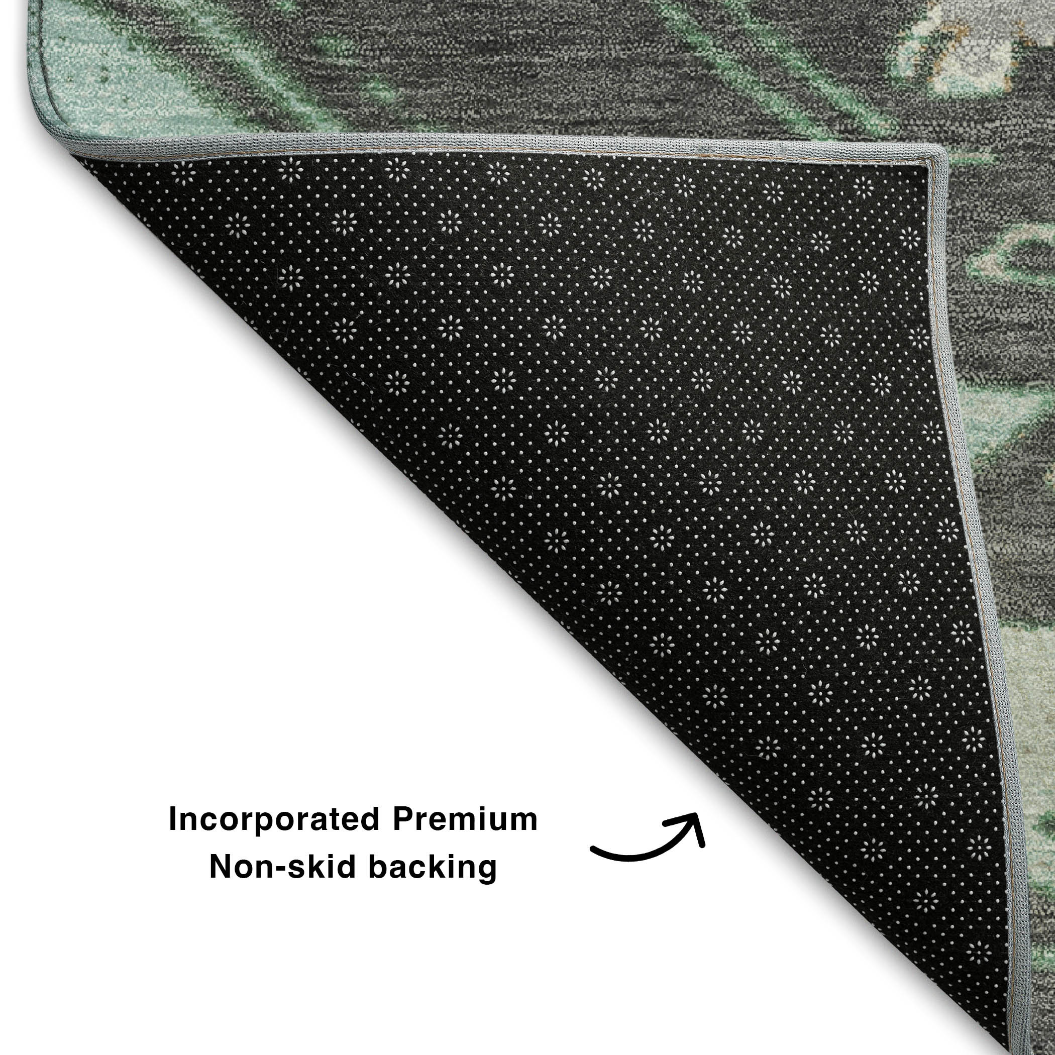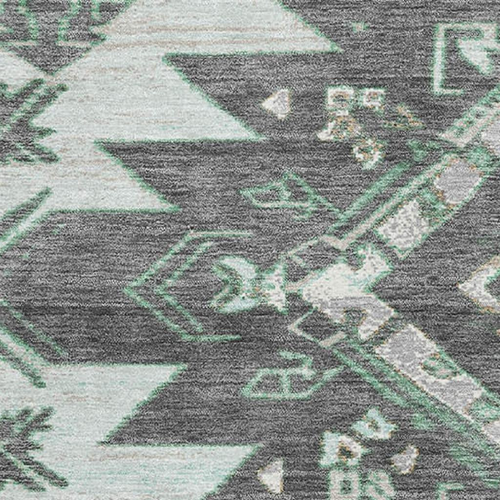 Add great coloration and comfortable texture to your space with this 5-foot x 8-foot mint green charcoal and gray tribal washable area rug with uv protection. Ideal for spaces with kids and pets, this rug is stain resistant to help repel dirt and spilled liquids. Built to last, this rug crafted from polyester fibers is known for its durability and long lasting appeal. Rugs are a great way to showcase your style, hide imperfections, warm your home and reduce noise. This larger sized, transitional styled rug is ready to create a focal point or statement piece in your room. 60.00-inch h x 90.00-inch w x 0.39-inch d.