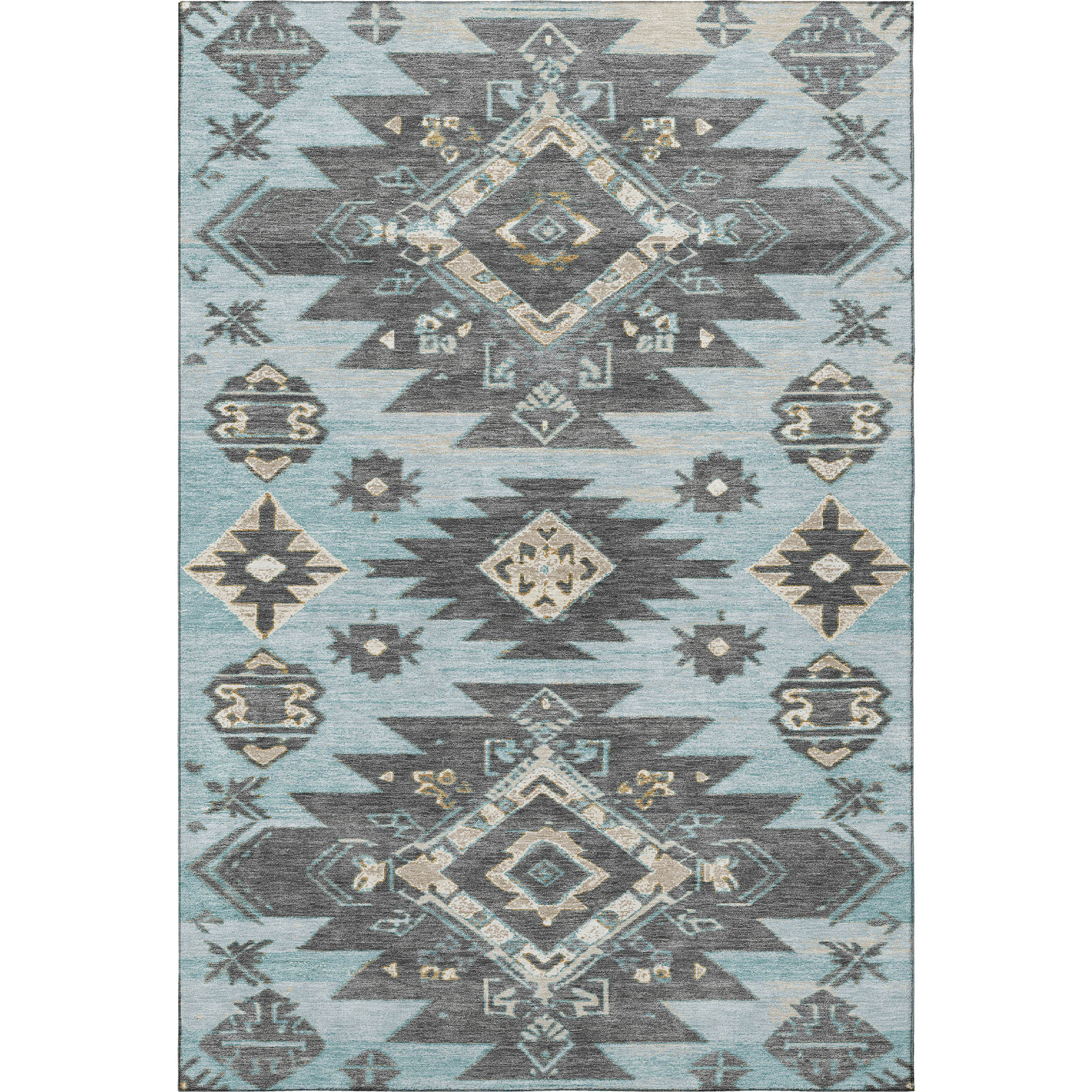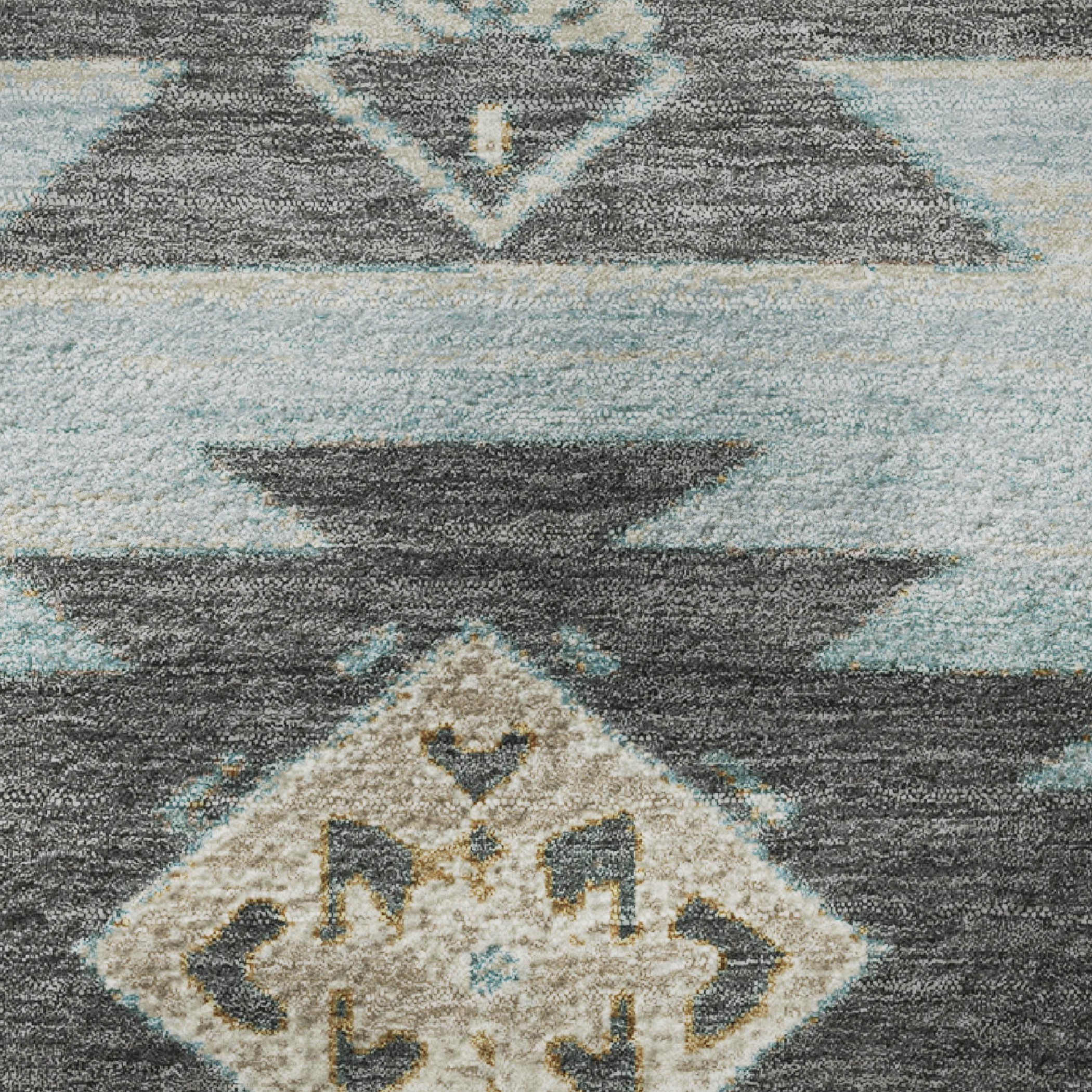 Set an inviting tone in your space with this 10-foot x 14-foot teal charcoal and gray tribal washable area rug with uv protection. Ideal for spaces with kids and pets, this rug is stain resistant to help repel dirt and spilled liquids. Built to last, this rug crafted from polyester fibers is known for its durability and long lasting appeal. Rugs are a great way to showcase your style, hide imperfections, warm your home and reduce noise. This larger sized, transitional styled rug is ready to create a focal point or statement piece in your room. 120.00-inch h x 168.00-inch w x 0.39-inch d.