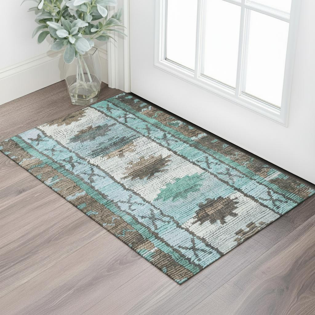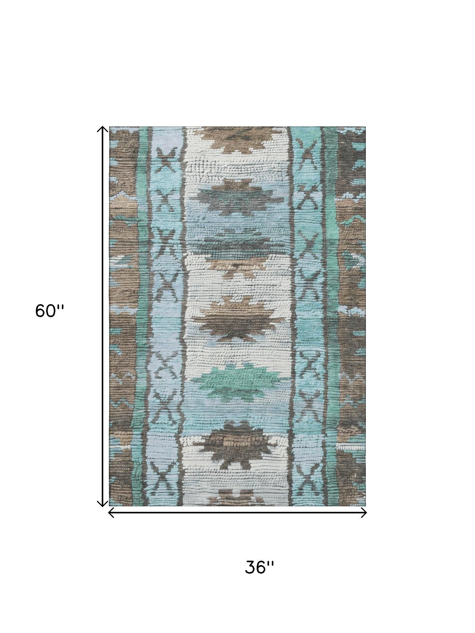 Set an inviting tone in your space with this 3-foot x 5-foot brown teal and ivory tribal washable area rug with uv protection. Ideal for spaces with kids and pets, this rug is stain resistant to help repel dirt and spilled liquids. Built to last, this rug crafted from polyester fibers is known for its durability and long lasting appeal. Rugs are a great way to showcase your style, hide imperfections, warm your home and reduce noise. This smaller sized, transitional styled rug is just what you need for your walkway, bedside, in front of door, cabinet, refrigerator, or chair. 36.00-inch h x 60.00-inch w x 0.39-inch d.