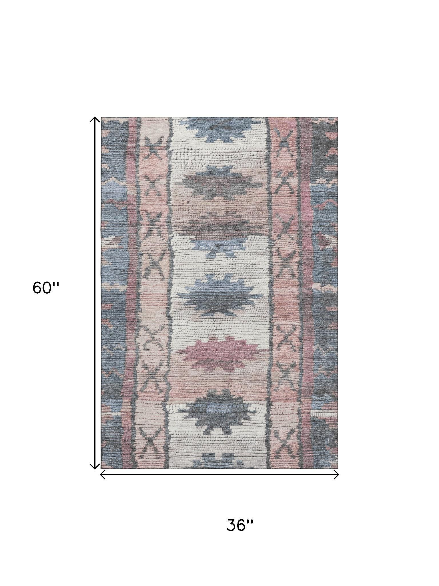 Set an inviting tone in your space with this 3-foot x 5-foot denim blue blush and ivory tribal washable area rug with uv protection. Ideal for spaces with kids and pets, this rug is stain resistant to help repel dirt and spilled liquids. Built to last, this rug crafted from polyester fibers is known for its durability and long lasting appeal. Rugs are a great way to showcase your style, hide imperfections, warm your home and reduce noise. This smaller sized, transitional styled rug is just what you need for your walkway, bedside, in front of door, cabinet, refrigerator, or chair. 36.00-inch h x 60.00-inch w x 0.39-inch d.