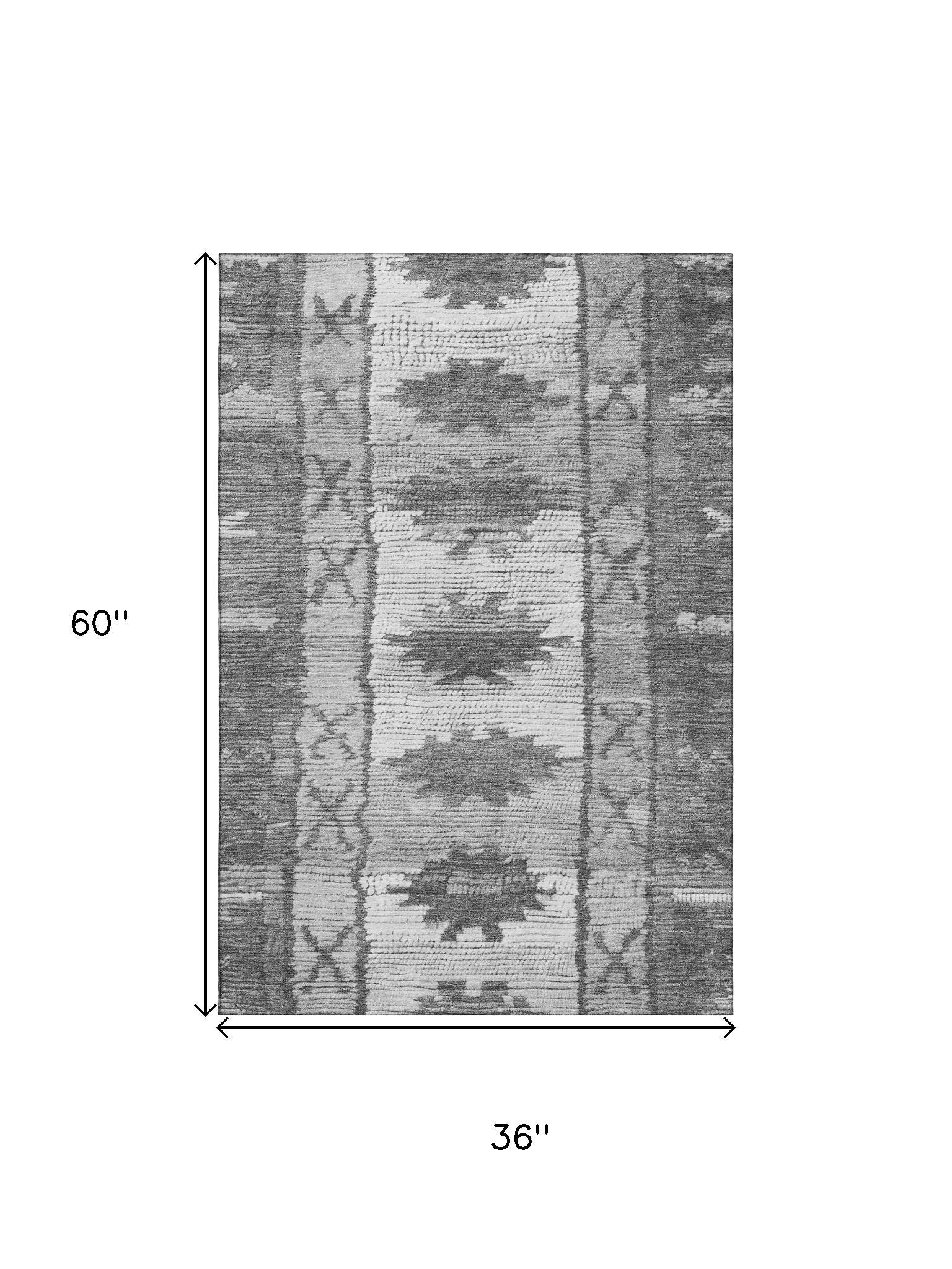 This 3-foot x 5-foot gray charcoal and ivory tribal washable area rug with uv protection, is a great way to add warmth to a room. Ideal for spaces with kids and pets, this rug is stain resistant to help repel dirt and spilled liquids. Built to last, this rug crafted from polyester fibers is known for its durability and long lasting appeal. Rugs are a great way to showcase your style, hide imperfections, warm your home and reduce noise. This smaller sized, transitional styled rug is just what you need for your walkway, bedside, in front of door, cabinet, refrigerator, or chair. 36.00-inch h x 60.00-inch w x 0.39-inch d.