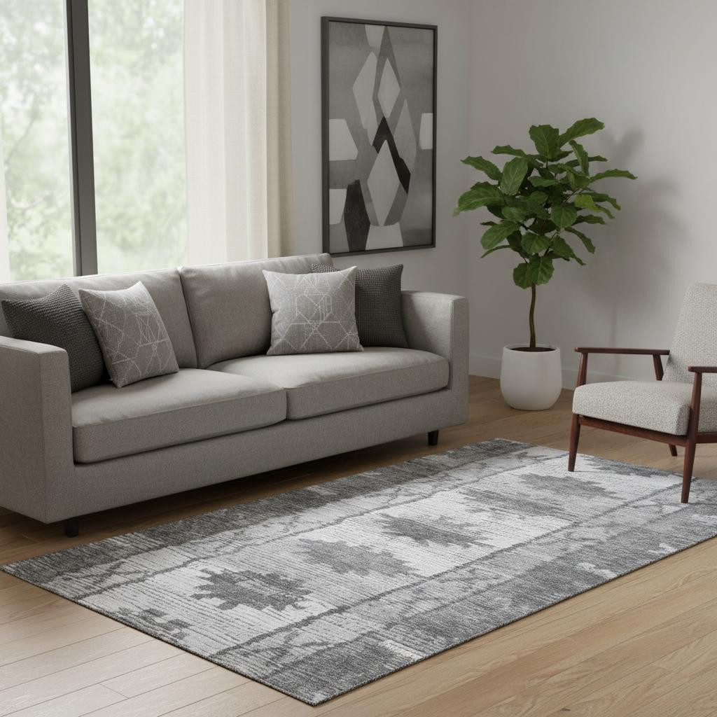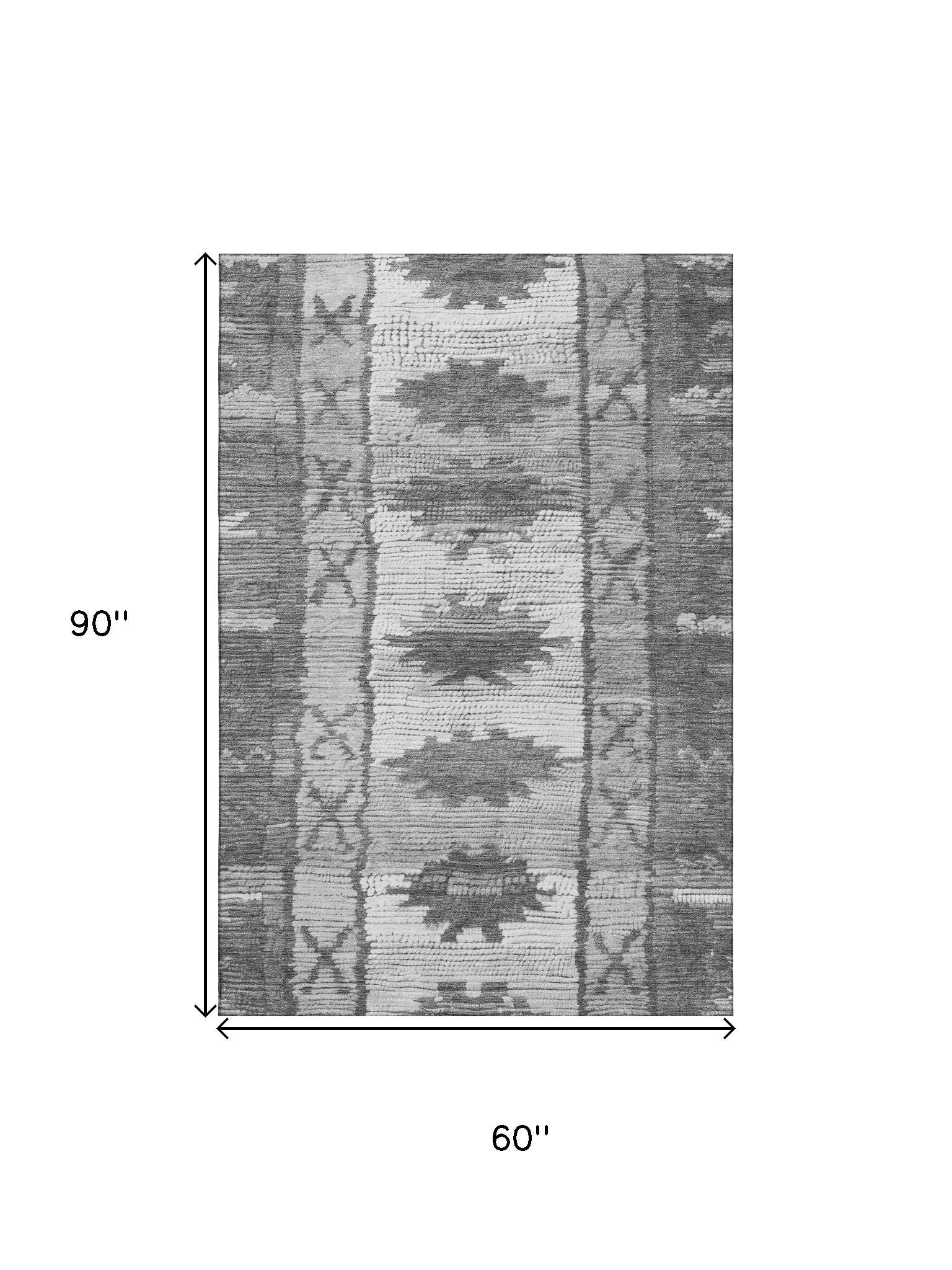 Add great coloration and comfortable texture to your space with this 5-foot x 8-foot gray charcoal and ivory tribal washable area rug with uv protection. Ideal for spaces with kids and pets, this rug is stain resistant to help repel dirt and spilled liquids. Built to last, this rug crafted from polyester fibers is known for its durability and long lasting appeal. Rugs are a great way to showcase your style, hide imperfections, warm your home and reduce noise. This larger sized, transitional styled rug is ready to create a focal point or statement piece in your room. 60.00-inch h x 90.00-inch w x 0.39-inch d.