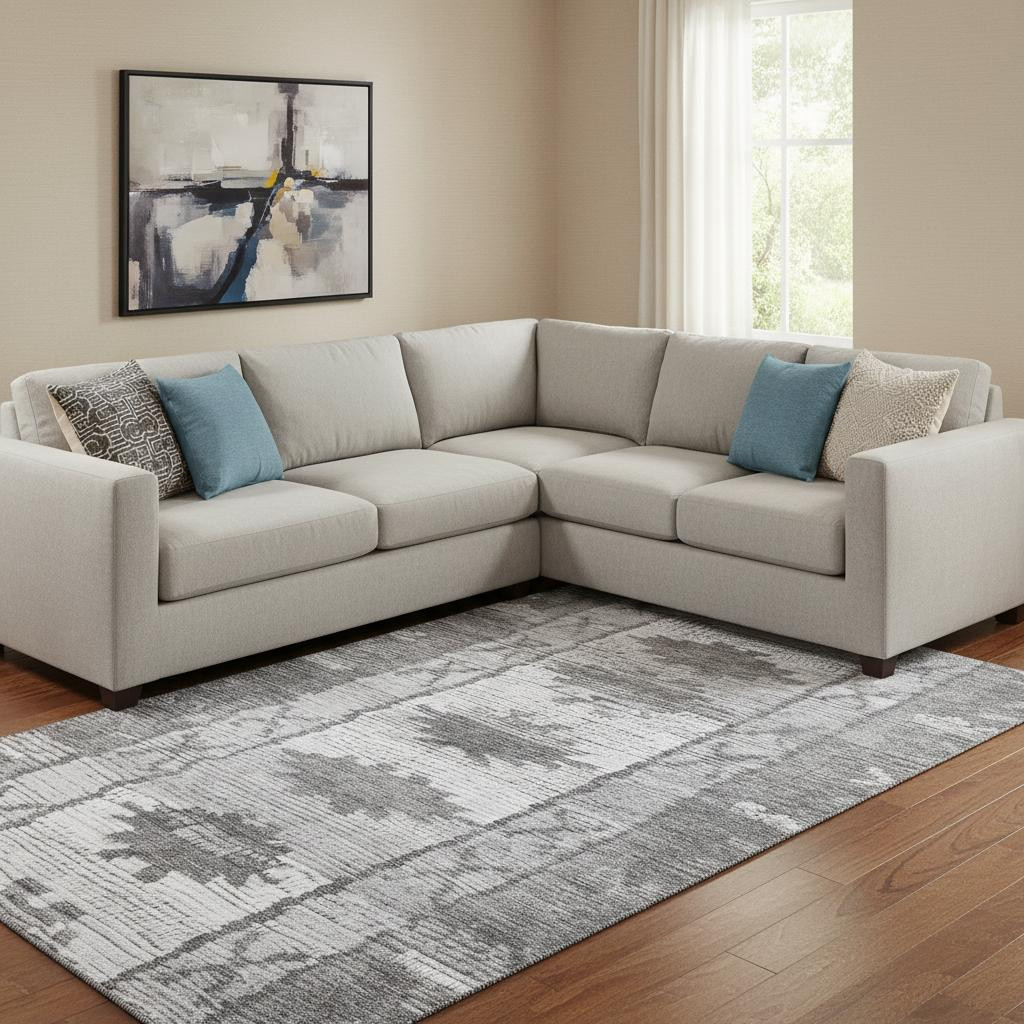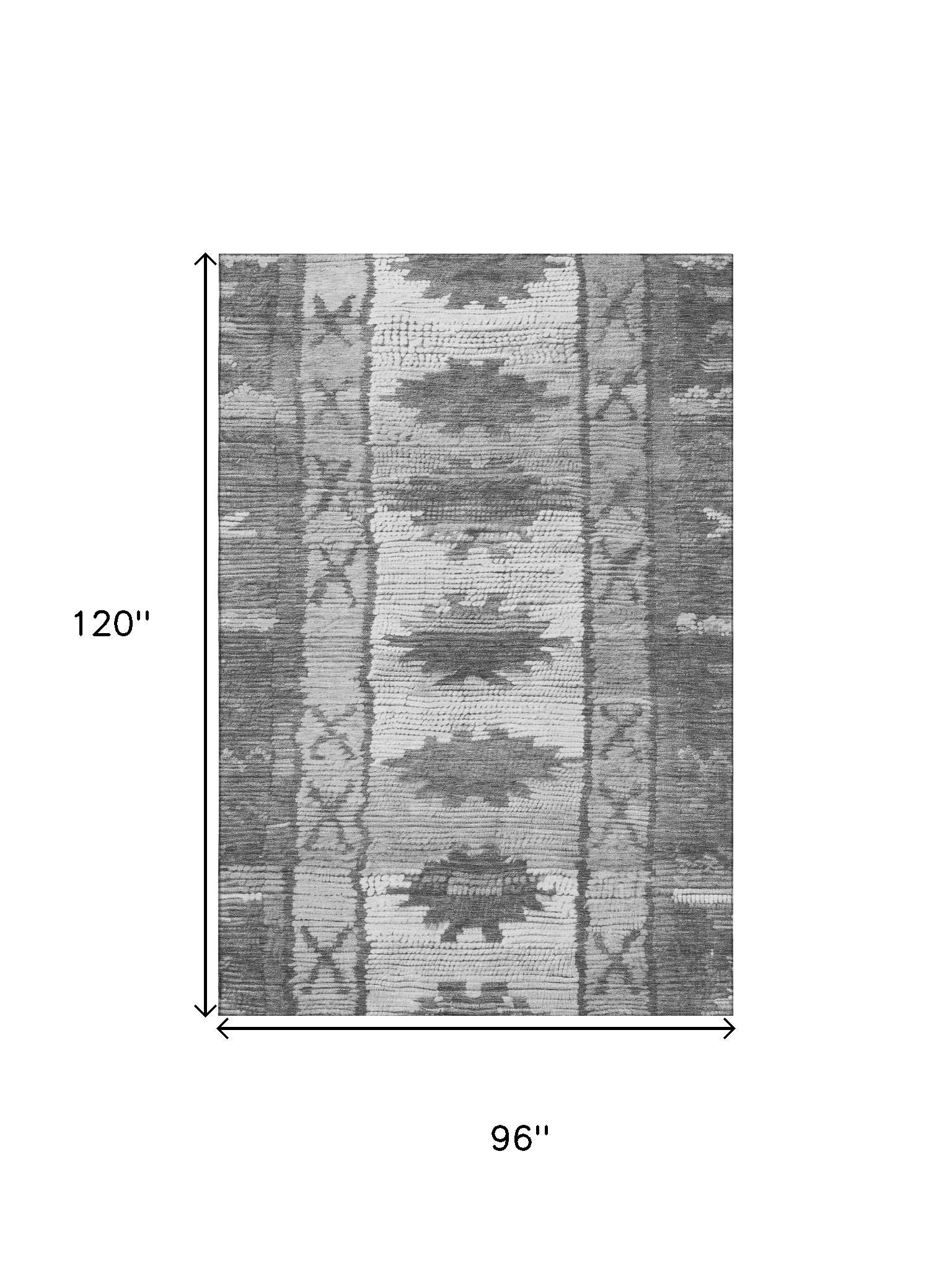 Set an inviting tone in your space with this 8-foot x 10-foot gray charcoal and ivory tribal washable area rug with uv protection. Ideal for spaces with kids and pets, this rug is stain resistant to help repel dirt and spilled liquids. Built to last, this rug crafted from polyester fibers is known for its durability and long lasting appeal. Rugs are a great way to showcase your style, hide imperfections, warm your home and reduce noise. This larger sized, transitional styled rug is ready to create a focal point or statement piece in your room. 96.00-inch h x 120.00-inch w x 0.39-inch d.