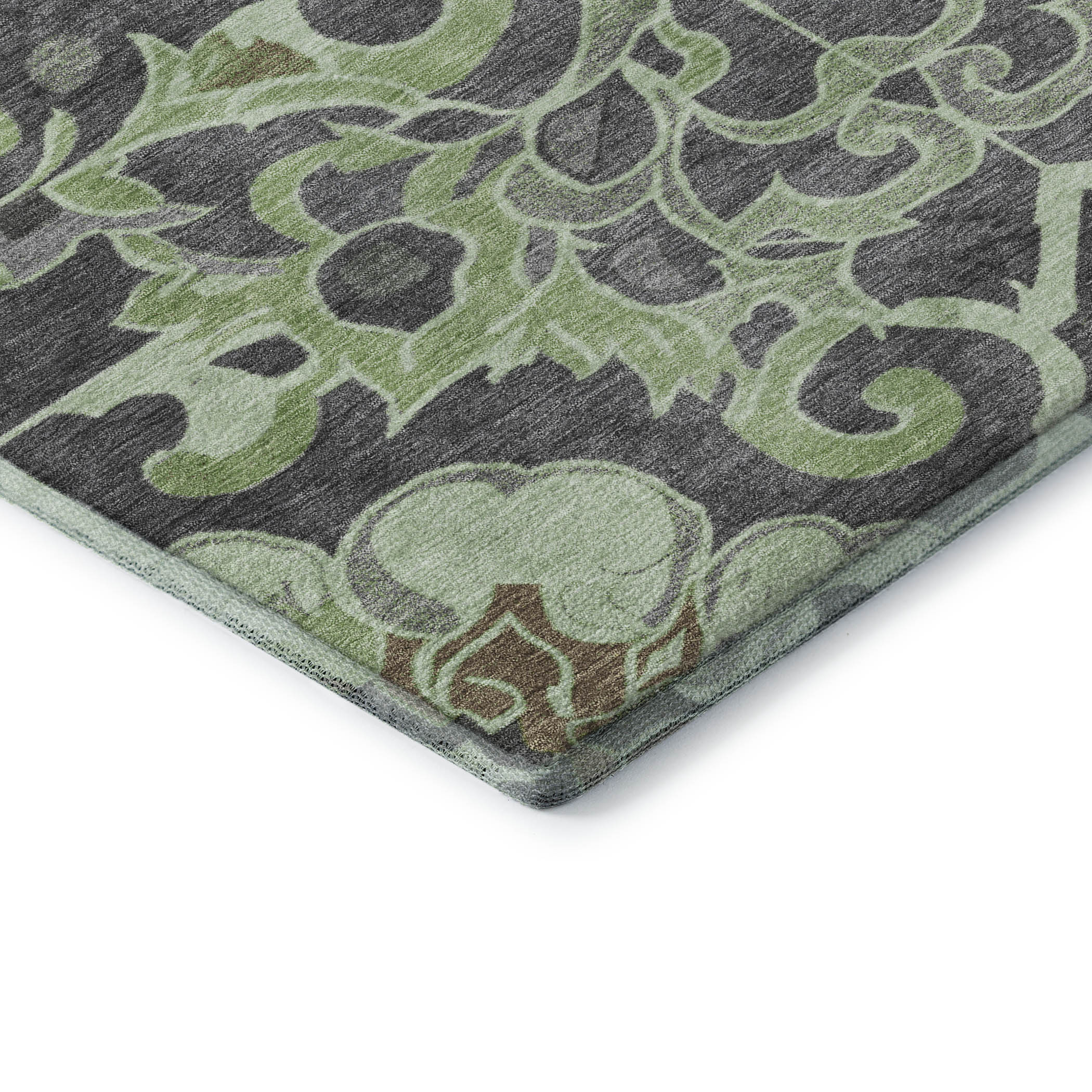 Add great coloration and comfortable texture to your space with this 5-foot x 8-foot artichoke green charcoal and gray floral medallion washable area rug with uv protection. Ideal for spaces with kids and pets, this rug is stain resistant to help repel dirt and spilled liquids. Built to last, this rug crafted from polyester fibers is known for its durability and long lasting appeal. Rugs are a great way to showcase your style, hide imperfections, warm your home and reduce noise. This larger sized, traditional styled rug is ready to create a focal point or statement piece in your room. 60.00-inch h x 90.00-inch w x 0.39-inch d.