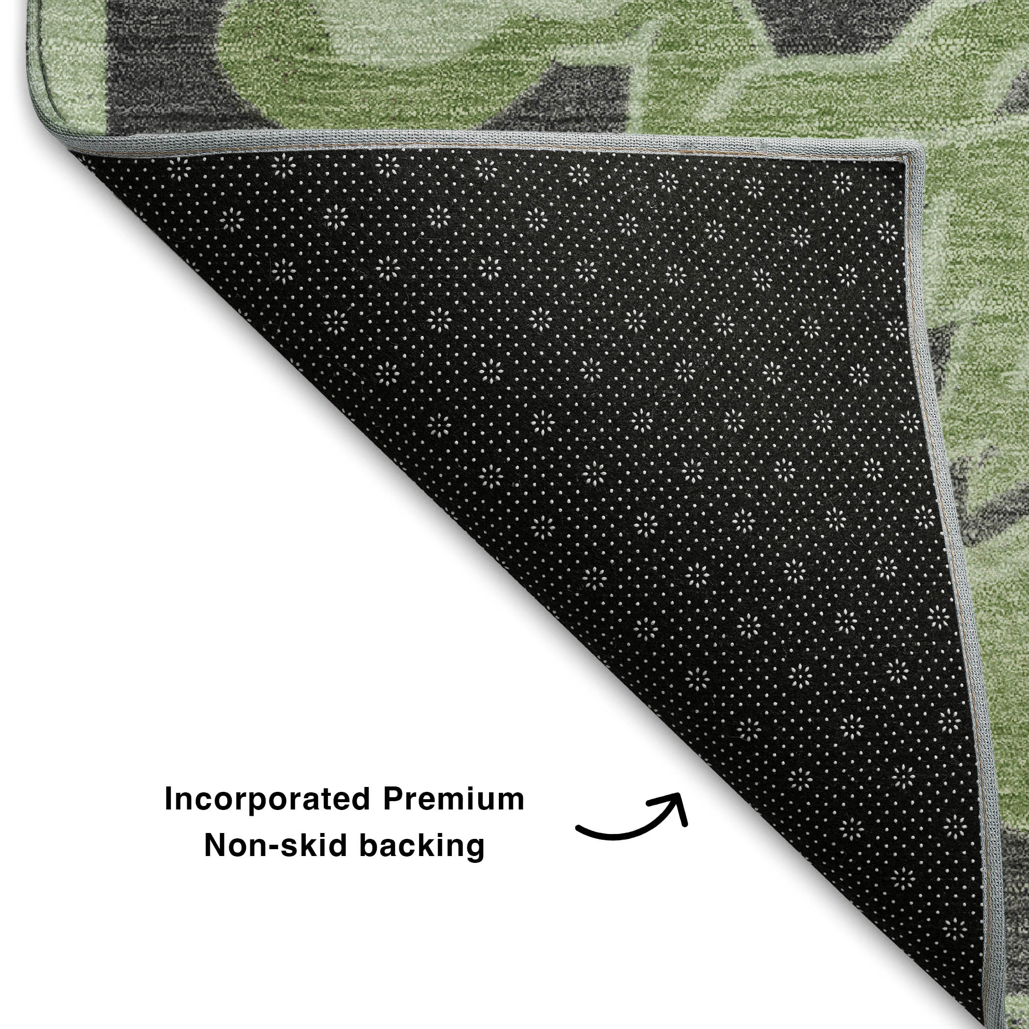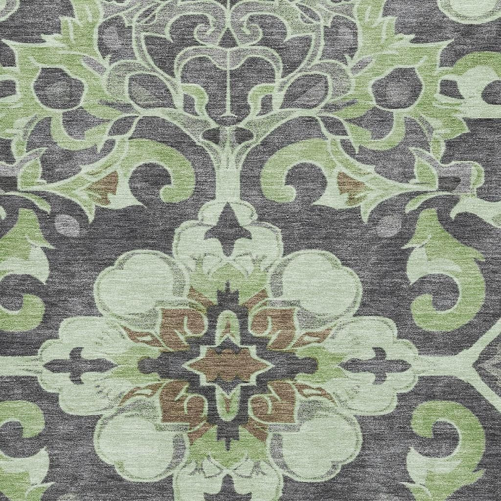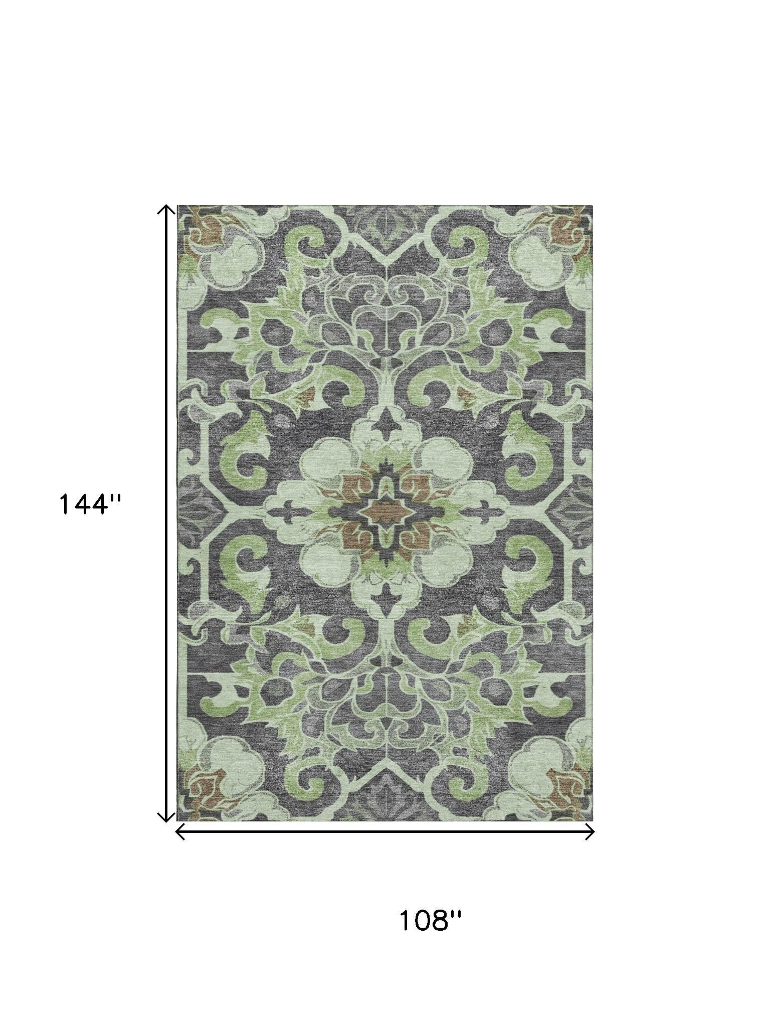 Set an inviting tone in your space with this 9-foot x 12-foot artichoke green charcoal and gray floral medallion washable area rug with uv protection. Ideal for spaces with kids and pets, this rug is stain resistant to help repel dirt and spilled liquids. Built to last, this rug crafted from polyester fibers is known for its durability and long lasting appeal. Rugs are a great way to showcase your style, hide imperfections, warm your home and reduce noise. This larger sized, traditional styled rug is ready to create a focal point or statement piece in your room. 108.00-inch h x 144.00-inch w x 0.39-inch d.